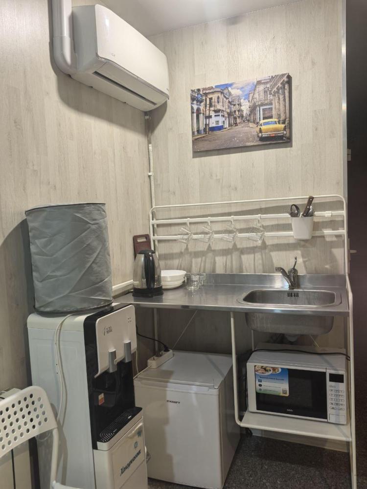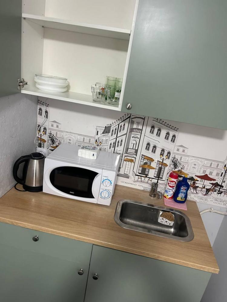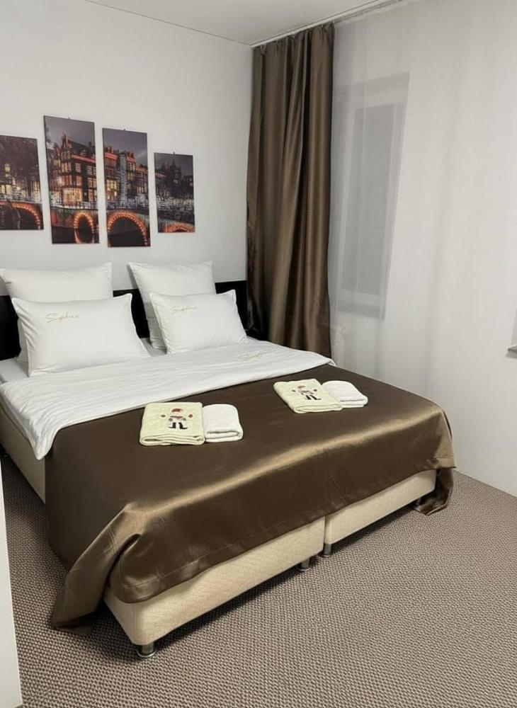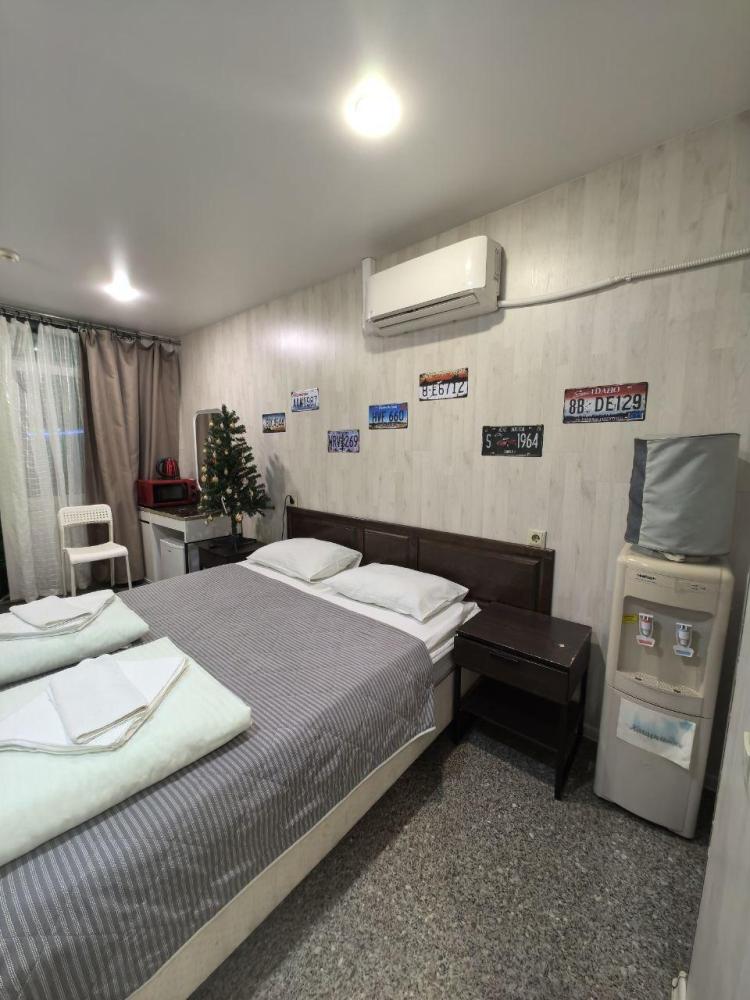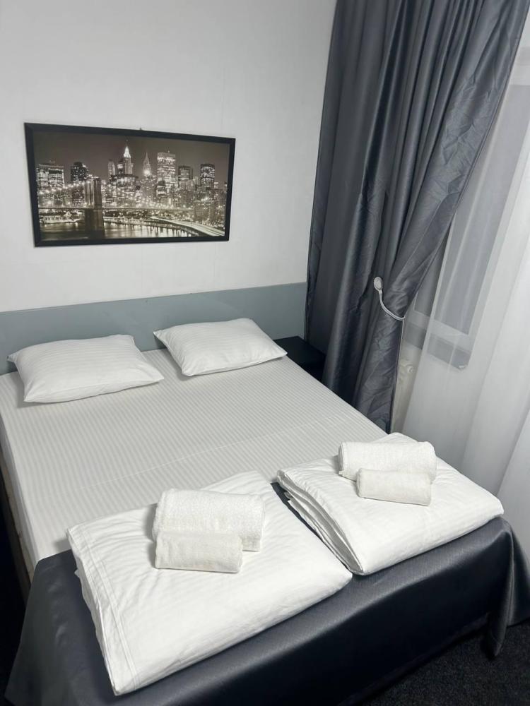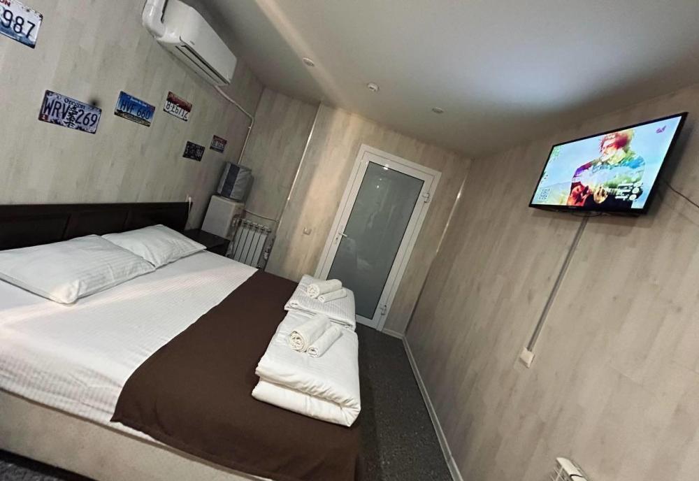 Номер студия общей площадью 23 кв.м. для размещения до 2-х гостей. Для комфортного проживания гостей номер оснащен всем необходимым: двухспальная кровать, прикроватные тумбочки, телевизор, кондиционер, зеркало, чайник, холодильник, микроволновая печь, посуда, ванная комната с душем, фен, набор полотенец.