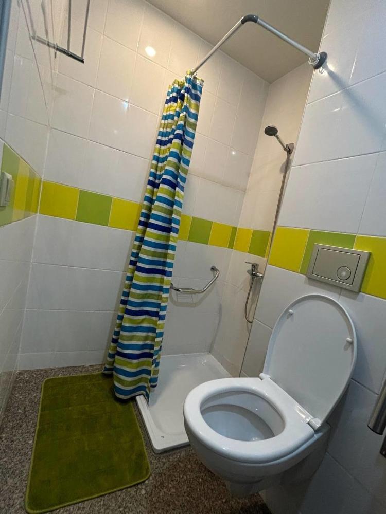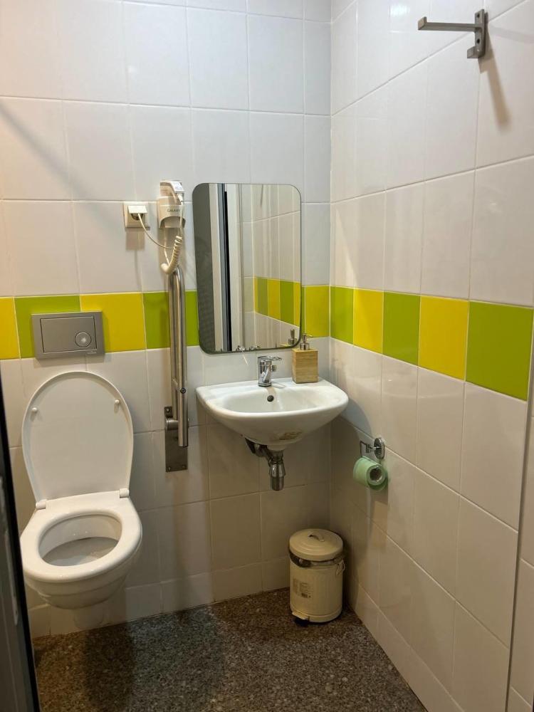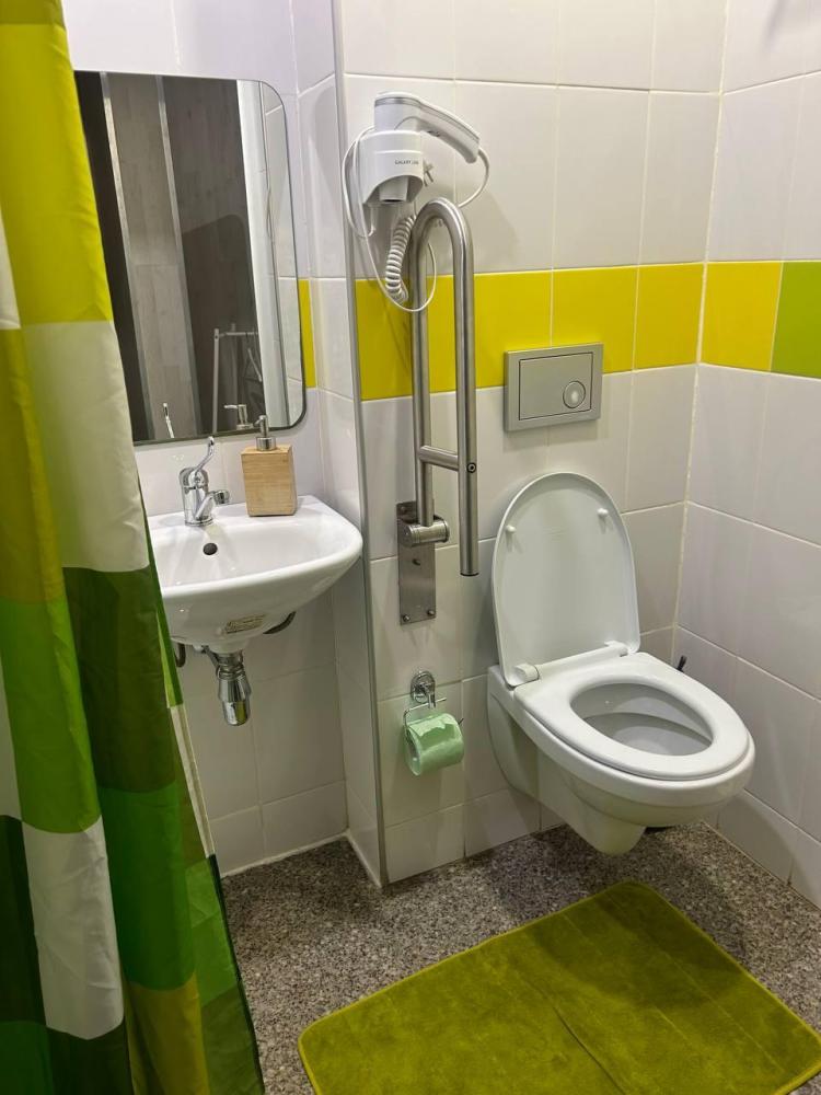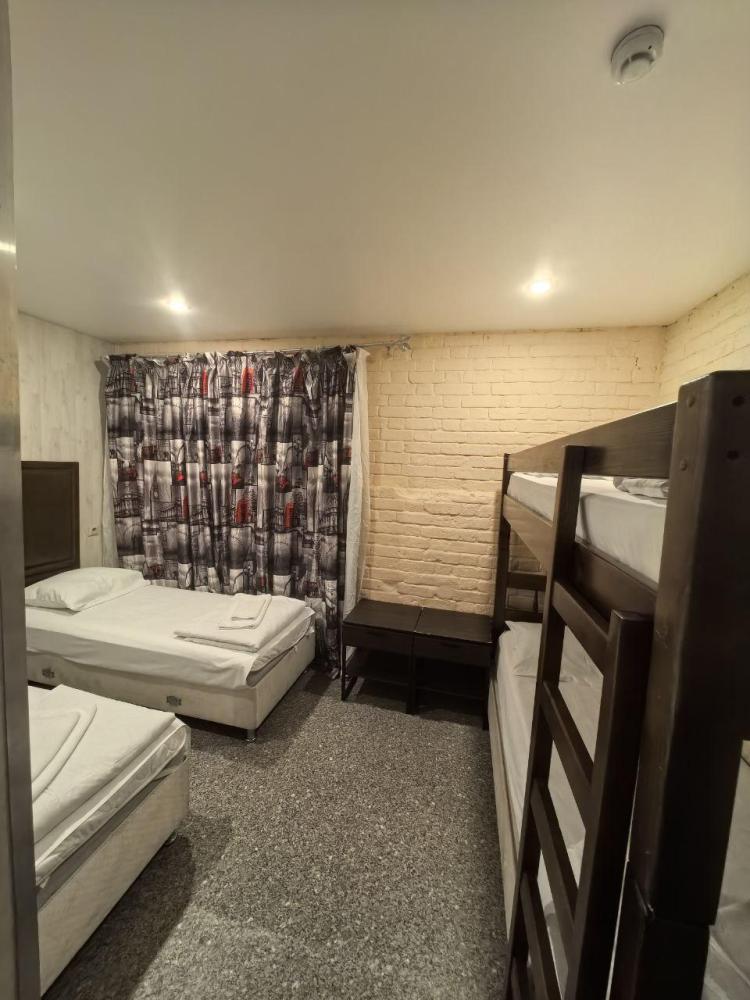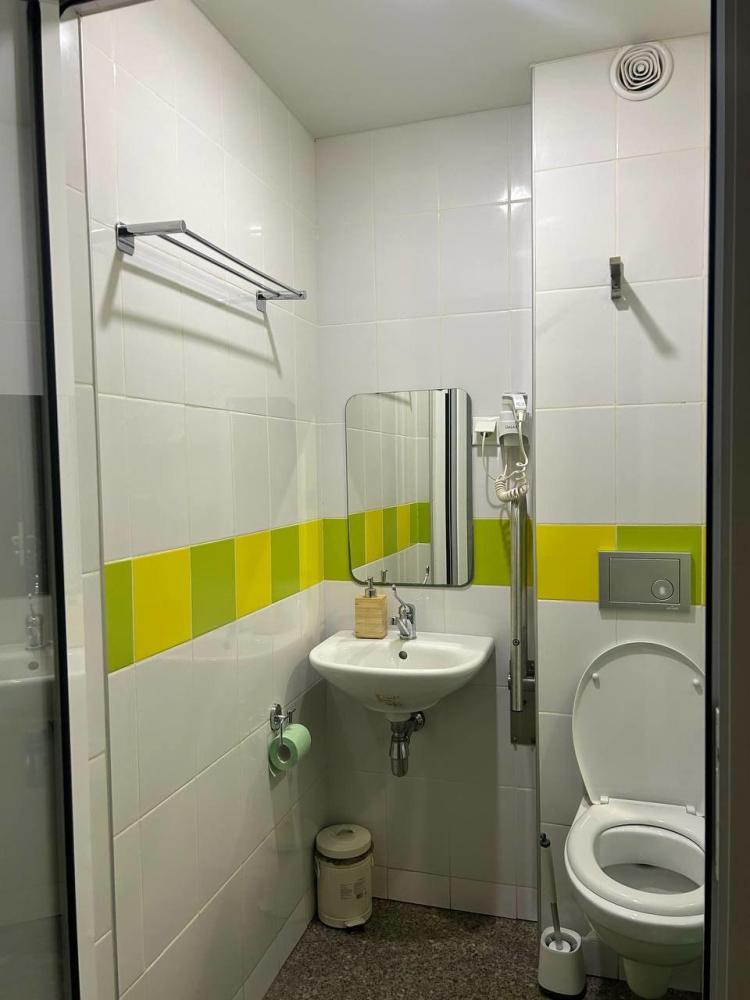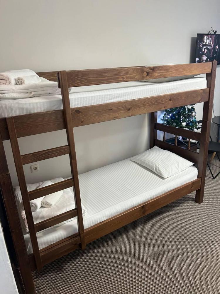 Номер студия общей площадью 26 кв.м. для размещения до 6-ти гостей (с учетом дополнительных мест). Для комфортного проживания гостей номер оснащен всем необходимым: двухспальная кровать, двухъярусная кровать, прикроватные тумбочки, телевизор, кондиционер, зеркало, чайник, холодильник, микроволновая печь, посуда, ванная комната с душем, фен, набор полотенец.
