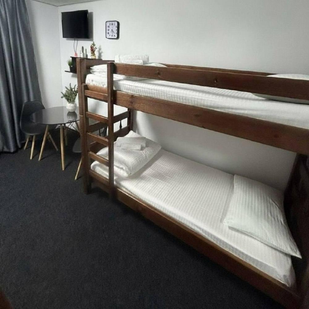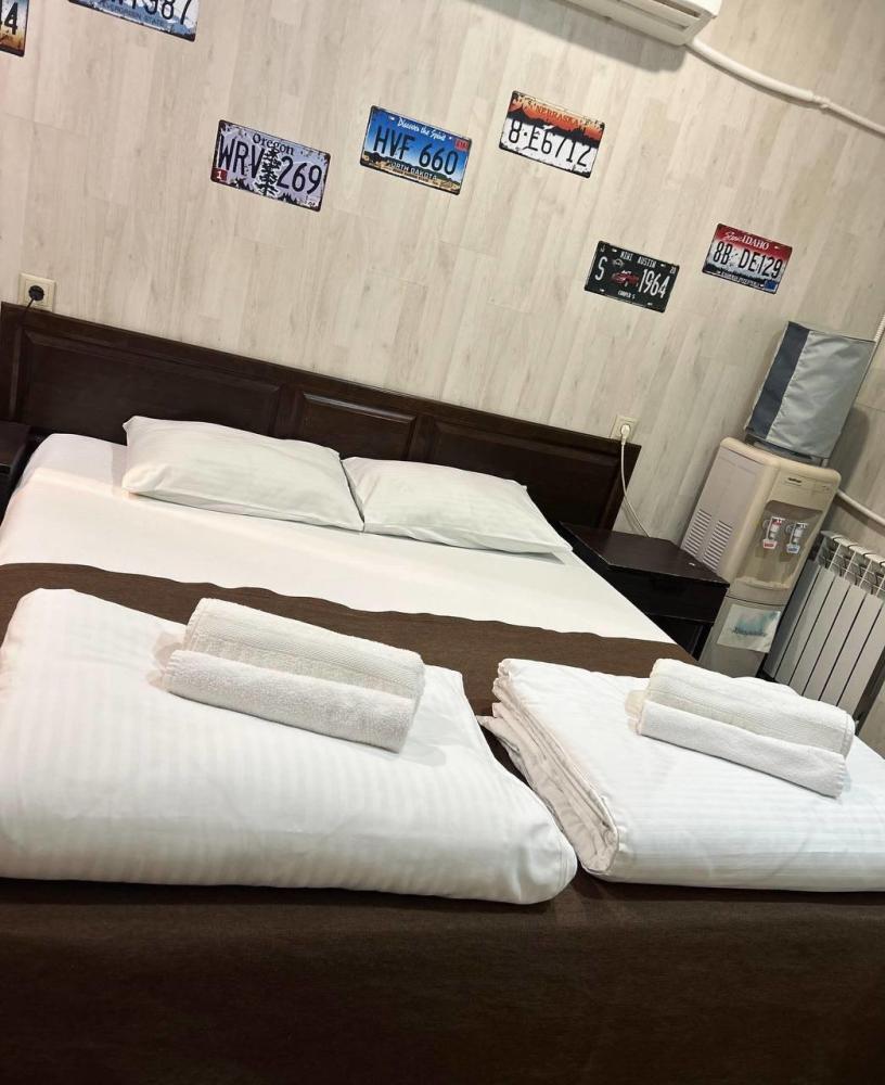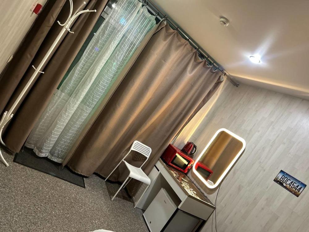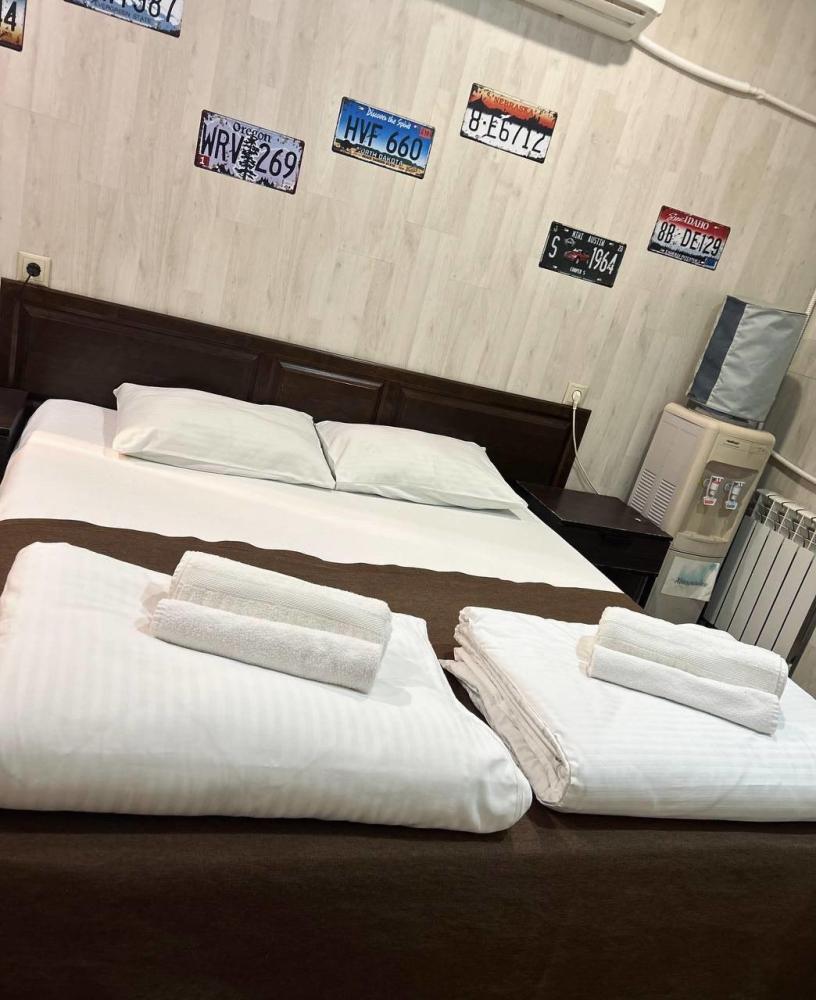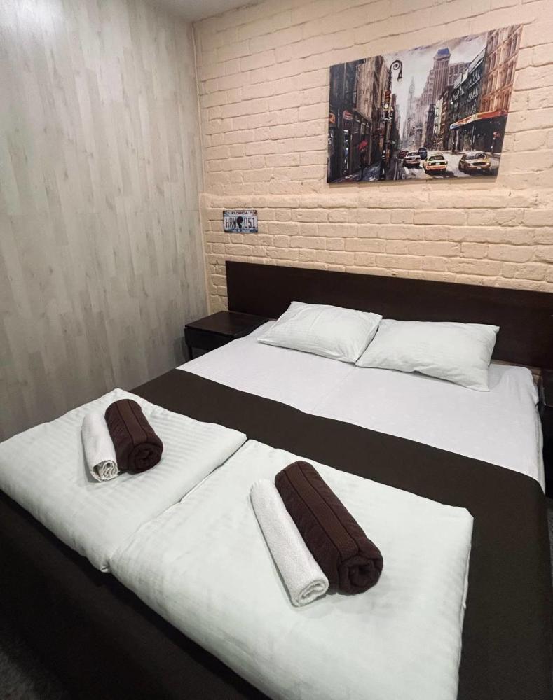 Номер студия общей площадью 24 кв.м. для размещения до 6-ти гостей (с учетом дополнительных мест). Для комфортного проживания гостей номер оснащен всем необходимым: двухспальная кровать, двухъярусная кровать, прикроватные тумбочки, телевизор, кондиционер, зеркало, чайник, холодильник, микроволновая печь, посуда, ванная комната с душем, фен, набор полотенец.