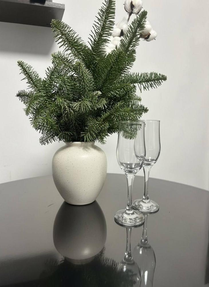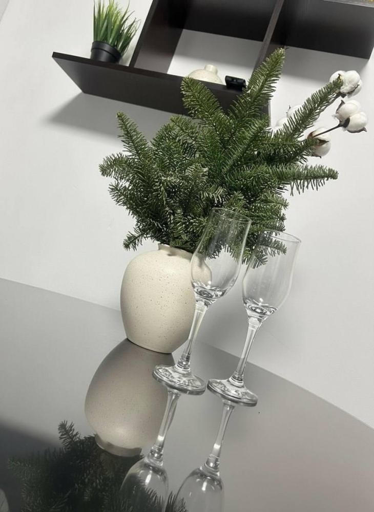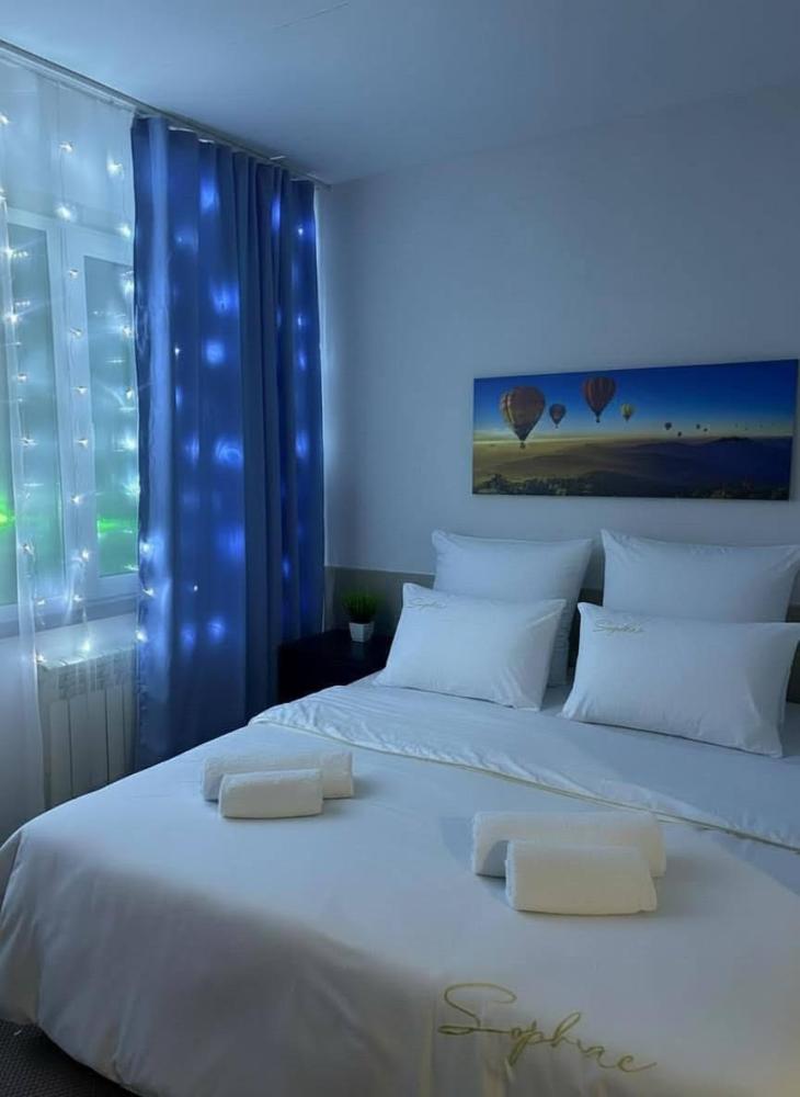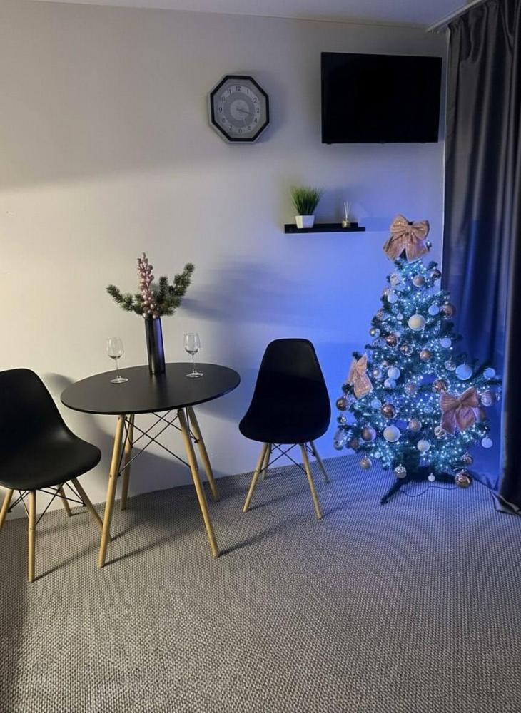 Номер студия общей площадью 26 кв.м. для размещения до 4-х гостей. Для комфортного проживания гостей номер оснащен всем необходимым: двухспальная кровать, прикроватные тумбочки, диван, телевизор, кондиционер, зеркало, чайник, холодильник, микроволновая печь, посуда, ванная комната с душем, фен, набор полотенец.