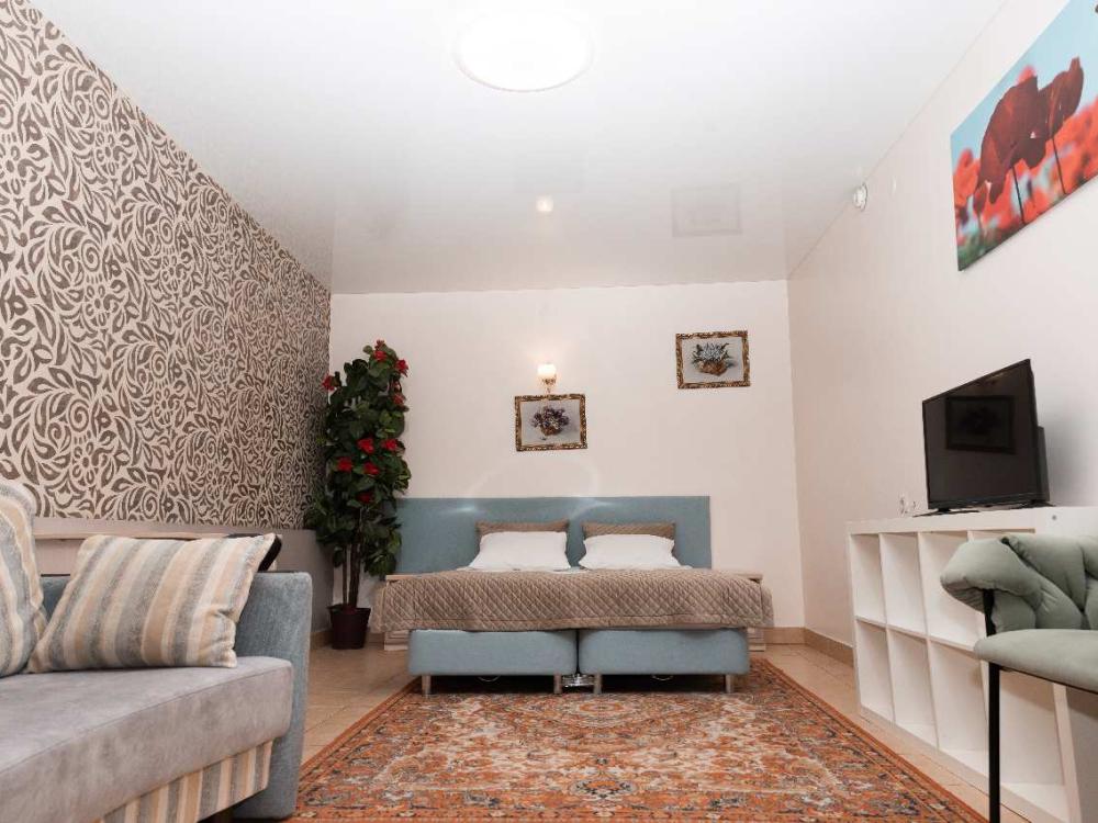 В номере: двуспальная кровать или 2 односпальные кровати, телевизор, диван.