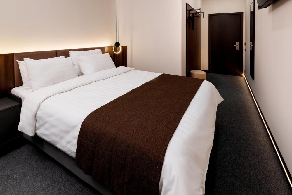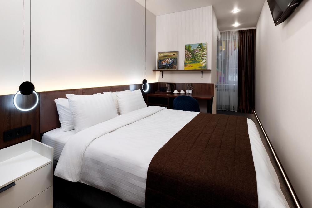 Уютный однокомнатный номер площадью 11 кв.м. Окна обращены в тихий спальный район города. Номера оснащены всем необходимым для комфортного отдыха и плодотворной работы. Двухместный номер с одной большой кроватью или 2 раздельными кроватями для размещения 1 или 2 гостей.