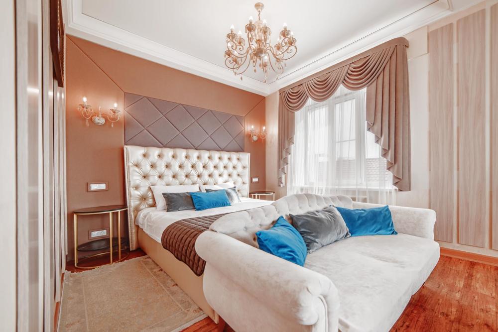Двухкомнатный номер площадью 32 кв.м. В номере: двуспальная кровать, телефон, кондиционер, два телевизора с плоским экраном, холодильник, рабочий стол, шкаф, прикроватные тумбочки, настольная лампа, зеркало. Санузел: душ, раковина, унитаз, зеркало, фен, бесплатные туалетно-косметические принадлежности, комплект махровых полотенец. Кровать: двуспальная кровать 160*200 с ортопедическим матрасом Matramax Bali Lux и подушками премиум класса пух-перо, постельное белье – сатин, смена постельного белья 1 раз в 3 суток. В качестве 2 дополнительных спальных мест может быть использован раскладной диван.