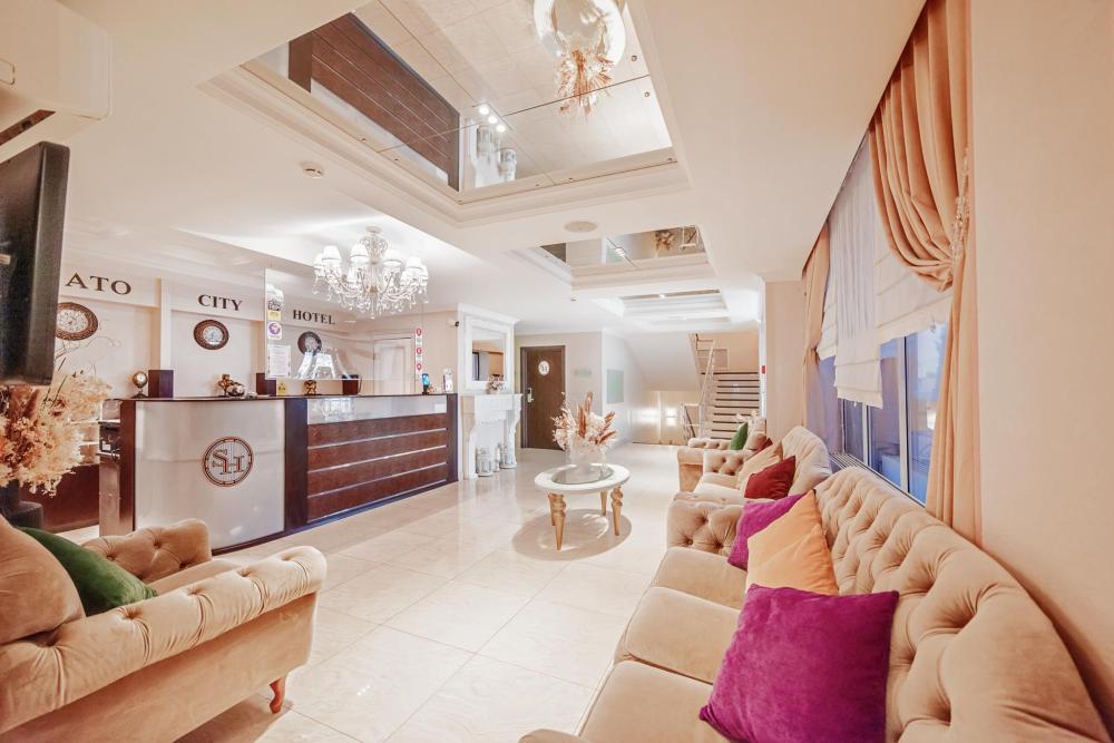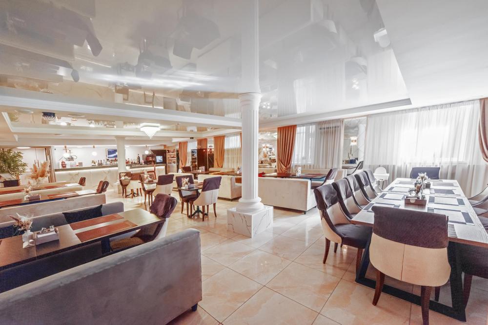 Двухместный номер площадью 35 кв.м., с дизайнерским ремонтом. Две зоны: рабочая и зона отдыха. В номере: большая двуспальная кровать, сейф бесплатно, телефон, кондиционер, фен, телевизор с плоским экраном, холодильник, рабочий стол, шкаф, прикроватные тумбочки, настольная лампа, зеркало. Санузел: ванна (джакузи), сауна, биде, раковина, унитаз, зеркало с полочкой, бесплатные туалетные принадлежности, комплект махровых полотенец. Кровать: двуспальная кровать с ортопедическим матрасом, постельное белье – сатин, смена постельного белья 1 раз в 3 суток. Есть возможность установки в номерах 1 дополнительного спального места.