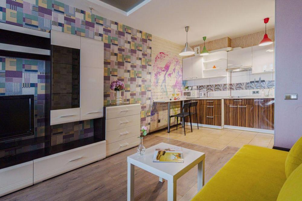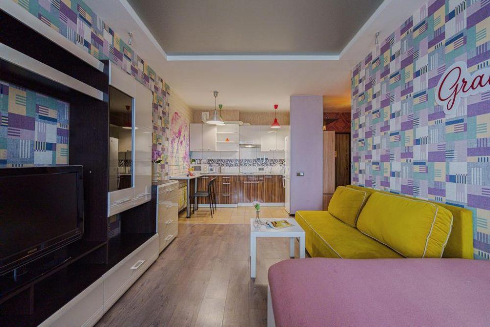 В апартаментах есть все для комфортного проживания: телевизор, холодильник, кухонная плита, стиральная машина, микроволновая печь, электрический чайник, фен, двуспальная кровать, двуспальный диван-кровать, стол, постельное белье, полотенца, посуда и столовые приборы, сушилка, утюг, гладильная доска, ролик, спутниковое ТВ, высокоскоростной интернет, Wi-Fi. Приветственный набор в виде чая/кофе/сахара для каждого из гостей. Предметы личной гигиены, а именно: гели и шампуни в дозаторах, зубные наборы, ватные диски, ватные палочки, зубочистки, одноразовые тапочки, предметы женской гигиены, салфетки, туалетная бумага и т.д.