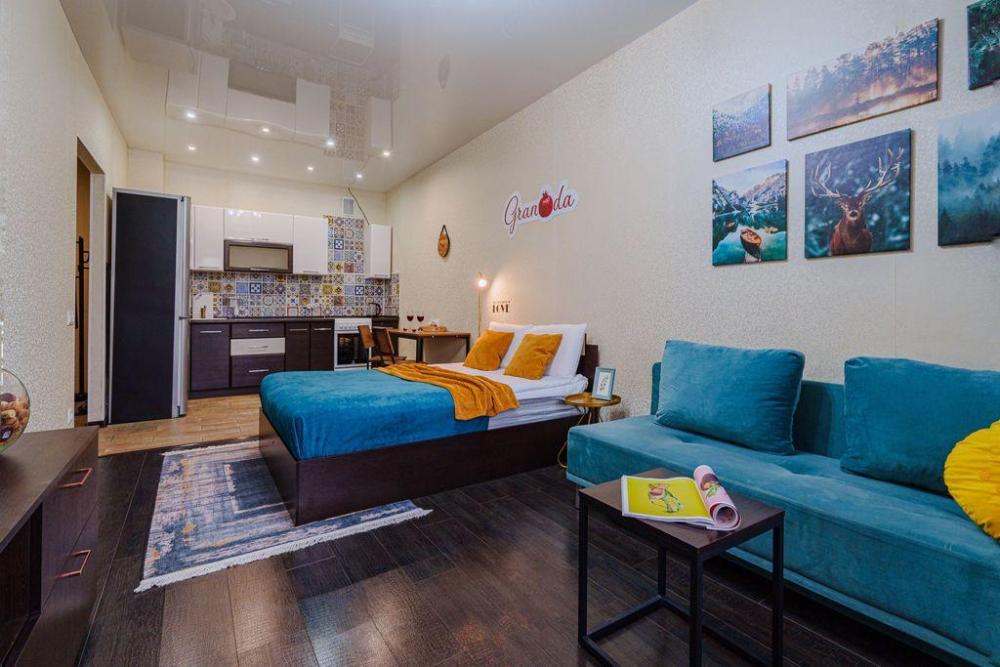 ? Мы предлагаем Вам уютную современную студию в центре микрорайона ГГМ в новом доме с консьержем и видеонаблюдением рядом с СОК "Юпитер"! ??♀️??♂️ Рады приветствовать Вас в нашей сети апартаментов «GRANADA»! ? Мы профессионально занимаемся сдачей квартир в посуточную аренду уже более 6 лет. За это время мы смогли достичь большого числа постоянных довольных клиентов! Ведь наша миссия - Предоставлять варианты размещения с максимально комфортными условиями проживания для каждого гостя! ❤️ ? У нас в наличии имеется более 30 вариантов квартир в Нижнем Тагиле (и не только) для комфортного проживания: – в командировках?; - в путешествиях✈️; - для романтического отдыха??❤️??. Удобства: -В шаговой доступности транспортные остановки! ? -Бесплатная общественная парковка у дома!? -Удобная современная система заселения в квартиру! Вам не обязательно кого-то ждать и от кого-то зависеть!? -Вся необходимая для комфортного проживания бытовая техника и мебель, а именно: телевизор, холодильник, кухонная плита, стиральная машина, микроволновая печь, электрический чайник, фен, две двуспальных диван-кровати, стол!✅ -По запросу возможно добавить: ? дополнительное спальное место в виде переносной кровати! ?? детский стульчик для кормления! Утоняйте цену и наличие при бронировании! -Для обеспечения максимального комфорта наших гостей всё постельное бельё и полотенца готовит для Вас профессиональная прачечная! ?? -Вся необходимая для использования и приготовления блюд посуда и столовые приборы! ?️ -Всё для подготовки Вашей одежды: сушилка, утюг, гладильная доска, ролик!? -Спутниковое ТВ, высокоскоростной интернет, Wi-Fi! ? Вас порадуют: -Чистота и порядок! Уборка со специальными средствами после каждого гостя!? -Свежее постельное бельё и полотенца! Стирка и глажка после каждого гостя!? -Приветственный набор в виде чая/кофе/сахара для каждого из гостей!☕️ -Подсолнечное масло в холодильнике, чтобы Вам не пришлось покупать целую бутылку ради нескольких готовок!??? -Предметы личной гигиены, а именно: гели и шампуни в дозаторах, зубные наборы, ватные диски, ватные палочки, зубочистки, одноразовые тапочки, предметы женской гигиены, салфетки, туалетная бумага и т.д.!? -У нас действует система скидок для всех гостей при оформлении доставки у наших организаций-партнеров по специальному промокоду! Заказывайте и получайте выгодные спецпредложения!? ?Рядом находятся: - Спортивно-оздоровительный комплекс "Президентский"; - Уральский Клинический Лечебно-Реабилитационный Центр им. В.В.Тетюхина; - Выезд на гору Белая; - Гипермаркет "Лента"; - Батутный парк "Атмосфера"; - Парк Победы; - Детская и взрослая поликлиники и многое многое другое. ?Правила проживания и заселения: -Для заселения Вам потребуются Ваши паспортные данные для заполнения электронного договора! -Время заезда —15:00, время выезда — 12:00!?️ -Возможен ранний заезд и поздний выезд по предварительной договоренности, если квартира будет свободна!? Цена раннего заезда (с 11:00 до 14:00) и позднего выезда (до 18.00) составит 10% от стоимости суток за каждый час. Заезд раньше 11:00 и выезд позднее 18:00 рассчитываются как полные сутки. ? При заселении после 20:00 Вам необходимо заранее внести полную оплату за проживание и залог. -При досрочном выезде, если Вы не оповестили нас за сутки до выезда, а сделали это день в день, оплата за текущие сутки остаетс