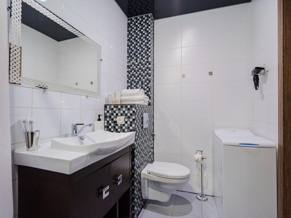В апартаментах есть все для комфортного проживания: телевизор, холодильник, кухонная плита, стиральная машина, микроволновая печь, электрический чайник, фен, два двуспальных дивана-кровати, стол, постельное белье, полотенца, посуда и столовые приборы, сушилка, утюг, гладильная доска, ролик, спутниковое ТВ, высокоскоростной интернет, Wi-Fi. Приветственный набор в виде чая/кофе/сахара для каждого из гостей. Предметы личной гигиены, а именно: гели и шампуни в дозаторах, зубные наборы, ватные диски, ватные палочки, зубочистки, одноразовые тапочки, предметы женской гигиены, салфетки, туалетная бумага и т.д.