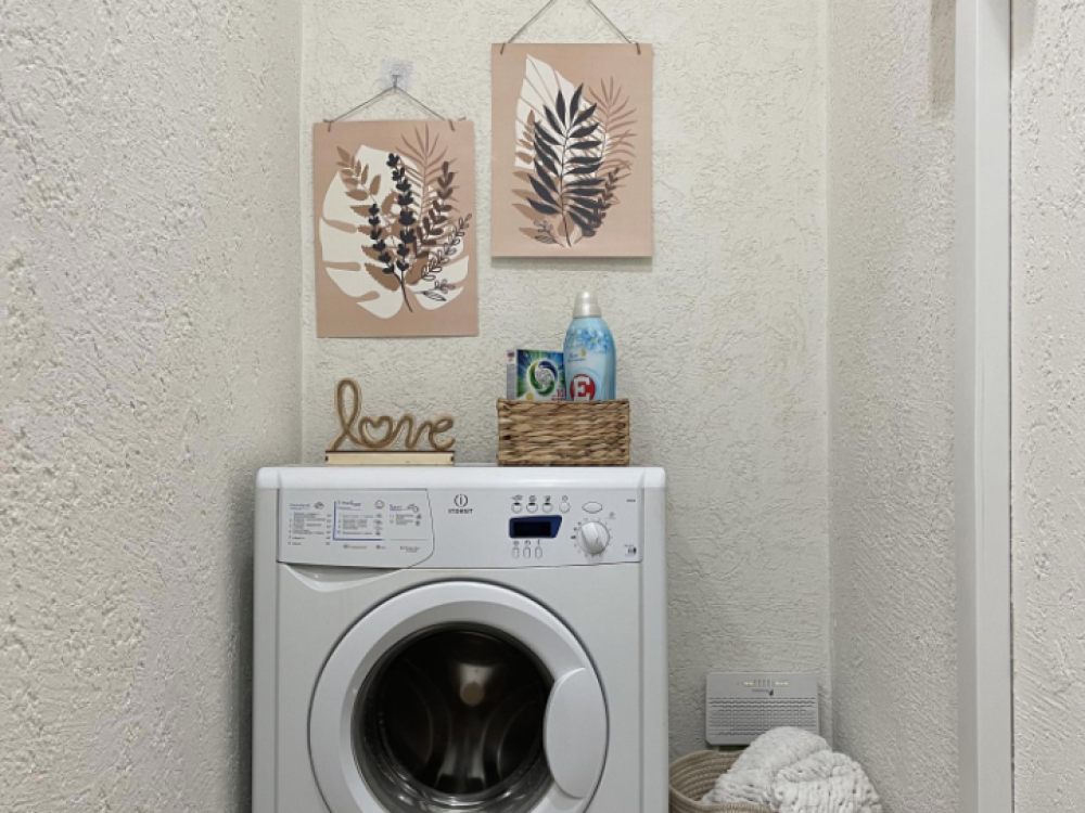 стиральная машинка, средства для стирки, корзина для белья, сушилка