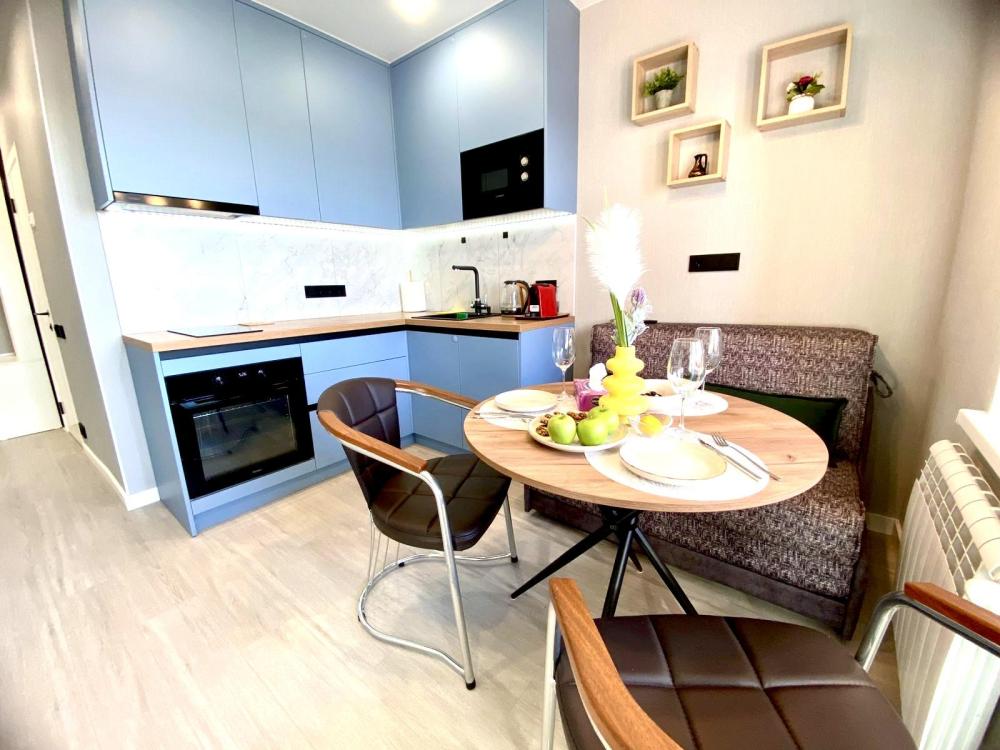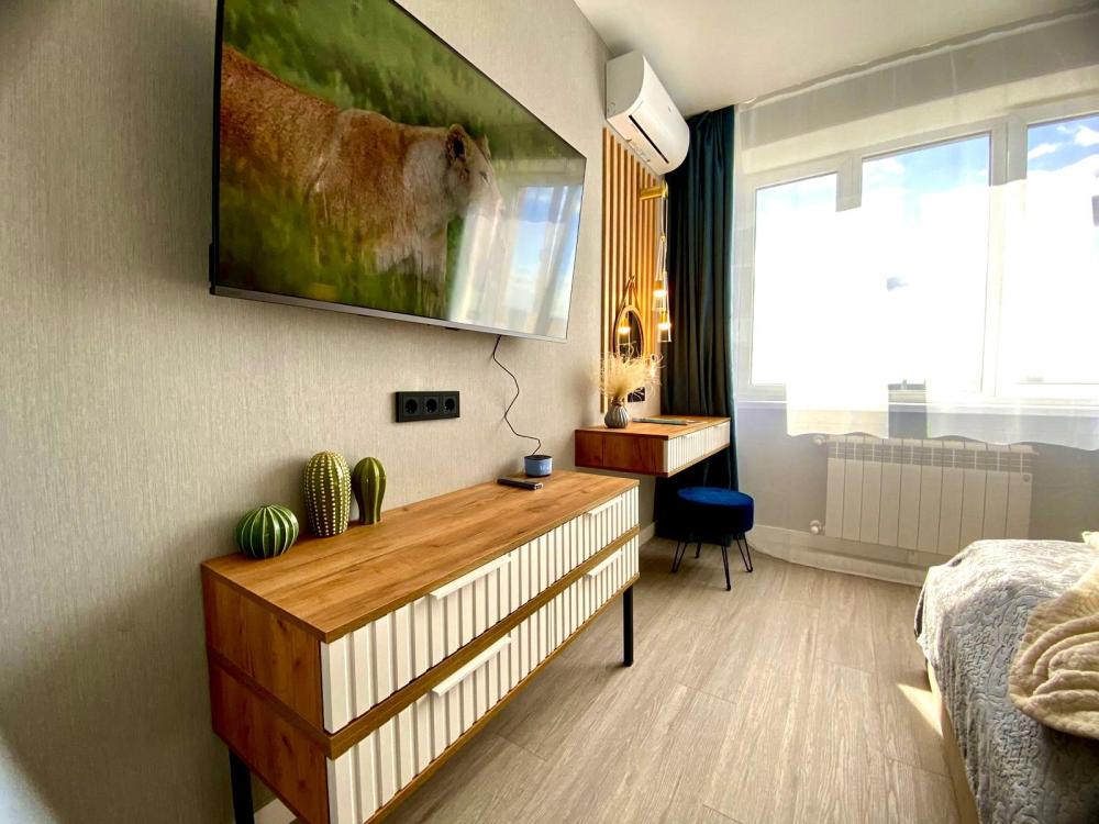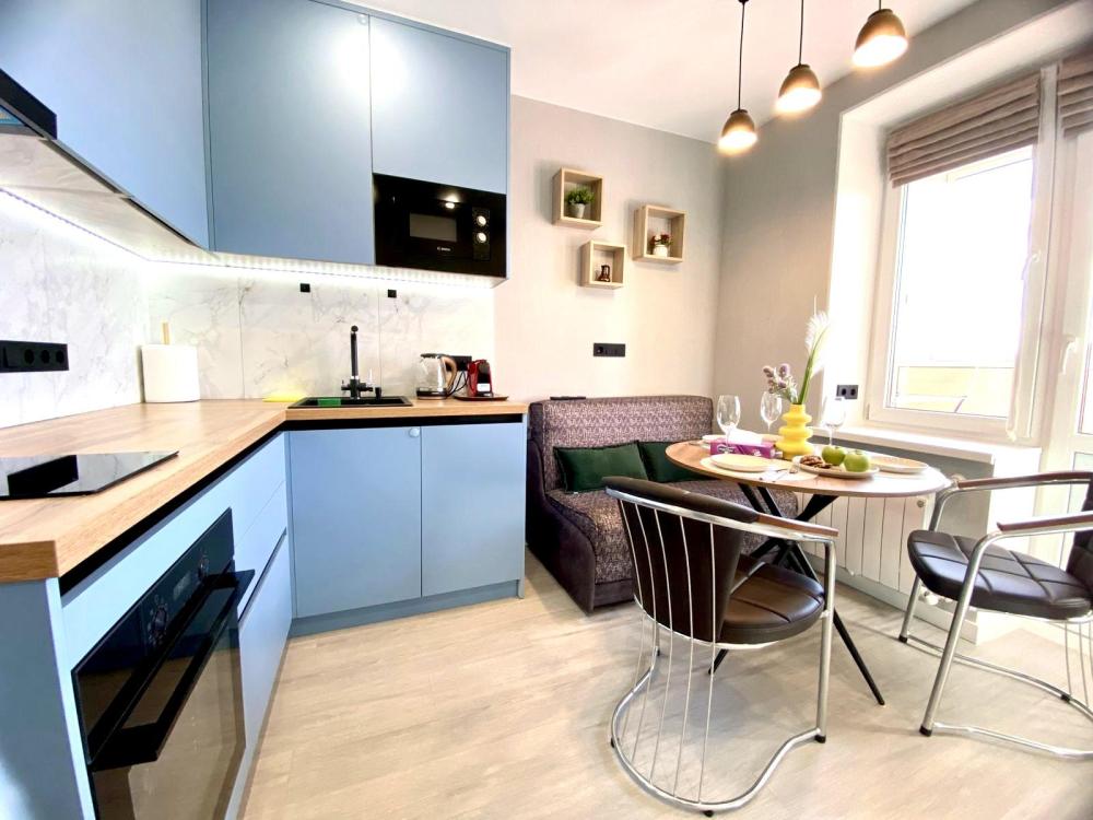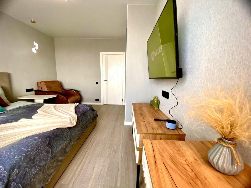 Уютные однокомнатные апартаменты. В квартире гостей всегда чистое постельное белье, полотенца, домашняя уютная обстановка, а также: плита и посуда для приготовления еды, холодильник, чайник, микроволновая печь, кофе машина, посудомоечная машина, фильтр для воды, водонагреватель, стиральная машинка, телевизор с умной колонкой, Wi-Fi, утюг, гладильная доска, сушилка для одежды, предметы гигиены.