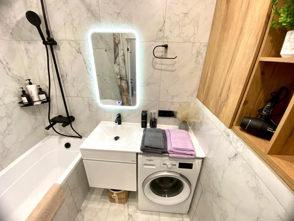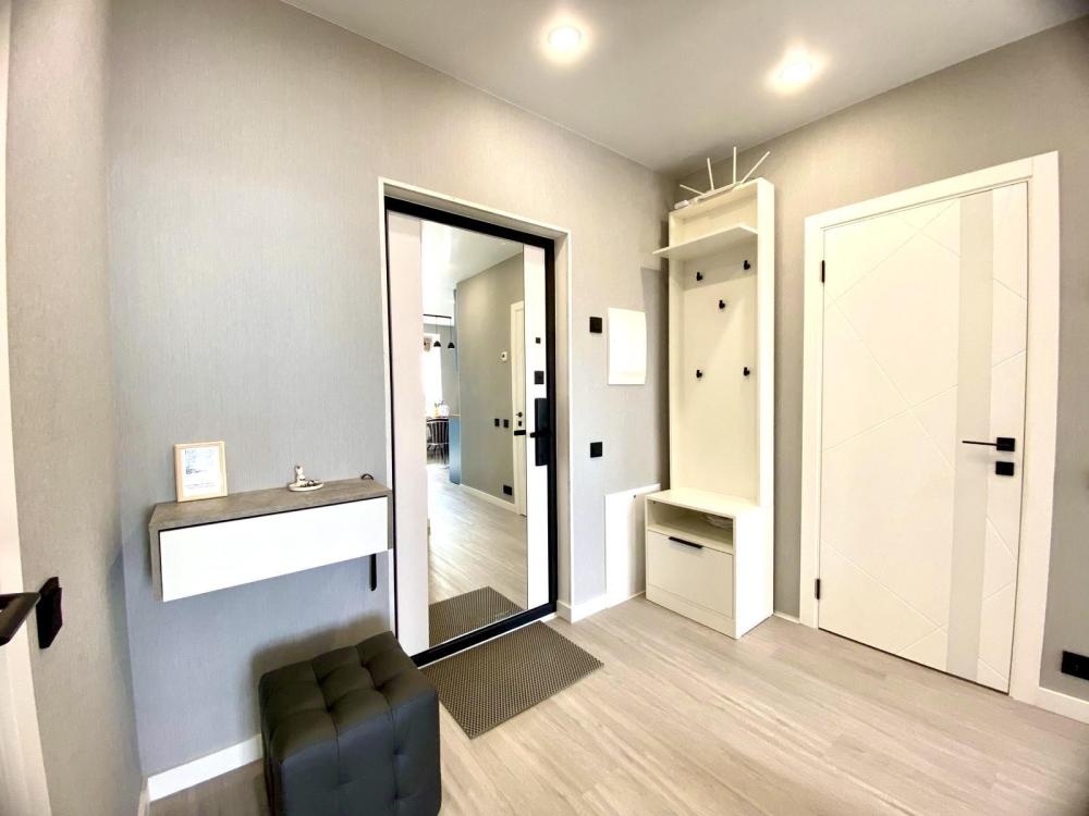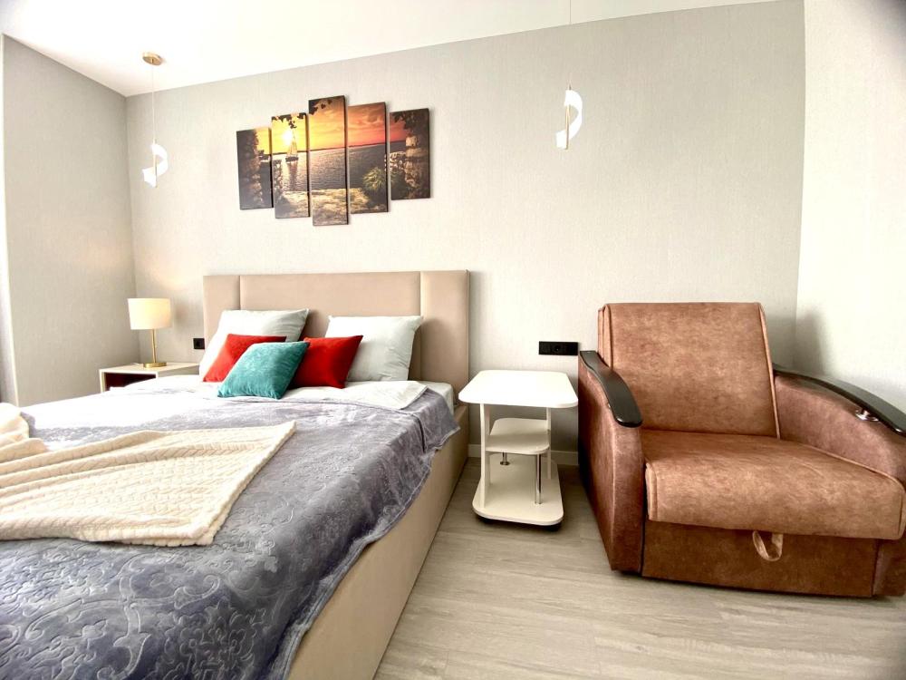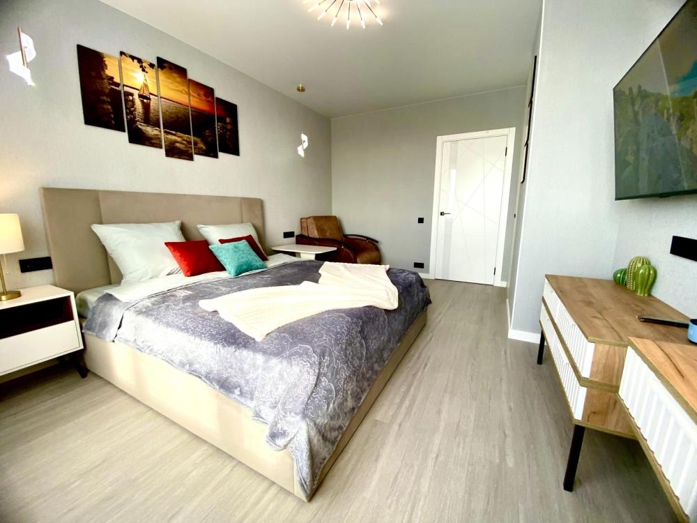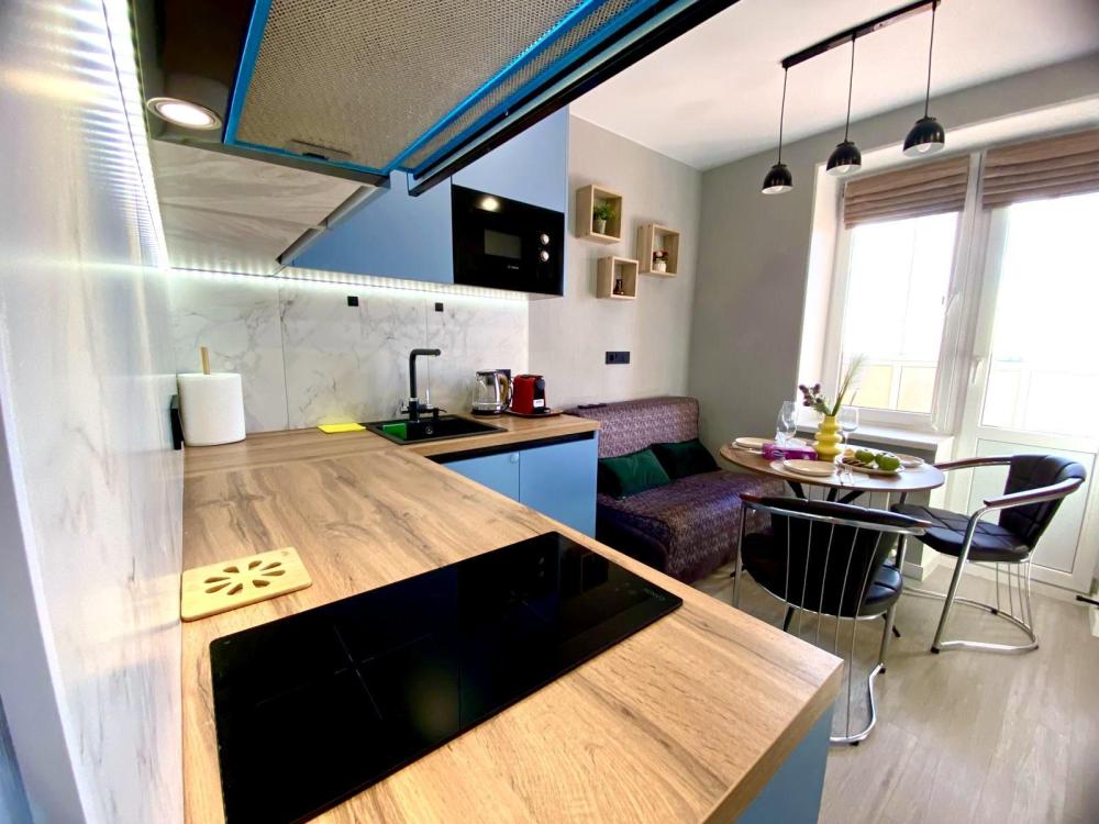 Уютные однокомнатные апартаменты. В квартире гостей всегда чистое постельное белье, полотенца, домашняя уютная обстановка, а также: плита и посуда для приготовления еды, холодильник, чайник, микроволновая печь, кофе машина, посудомоечная машина, фильтр для воды, водонагреватель, стиральная машинка, телевизор с умной колонкой, Wi-Fi, утюг, гладильная доска, сушилка для одежды, предметы гигиены.
