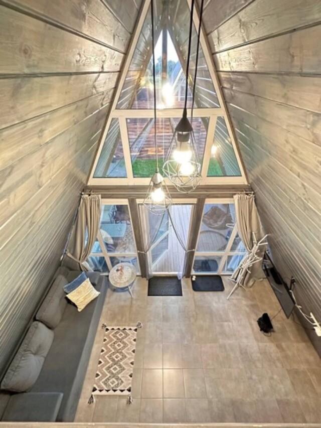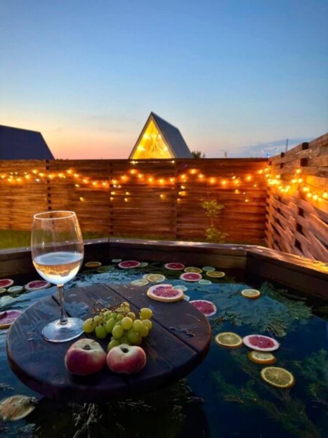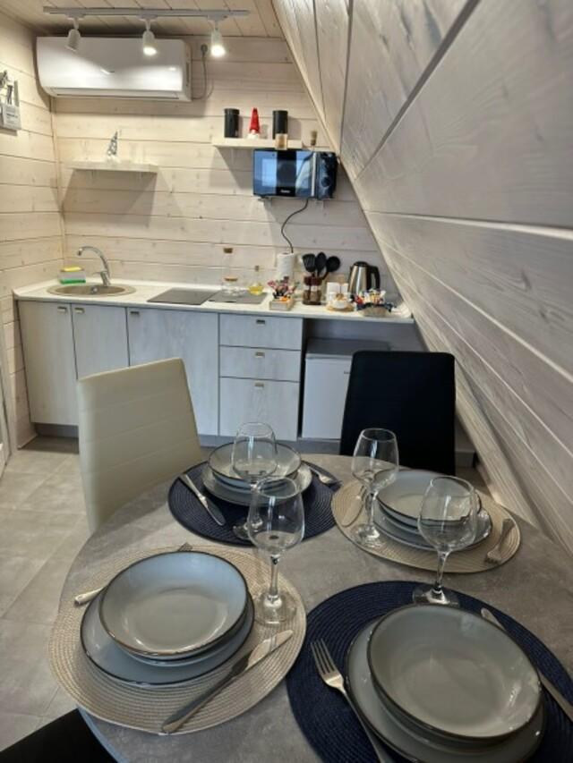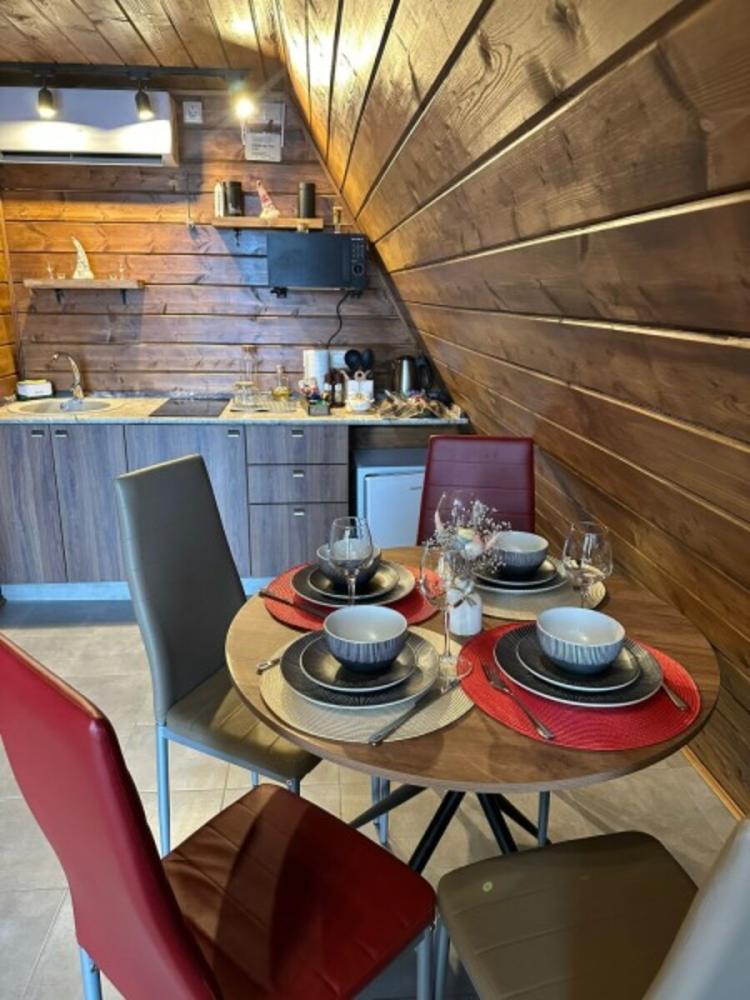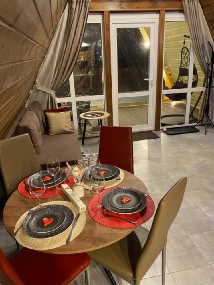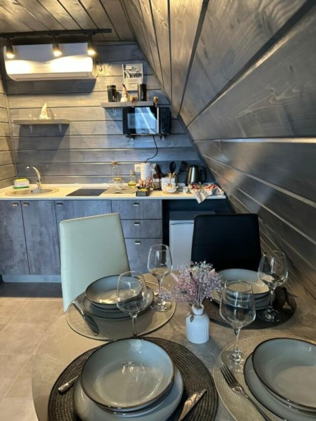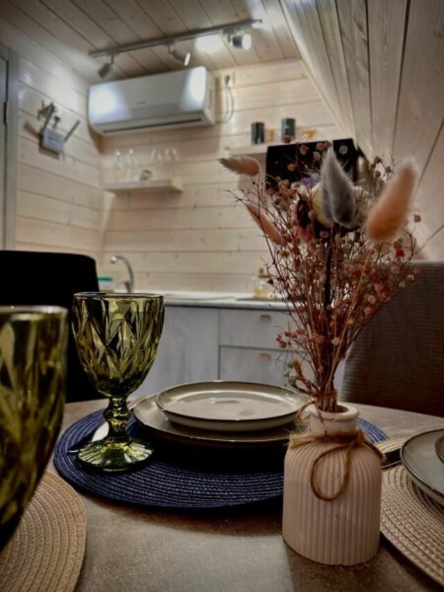 Домик A-FRAME с сибирским чaном. На территории домика установлен сибирский банный чан — идеальный способ расслабиться и восстановить силы после прогулок на свежем воздухе. В домике есть все необходимое : двуспальная кровать с ортопедическим матрасом (180×200), раскладной двуспальный диван (140×200),по запросу предоставляется детская кроватка-манеж (бесплатно); кухня полностью оборудована: индукционная плита, холодильник, микроволновка, чайник, посуда, масло, специи, чай, кофе, каши, мюсли; ванная комната: душевая, туалет, фен, халаты, тапочки, полотенца и индивидуальные средства гигиены. Приватный участок с костровой и мангальной зоной. Уютная закрытая терраса с мебелью из ротанга. Место для отдыха у костра и обеденная зона на свежем воздухе В стоимость аренды баня, чан и SPA не входят