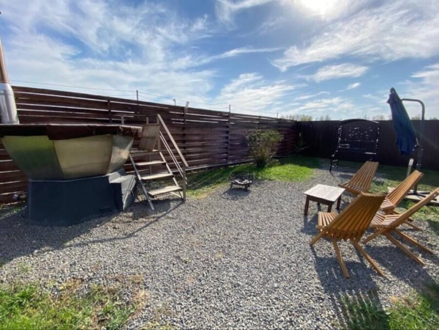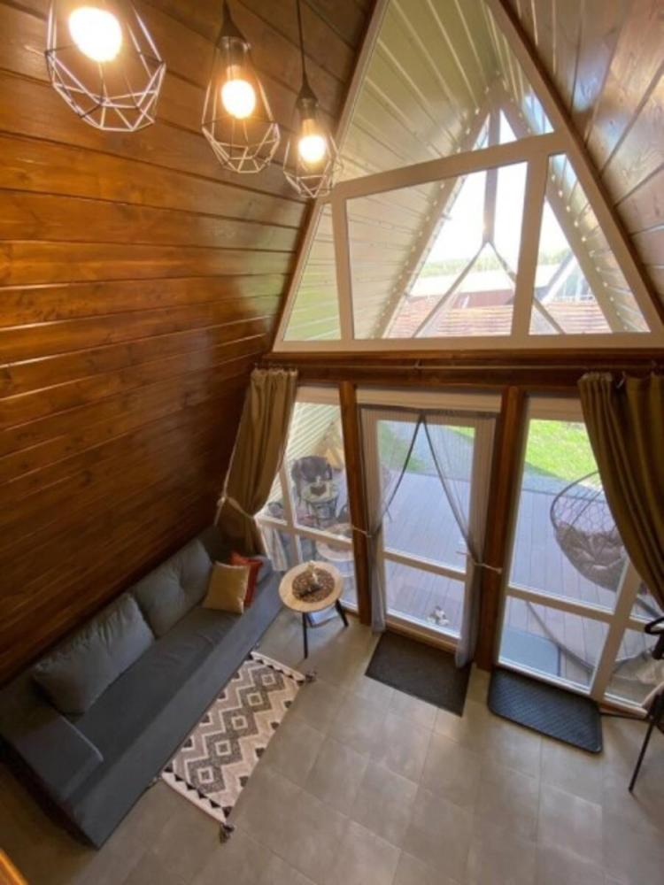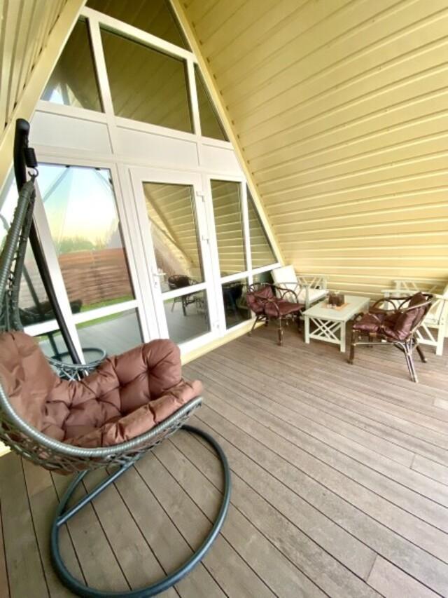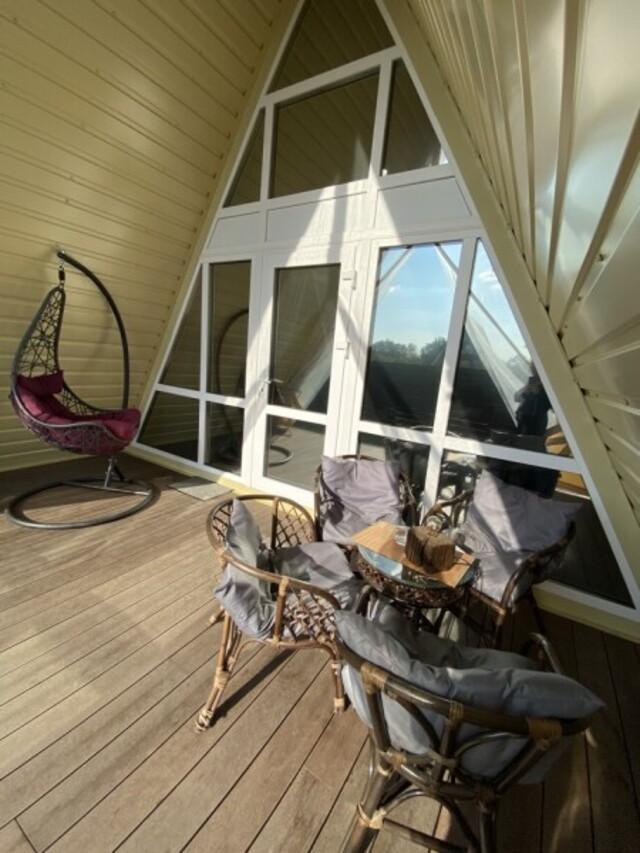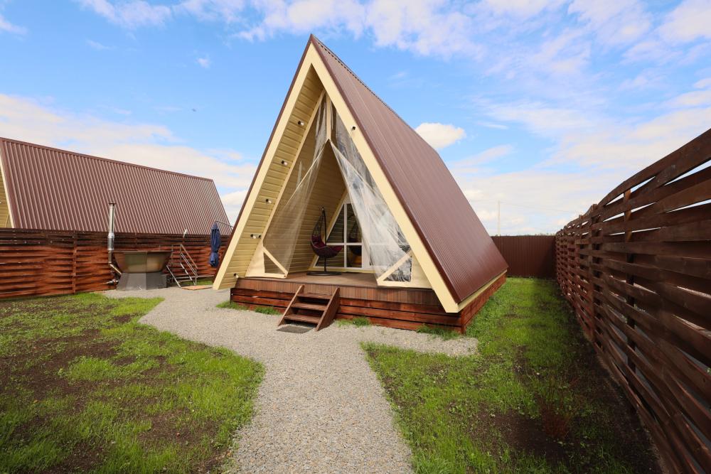 Домик A-FRAME с сибирским чaном. На территории домика установлен сибирский банный чан — идеальный способ расслабиться и восстановить силы после прогулок на свежем воздухе. В домике есть все необходимое : двуспальная кровать с ортопедическим матрасом (180×200), раскладной двуспальный диван (140×200),по запросу предоставляется детская кроватка-манеж (бесплатно); кухня полностью оборудована: индукционная плита, холодильник, микроволновка, чайник, посуда, масло, специи, чай, кофе, каши, мюсли; ванная комната: душевая, туалет, фен, халаты, тапочки, полотенца и индивидуальные средства гигиены. Приватный участок с костровой и мангальной зоной. Уютная закрытая терраса с мебелью из ротанга. Место для отдыха у костра и обеденная зона на свежем воздухе В стоимость аренды чан не входит