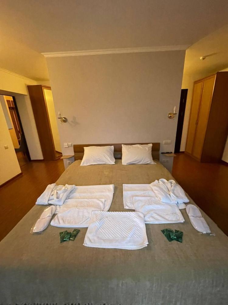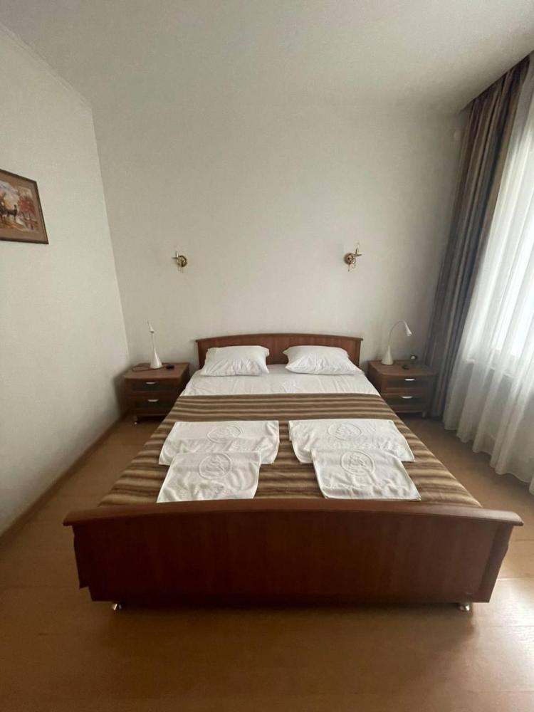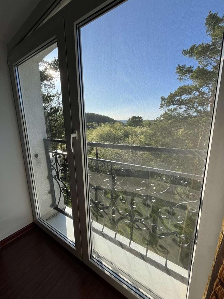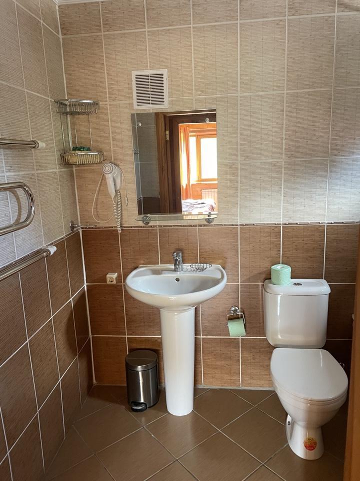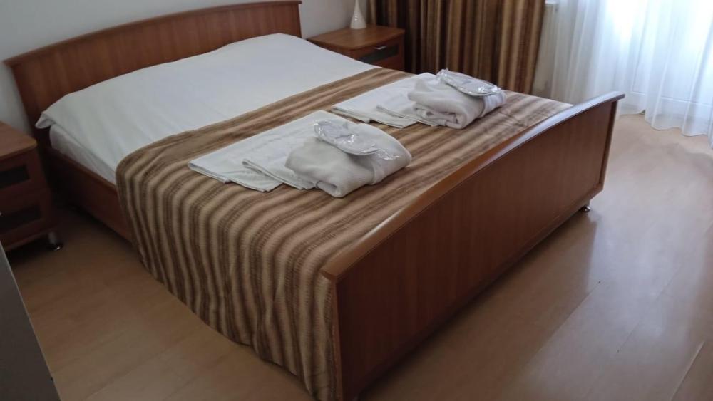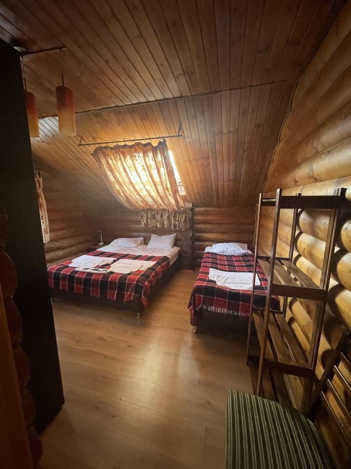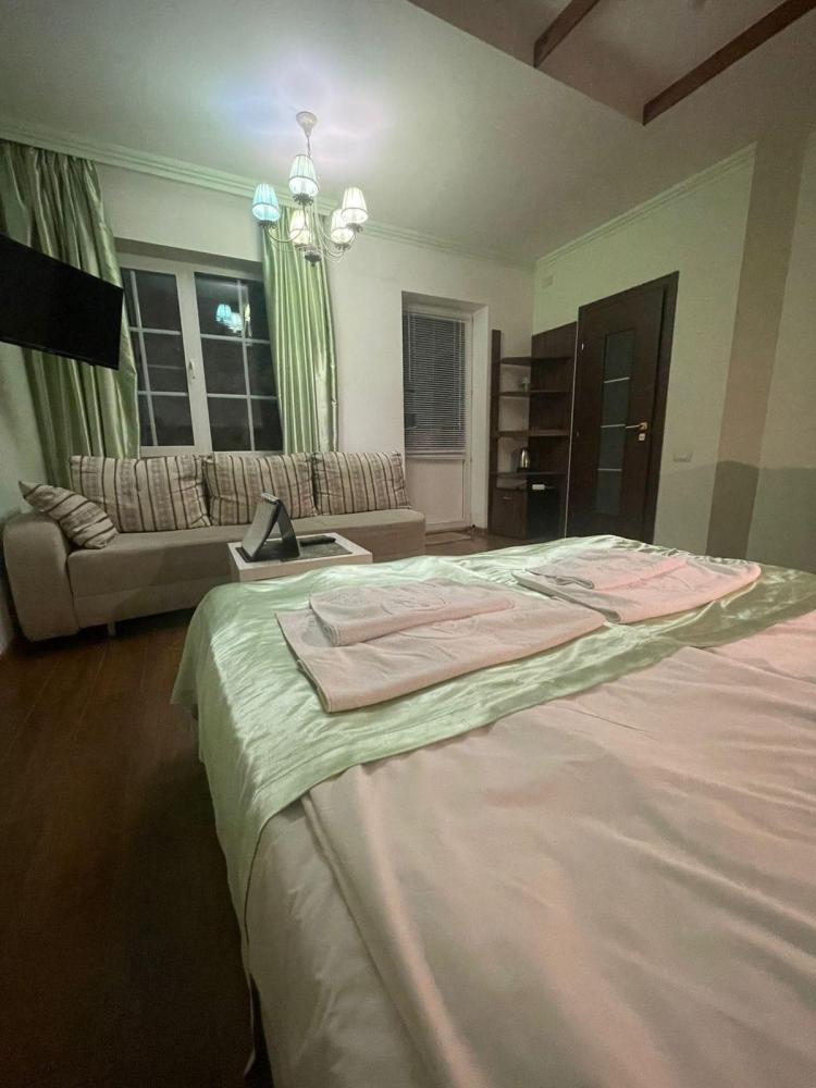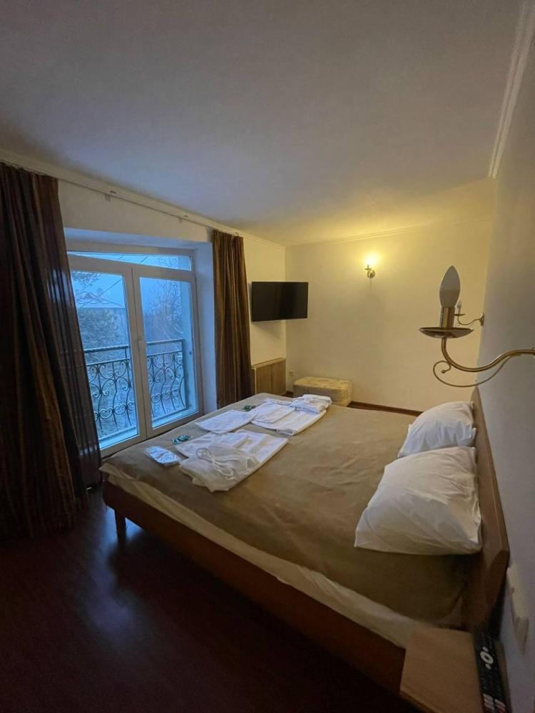 1 комната, две полуторки + диван, ТВ, сан. узел с ванной. Кондиционер отсутствует.Либо кровать , диван и полуторка, номер шале. Красивый вид из окна на лес и горы. Собственный вход.