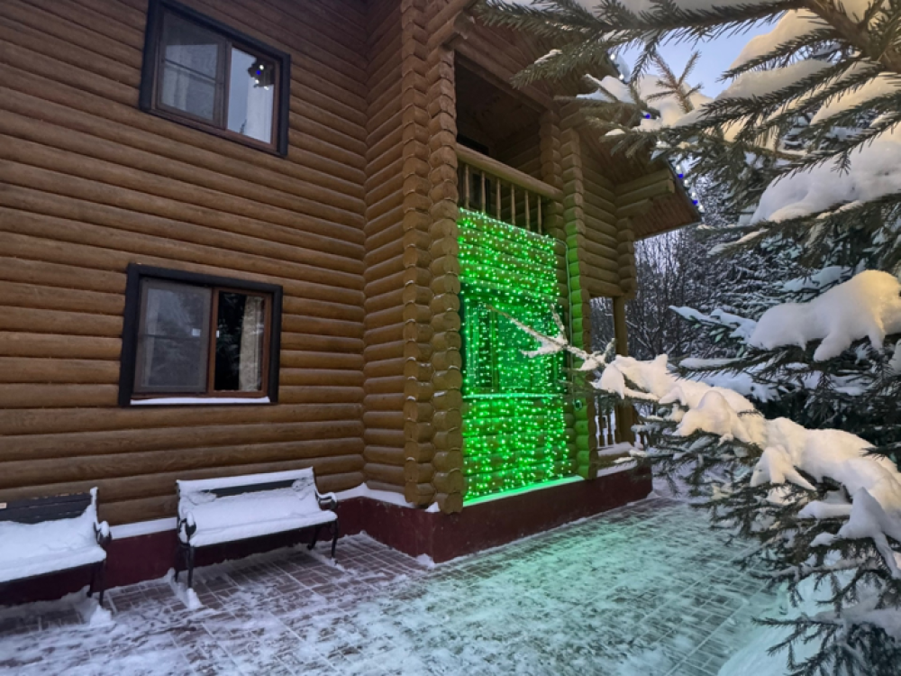 Идеальное решение для отдыха больших кампаний. Двухэтажный коттедж в Абзаково имеет общую гостиную с большим обеденным столом и кухонную зону, которая оборудована микроволновой печью, холодильником и комплектом посуды. В каждой комнате имеется собственный телевизор, шкаф и сейф. Три санузла расположились на первом и втором этажах. Главным преимуществом нашего коттеджа является то, что вы можете пользоваться всей инфраструктурой комплекса: бассейном, сауной, рестораном, спелеокамерой, детской площадкой и другими удобствами.