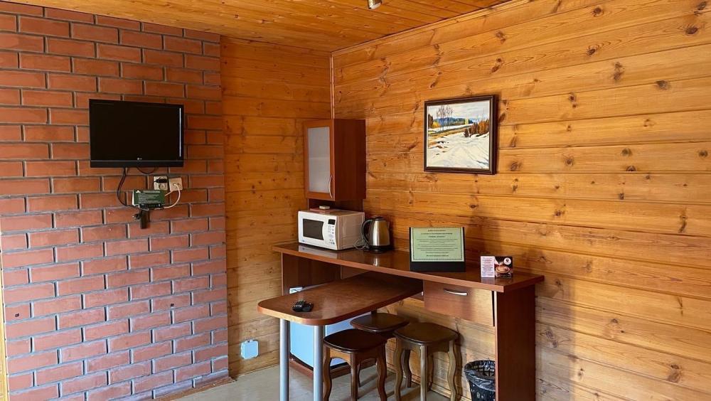 Улучшенный 1 комнатный стандартный номер. Двуспальная кровать/две полуторки + диван, ТВ, сан. узел с душевой кабиной, балкон, чайник, холодильник не во всех номерах, сейф, вид на сосновый бор.