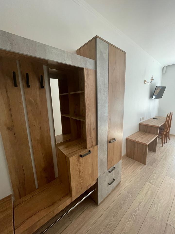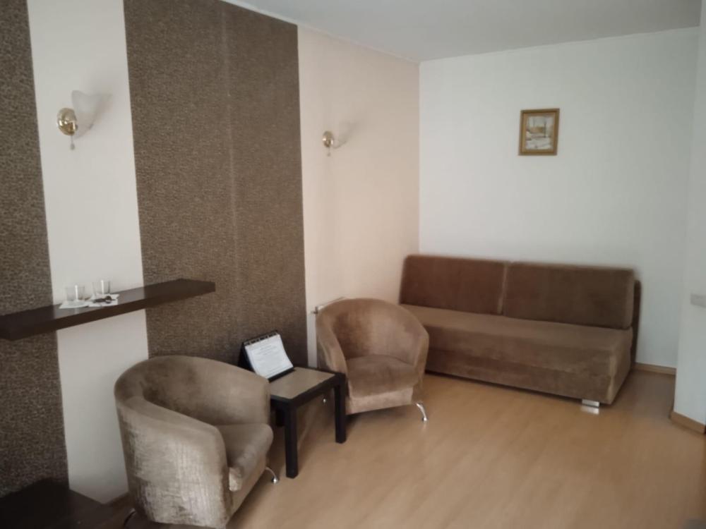 2 комнаты: гостиная и спальня, 2 ТВ, холодильник, сан. узел с душевой кабиной, балкон