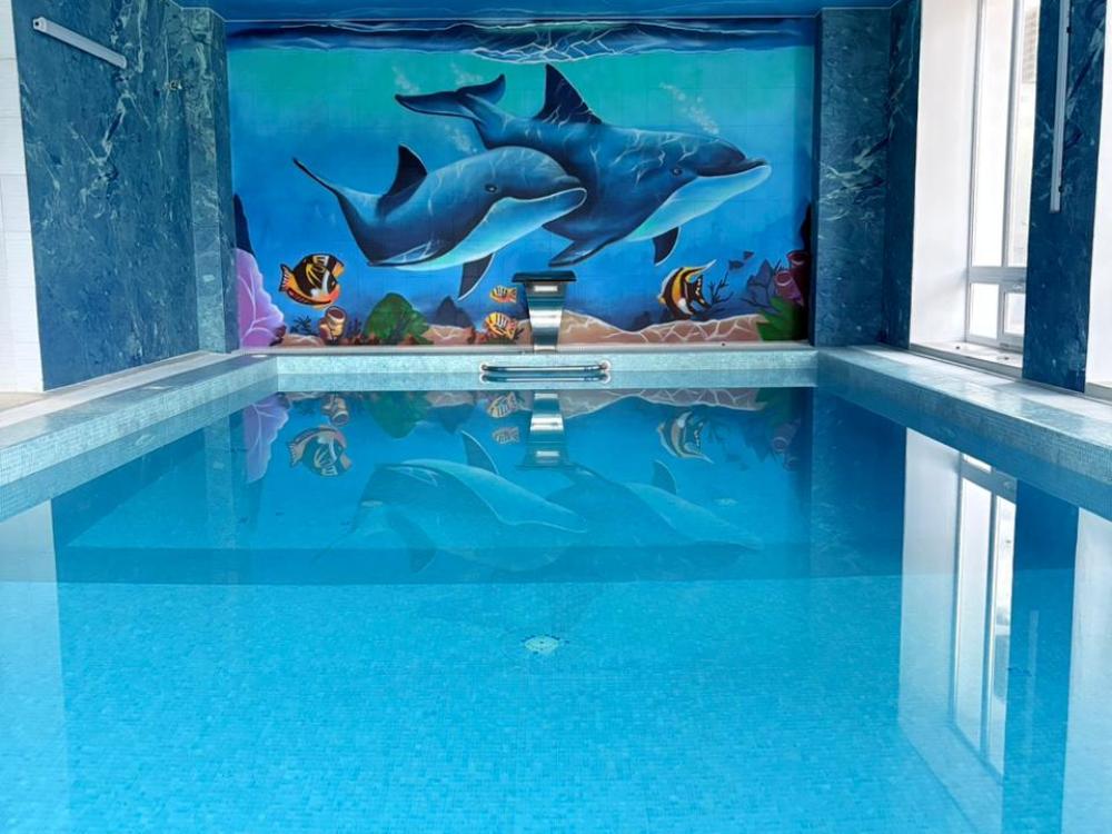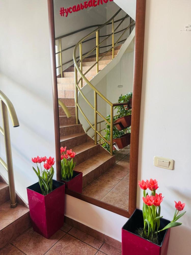 В отделке номера сьют использованы натуральные материалы: уральский змеевик, красная яшма и береза. Изюминкой номера является ванна вынесенная в зону спальни. Идеальный номер для романтической ночи.