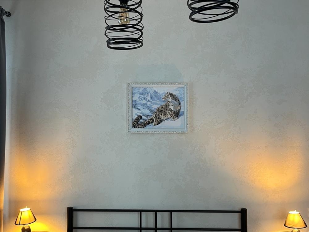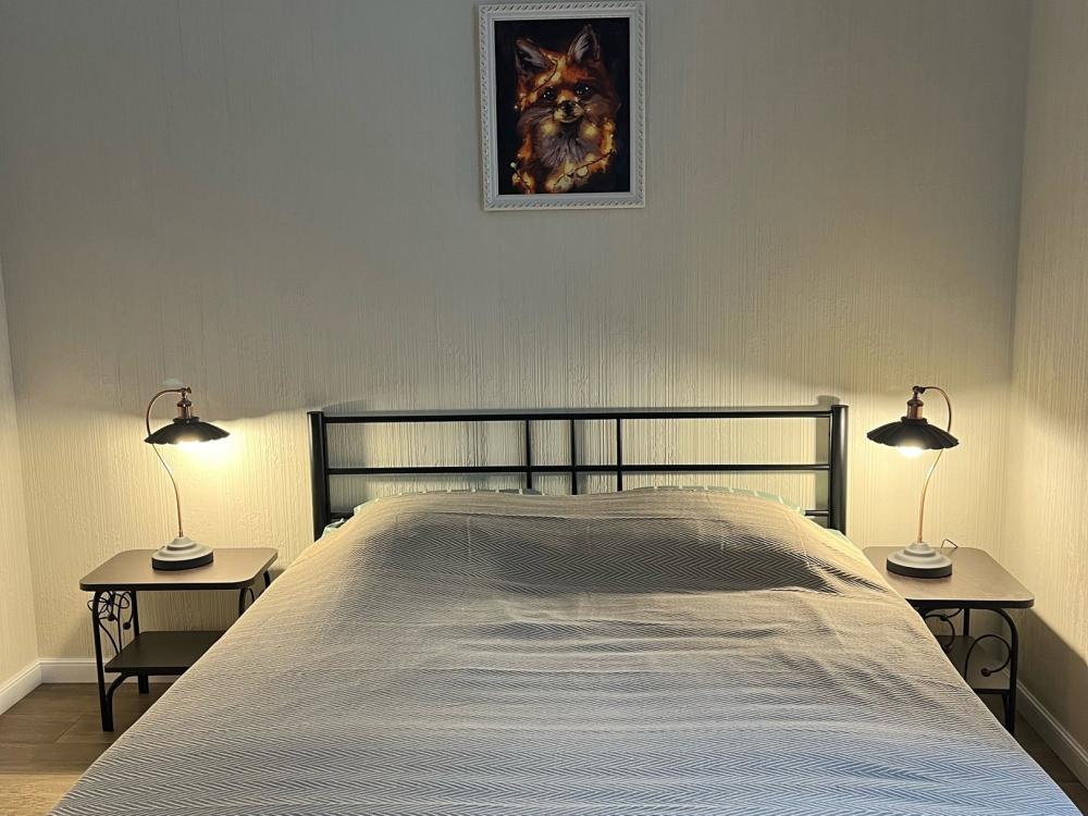 На каждом этаже находятся две спальни, в каждой двуспальная кровать, раскладной диван, две прикроватные тумбы и платяной шкаф. Гостиная оборудована раскладным диваном на двоих, креслом и креслом-качалкой. Санузел оборудован всем необходимым.