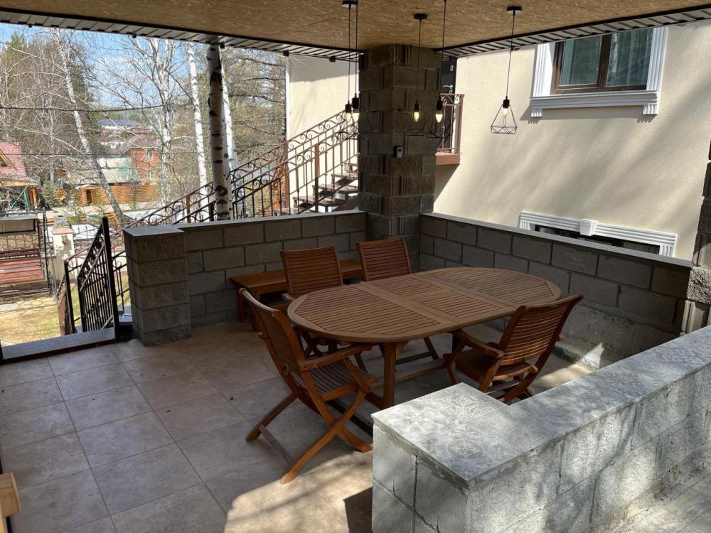 Дом находится на земельном участке 6 соток, на котором расположена мангальная зона и камин, баня, бильярд, тренажёрный зал.