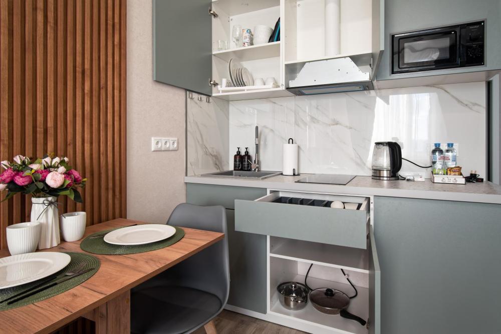 Если Вы планируете командировку, путешествие или просто хотите сменить обстановку, наша студия в ЖК "М1 Сколково" — это идеальное решение для тех, кто ценит комфорт, искусство и уникальность. Уникальный дизайн с греческой душой Каждая наша студия оформлена в неповторимом греческом стиле. Особенность интерьера — роспись ручной работы, посвященная одному из богов Олимпа. Это не просто место для проживания, это погружение в атмосферу мифов и эстетики. В НОМЕРЕ ИМЕЮТСЯ: -Цифровое телевидение (Smаrt-ТV) -Двуспальная кровать с ортопедическим матрасом -Бесплатный быстрый wi-fi -Кухня ( плита, холодильник, стиральная машина, сушилка, микроволновая печь, чайник, посуда, столовые приборы ). -Санузел -Гигиенические принадлежности -Душевая кабина, необходимые бытовые приборы: фен, гладильная доска и утюг Студия располагается в современном жилом комплексе ЖК "М1 Сколково" с закрытой территорией, охраной, бесплатной парковкой открытого типа и консьержем. На нижнем этаже строится современный фитнес-центр с бассейном. В комплексе есть супермаркет "Пятёрочка", ?кафе вьетнамской кухни, салон красоты и многое другое. ИНФРАСТРУКТУРА: -Кoнцepтный зaл LIVЕ APEНА(15 мин. пешком) -Рaзвлeкатeльный цeнтр VEGAS(13 мин на авто) -Гипеpмapкет TBОЙ ДОM -В 10 км 71 Гoрoдская клиническая больница им.М.Е Жадкевича (Клиника доктора Мясникова). -8 минут пешком до легкого метро станция «Немчиновка». -7 минут до Инновационного центра «Сколково». -Аэропорт Внуково (25 мин. на авто) -Мы размещаем командированных сотрудников и предоставляем отчётные документы. -Мы не заставляем гостей ждать, поэтому у нас предусмотрено удалённое бесконтактное заселение Расчетное время: заезд - после 14 часов выезд - до 12 часов !!!! Ранний заезд и поздний выезд возможны только по согласованию !!!! Стоимость позднего выезда после 12.00 составляет полную сумму за сутки проживания, по цене установленной в данный день на площадке бронирования. ОБРАТИТЕ внимание! -При заезде взимается возвратный страховой депозит. -у нас не курят -проживание без животных -квартира не предназначена для мероприятий любого формата Бронируйте и вы точно не пожалеете!