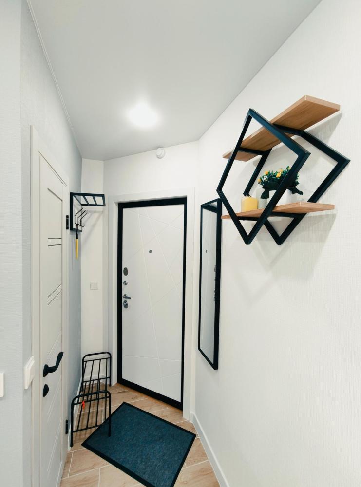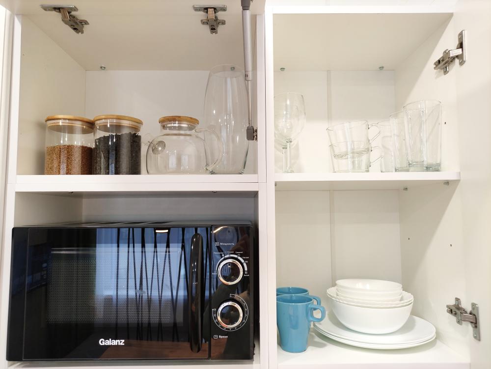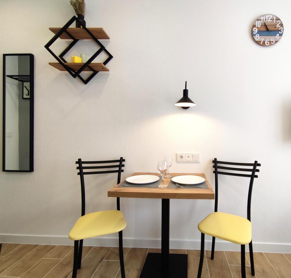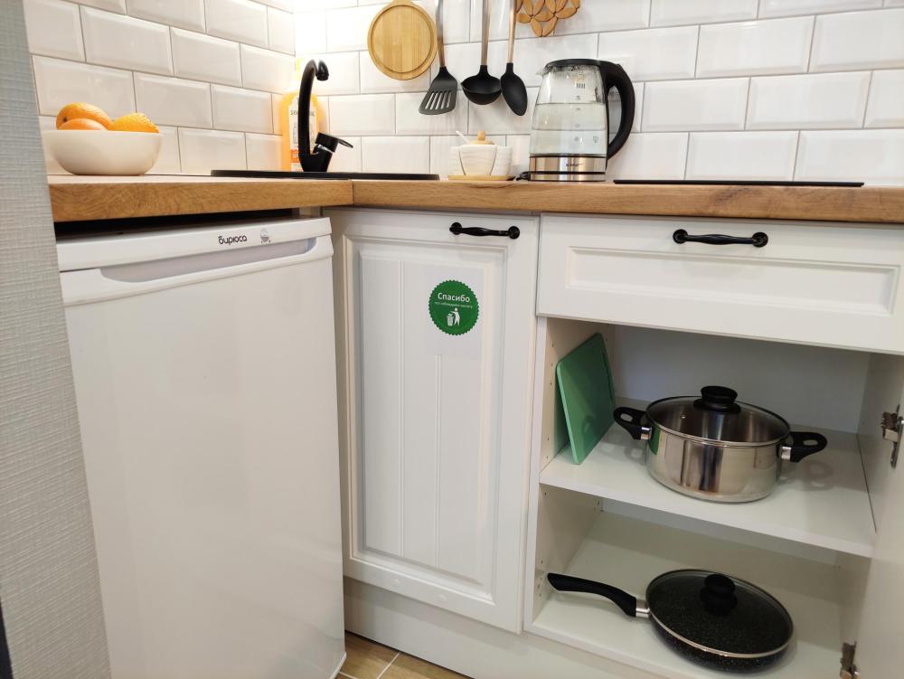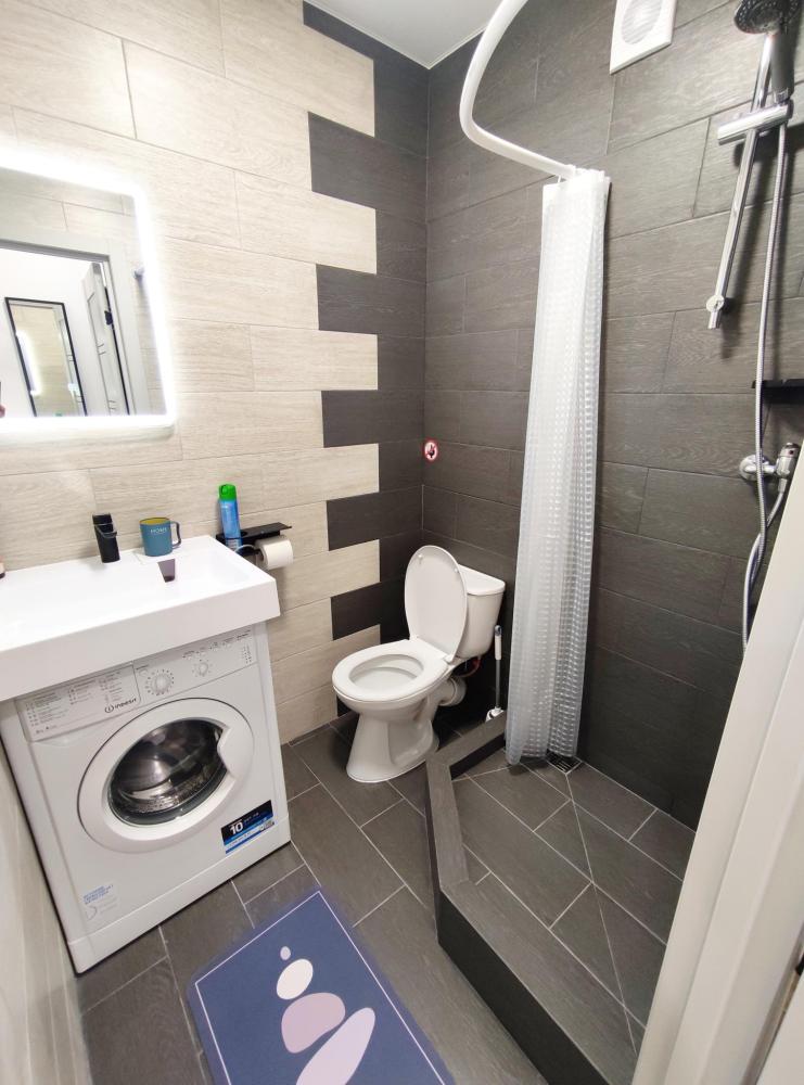 Уютные апартаменты студия, оборудованные всем необходимым для комфортного проживания. В апартаментах: двуспальная кровать, барная стойка и барные стулья, Wi-Fi телевизор со Smart-TV, холодильник, встроенная варочная панель, микроволновая печь, чай, кофе, необходимый набор кухонных принадлежностей, стиральная машина и сушилка для вещей утюг и гладильная доска.