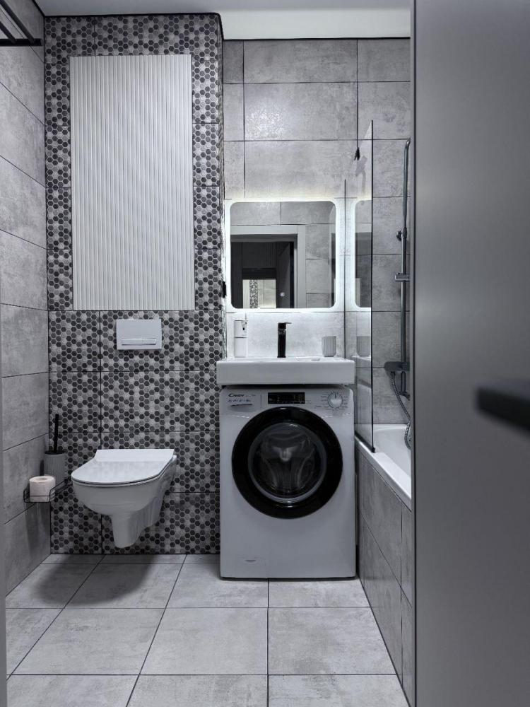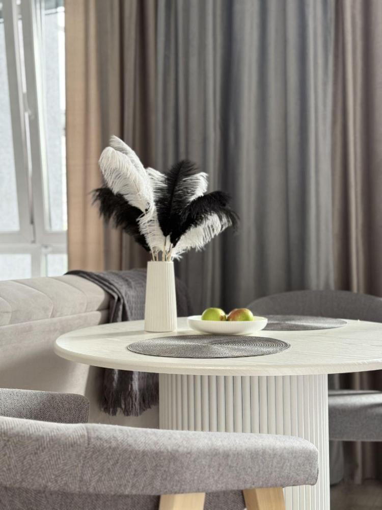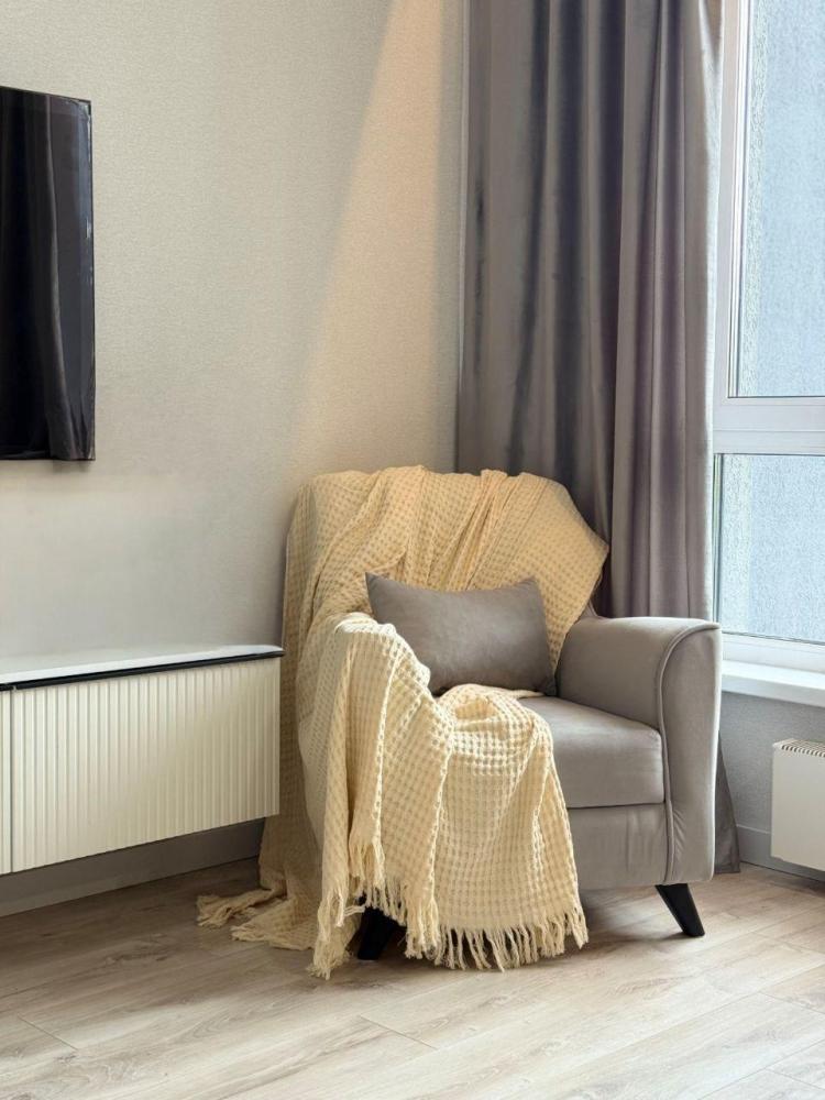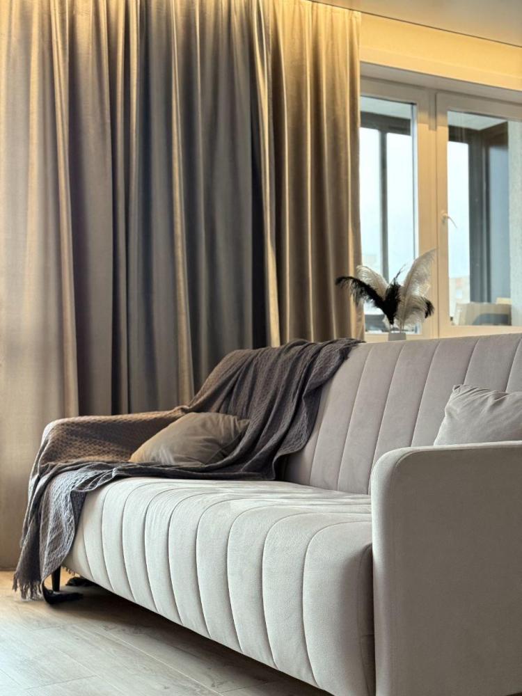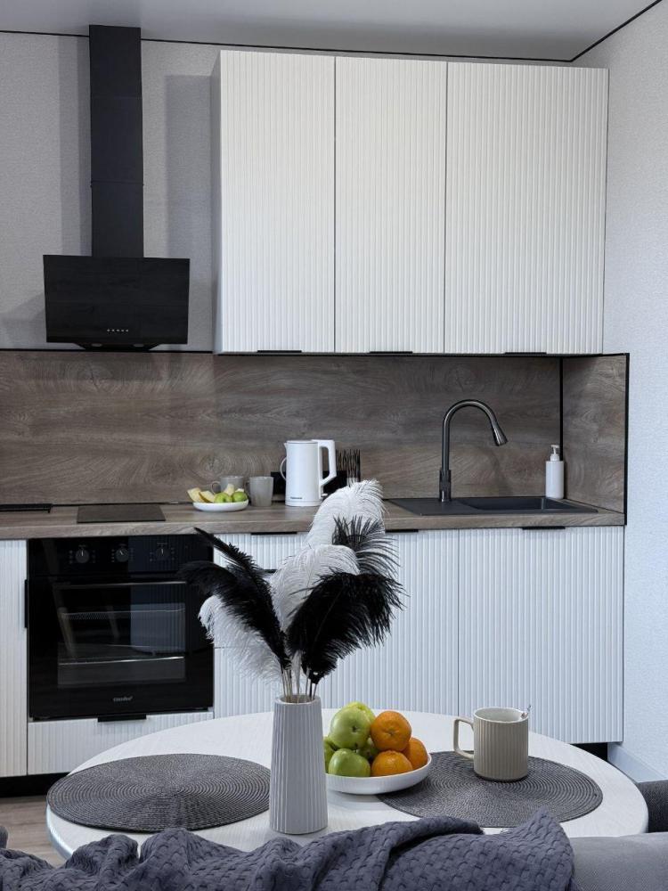 Оснащение и дизайн: • Современный ремонт: Стильная монохромная гамма (белый, серый, черный), качественная отделка, многоуровневая подсветка. • Посудомоечная машина, кофемашина(редкость для аренды!), теплые полы, Wi-Fi. Планировка: Просторная студия 34.7 м² с совмещенной гостиной-кухней — светлая и очень уютная.