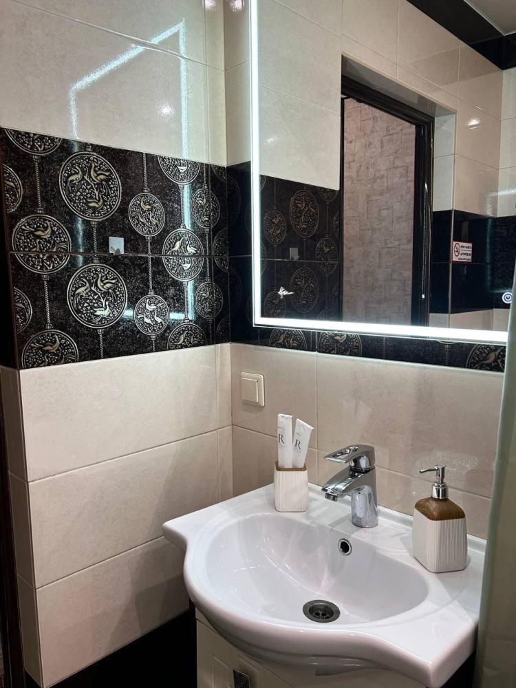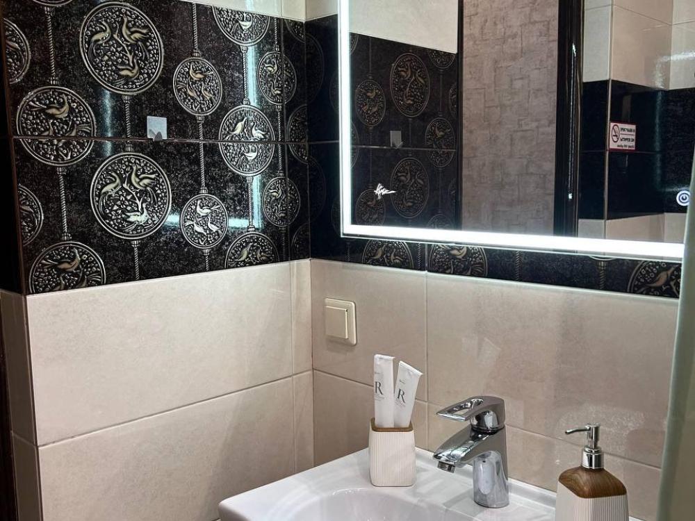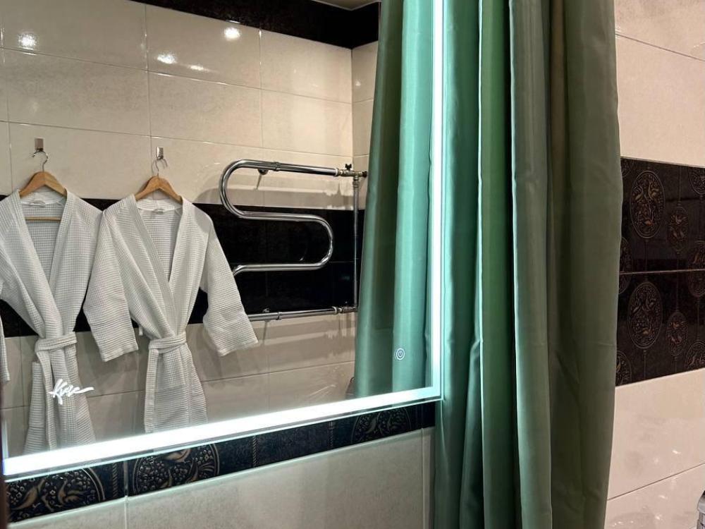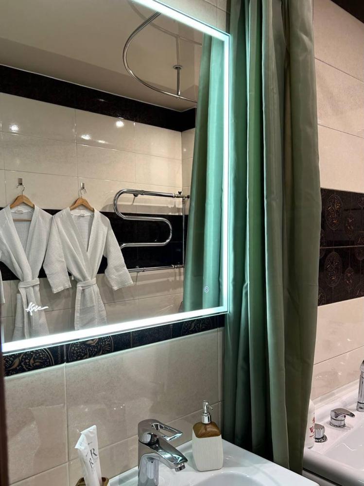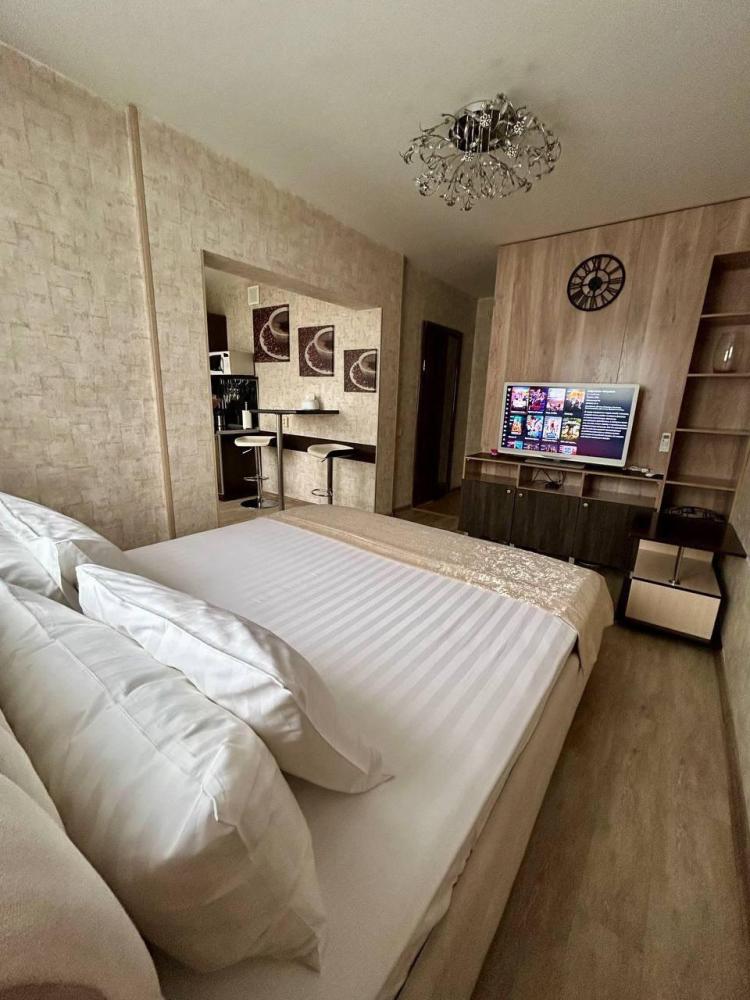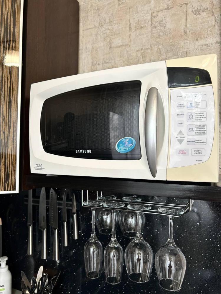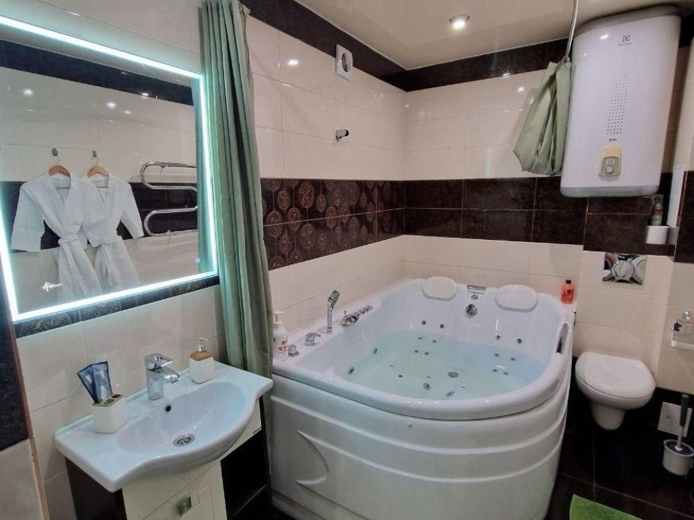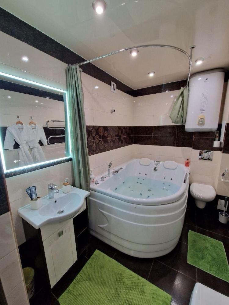 Уютные однокомнатные апартаменты, оборудованные всем необходимым для комфортного проживания. В квартире: джакузи с хромотерапией, гидро и аэро-массажем, ЖК телевизор, зарядное устройство для смартфонов всех видов, Wi-Fi, кондиционер, водонагреватель, фен, тапочки, полотенца, халаты, шампунь и гель для душа, зубные наборы, двуспальная ковать с премиальным матрасом (Ormatek), необходимая посуда и столовые приборы, бокалы под разные напитки и ваза для цветов, печь СВЧ, 1-конфорочная печь, мультиварка, холодильник, кофемашина, фильтр для воды, сейф, утюг, гладильная доска, сушилка.