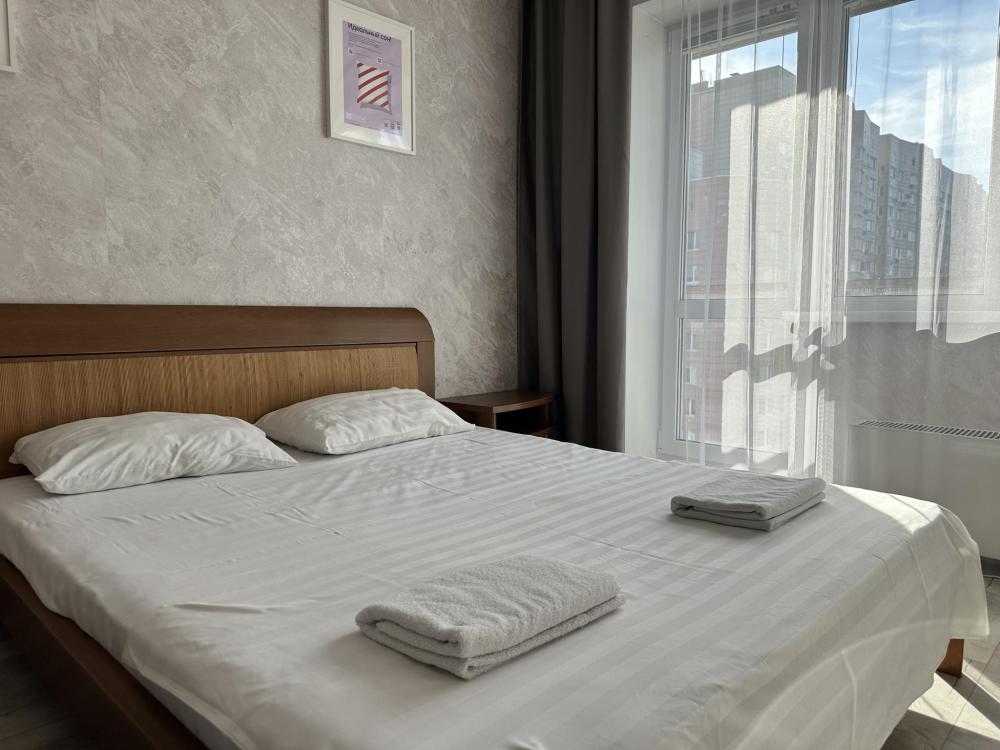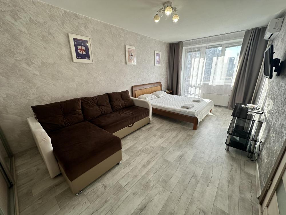 Двухкомнатная квартира расположена на 13-ом этаже в новом доме. В доме есть лифт. Во дворе парковка с видео наблюдением. В квартире есть: двуспальная кровать, большой раскладывающийся двуспальный диван, односпальная кровать и кресло-кровать. ТВ и Wi-Fi. Просторная кухня оснащена всей необходимой бытовой техникой: кухонной плитой, холодильником, микроволновой печью, электрическим чайником и фильтром для воды. Ванная комната совмещенная. Есть стиральная машина автомат, фен. Каждому гостю мы предоставляем постельное белье из качественного белого текстиля. При длительном проживании бесплатно производится уборка каждые 3-5 дней. В день заезда Вам необходимо приехать к нам в офис по адресу ул.Запорожская, д. 69. На домофоне нажмите "Concierge".. Здесь Вы заберёте ключи от апартаментов и подпишите договор. При себе Вам необходимо иметь оригинал паспорта РФ или водительского удостоверения.