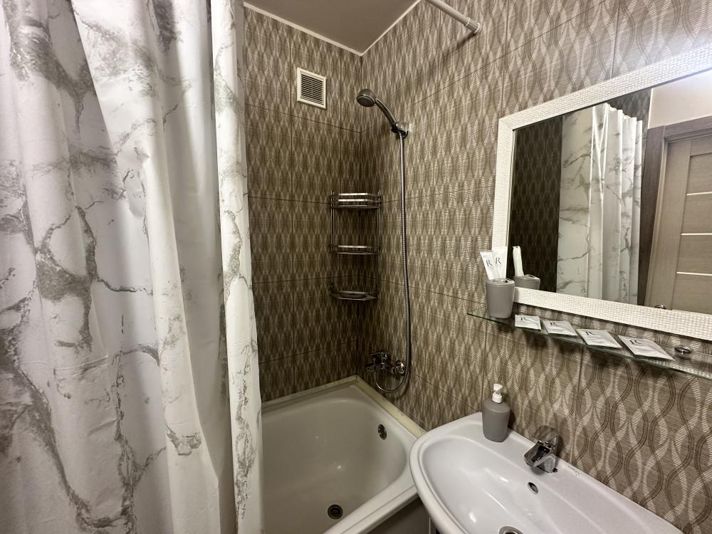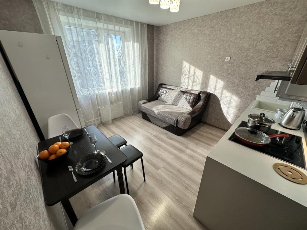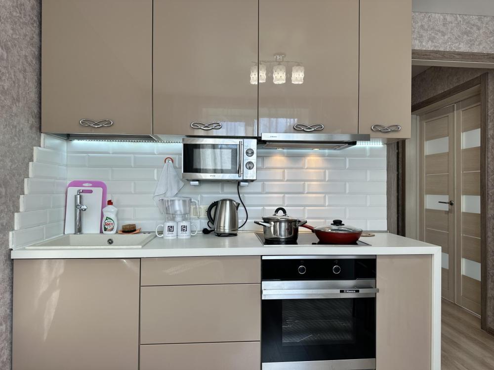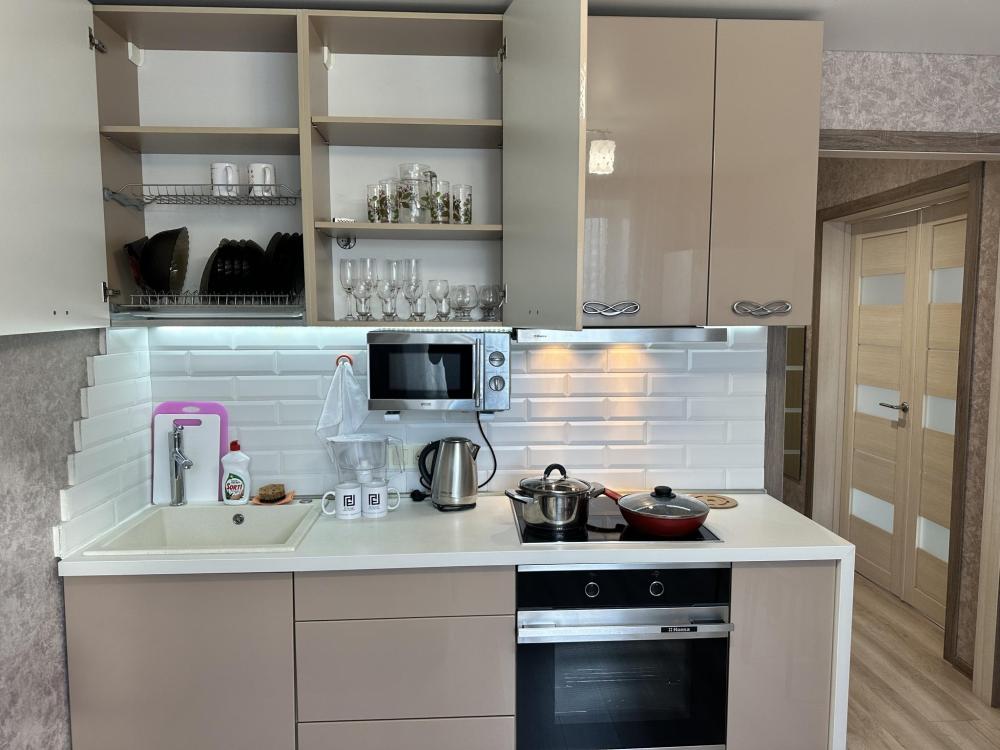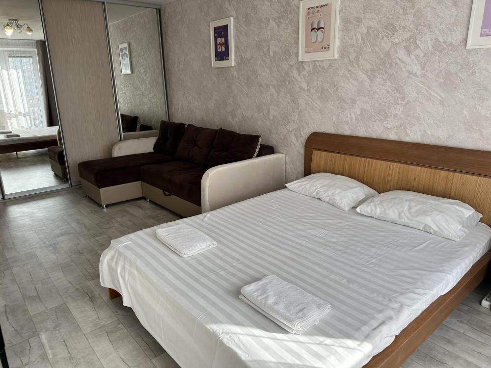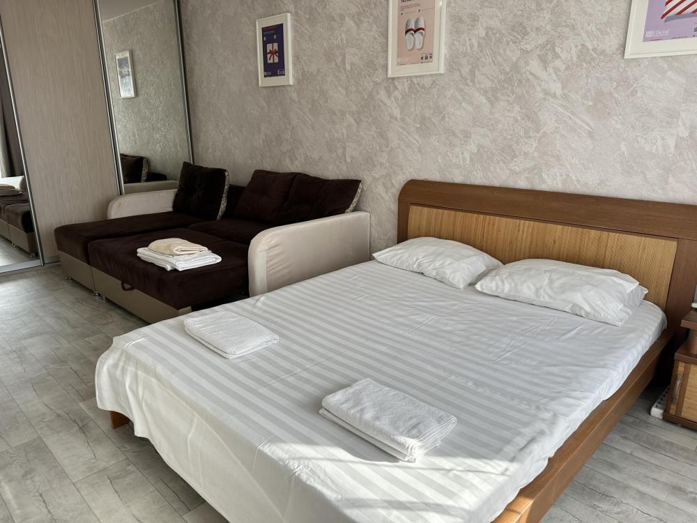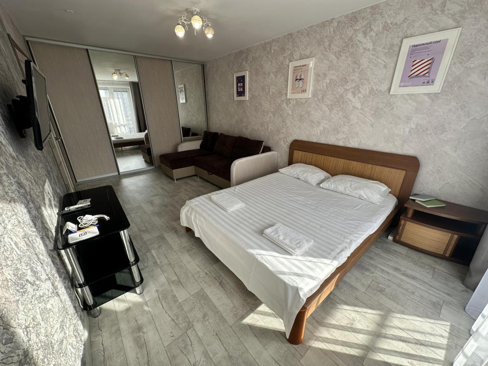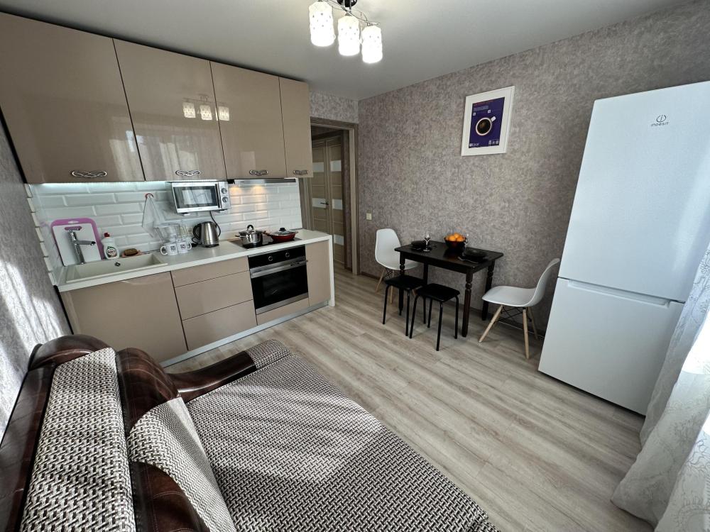 Уютная квартира после свежего ремонта Мы заботимся о Вашем комфорте и предлагаем квартиру, недавно прошедшую косметический ремонт. В ней Вы найдете все необходимое для полноценного отдыха: •Гостиная: большая двуспальная кровать, раскладывающийся диван, шкаф, телевизор и Wi-Fi. •Кухня: кухонная плита, холодильник, микроволновая печь, электрический чайник и фильтр для воды. •Сантехника: совмещенный санузел (ванна и туалет), стиральная машина автомат и фен. Для каждого гостя мы предоставляем постельное белье из качественного белого текстиля. При длительном проживании бесплатно производится уборка каждые 3–5 дней.