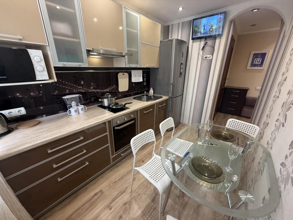 Уютная квартира после свежего ремонта Мы заботимся о Вашем комфорте и предлагаем квартиру, недавно прошедшую косметический ремонт. В ней Вы найдете все необходимое для полноценного отдыха: •Гостиная: большая двуспальная кровать, раскладывающийся диван, шкаф, телевизор и Wi-Fi. •Кухня: кухонная плита, холодильник, микроволновая печь, электрический чайник и фильтр для воды. •Сантехника: совмещенный санузел (ванна и туалет), стиральная машина автомат и фен. Для каждого гостя мы предоставляем постельное белье из качественного белого текстиля. При длительном проживании бесплатно производится уборка каждые 3–5 дней. Преимущественное расположение: в пешей доступности находятся Бизнес-центр Сити, ТРЦ Ника, ТРЦ Комета и ТРЦ СитиМолл. Это делает нашу квартиру идеальным выбором как для деловых поездок, так и отдыха.