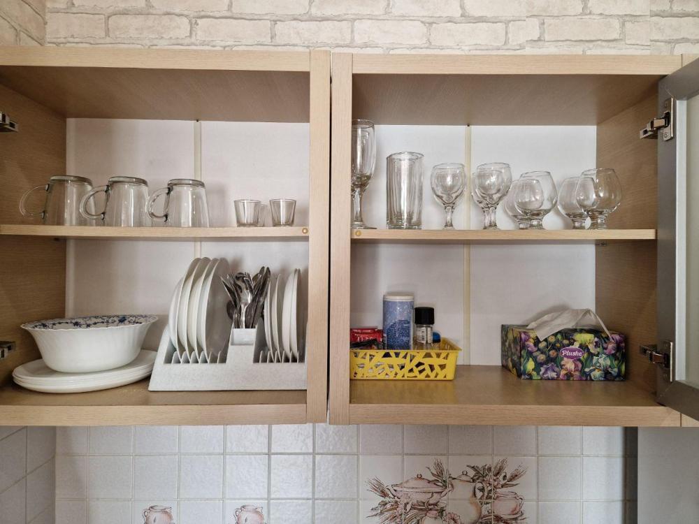 •Наши квартиры оборудованы всем необходимым. На кухне есть всё необходимое для приготовления пищи, включая микроволновую печь, электрочайник, холодильник и посуду.