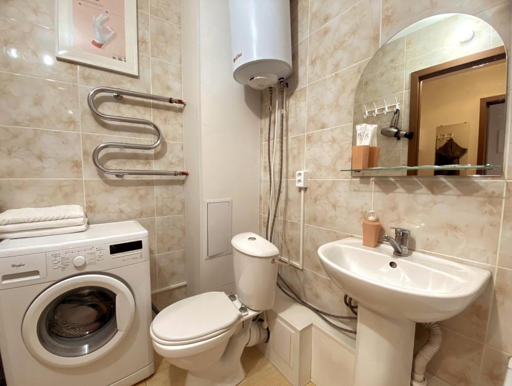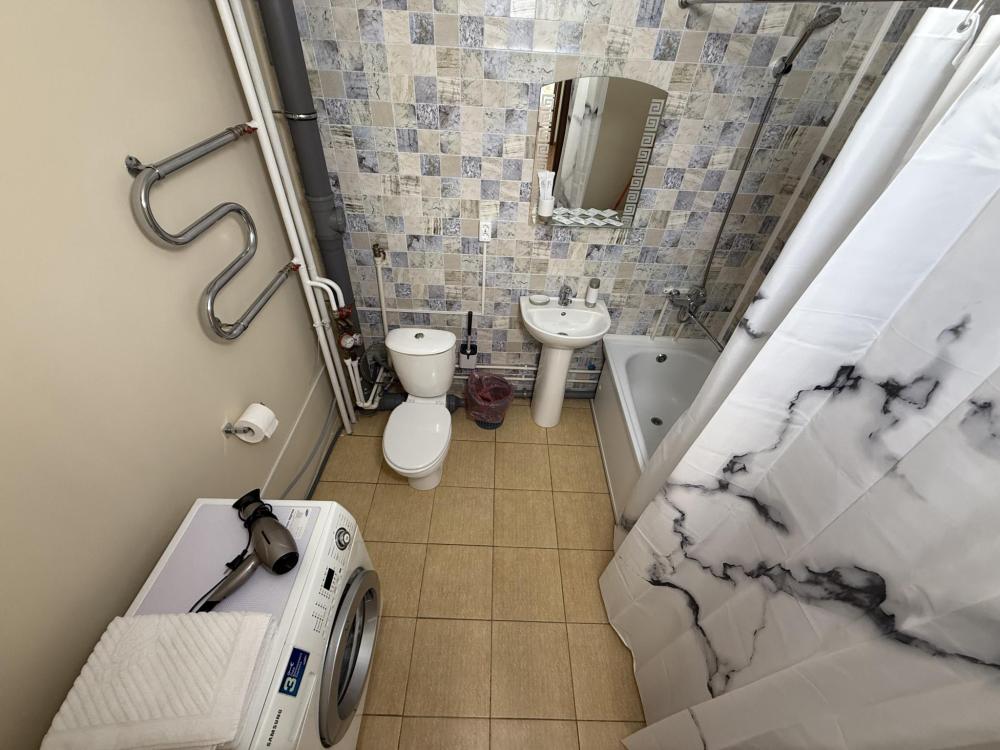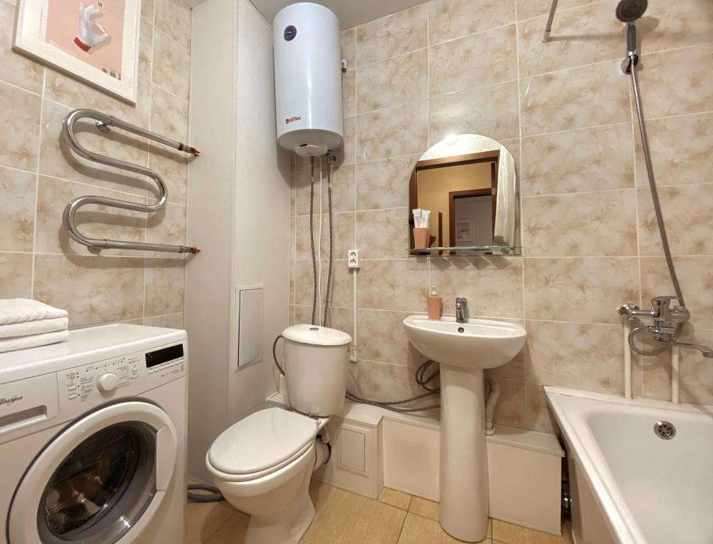 В квартире сделан свежий косметический ремонт, потому что нам важен Ваш комфорт. Гостиная укомплектована большой кроватью, двумя креслами-кроватями, шкафом для одежды, ТВ и Wi-Fi. Помимо этого кухня оснащена всей необходимой бытовой техникой: кухонной плитой, холодильником, микроволновой печью, электрическим чайником и фильтром для воды. Ванна с туалетом совмещены. Есть стиральная машина автомат, фен. Каждому гостю мы предоставляем постельное белье из качественного белого текстиля. При длительном проживании бесплатно производится уборка каждые 3-5 дней. В день заезда Вам необходимо приехать к нам в офис по адресу ул.Запорожская, д. 69. На домофоне нажмите "Concierge".. Здесь Вы заберёте ключи от апартаментов и подпишите договор. При себе Вам необходимо иметь оригинал паспорта РФ или водительского удостоверения.