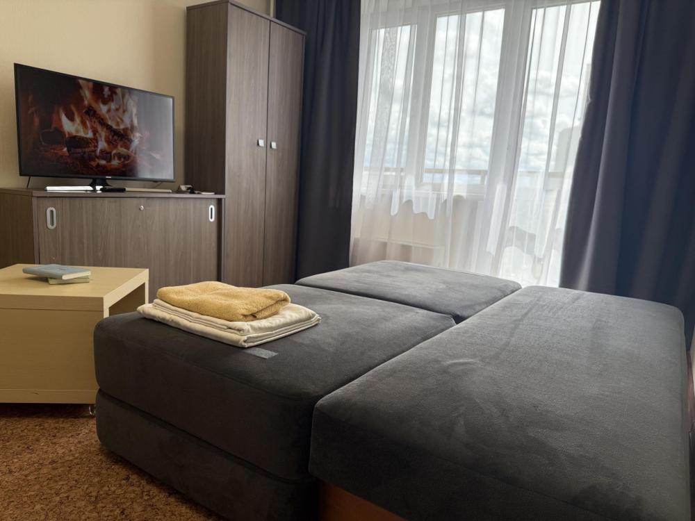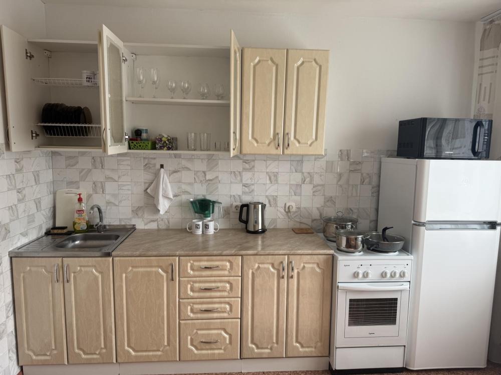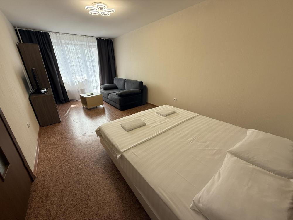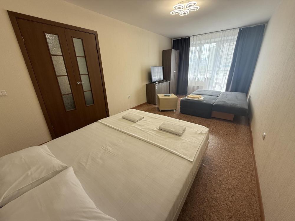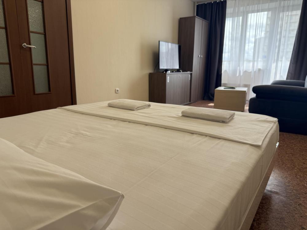 Уютная квартира после свежего ремонта Мы заботимся о Вашем комфорте и предлагаем квартиру, недавно прошедшую косметический ремонт. В ней Вы найдете все необходимое для полноценного отдыха: •Гостиная: большая двуспальная кровать, раскладывающийся диван, шкаф, телевизор и Wi-Fi. •Кухня: кухонная плита, холодильник, микроволновая печь, электрический чайник и фильтр для воды. •Сантехника: совмещенный санузел (ванна и туалет), стиральная машина автомат и фен. Для каждого гостя мы предоставляем постельное белье из качественного белого текстиля. При длительном проживании бесплатно производится уборка каждые 3–5 дней. Преимущественное расположение: в пешей доступности находятся Бизнес-центр Сити, ТРЦ Ника, ТРЦ Комета и ТРЦ СитиМолл. Это делает нашу квартиру идеальным выбором как для деловых поездок, так и отдыха.