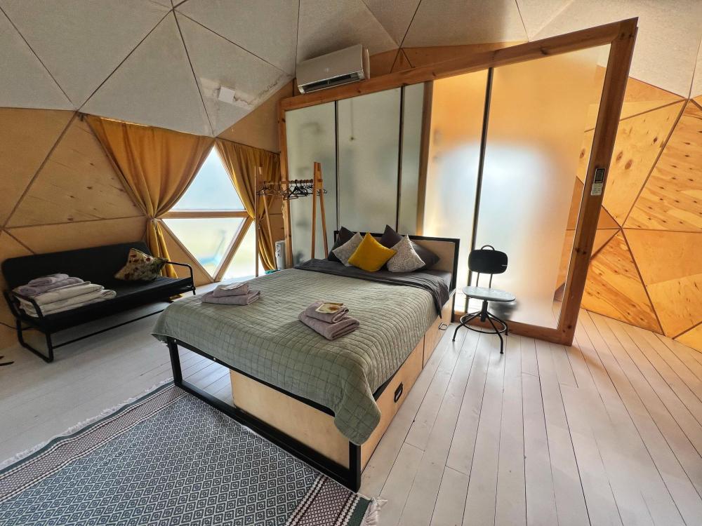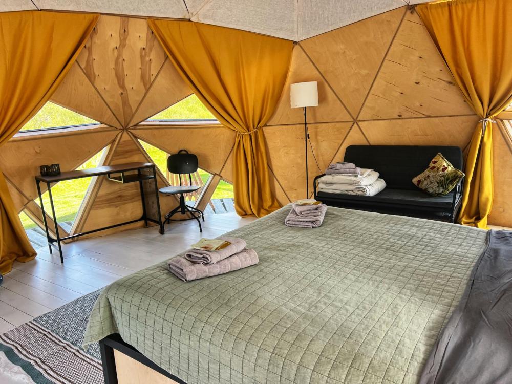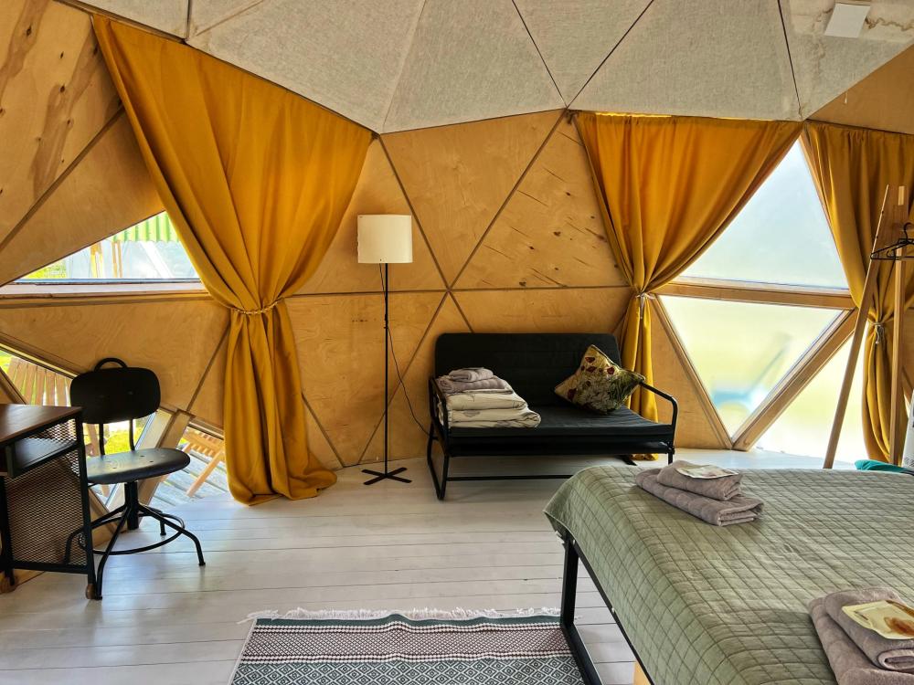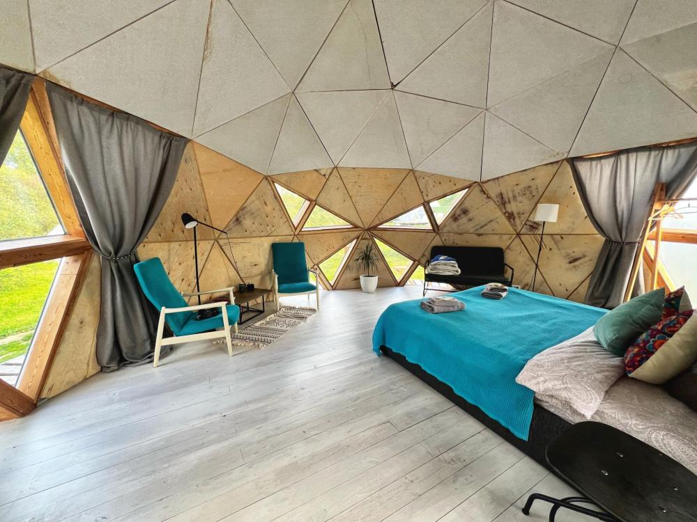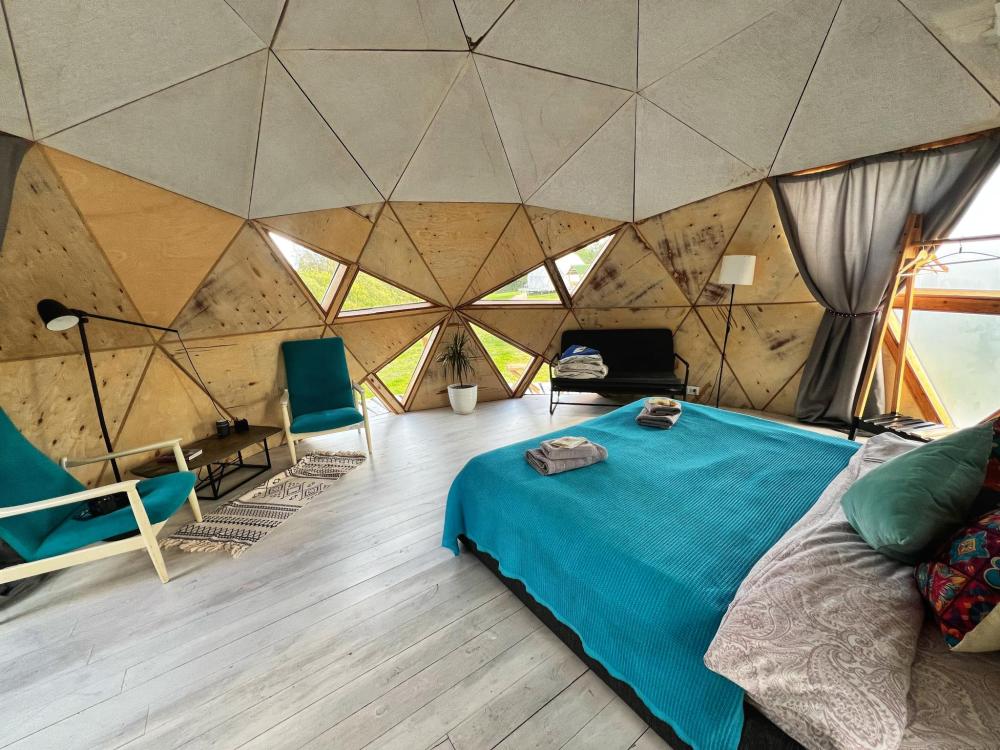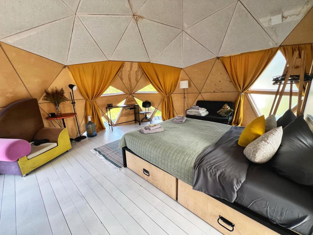 Теплый купольный дом на 2 человека, предназначенный для круглогодичного проживания с местом для мангала и видом на озеро. Можно готовить на собственной кухне или заказывать еду из ресторана. Идеальный вариант для семьи с двумя детьми или для пары.