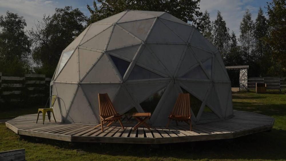 Теплый купольный дом на 5 человека, предназначенный для круглогодичного проживания с местом для мангала и видом на озеро. Можно готовить на собственной кухне или заказывать еду из ресторана. Идеальный вариант для семьи с двумя детьми или для пары.