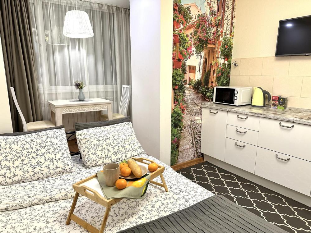 Дорогой гость! Наша квартира-студия Сицилия не оставит никого равнодушным! Территория романтики и ленивого утра с уютным завтраком ? - все это в новом доме и в новом ЖК. Приглашаем постоянных гостей сети апартаментов Доминго и будем рады видеть новых! Отчетные документы! Работаем с физ. и юр. лицами. Нас выбирают за ? отличное расположение ? максимально комфортное проживание ? идеальную чистоту и ?️быстроту заселения. С комфортом разместим двух персон. В спальне-гостиной: ⭐️двуспальная кровать 160х200см с качественным ортопедическим матрасом ⭐️идеальное постельное белье отельного качества из хлопка 100% ⭐️подушки повышенной комфортности, которые дарят сладкий сон на всю ночь ⭐️ТВ ⭐️высокоскоростной Wi-Fi На кухне-обеденной зоне: -кухонный гарнитур -индукционная варочная поверхность - холодильник с морозилкой -микроволновая печь -электрический чайник - посуда для сервировки и приготовления блюд -чай/кофе В ванной комнате: - душевая кабина -широкоформатное зеркало -шампунь/гель для душа -белоснежные полотенца -стиральная машина -фен Все белье стирается, сушится и утюжится в прачечной на профессиональном оборудовании. Высокие стандарты уборки. ЖК имеет закрытую территорию, что делает проживание и парковку безопасной. Важная информация!!! Заселение в квартиру происходит бесконтактно, после полной оплаты у вас будет подробная инструкция. До прибытия в квартиру необходимо будет подписать электронный договор (нужен паспорт) и оплатить проживание. Перед заселением необходимо внести залог 2000₽, возврат залога - в день выезда (не позднее 22:00) при условии соблюдения правил проживания. ?Заезд: с 14:00 ?Выезд: до 12:00 По согласованию и при наличии возможности предоставляется ранний заезд и поздний выезд. ?Курение запрещено. Штраф равен стоимости залога. Заселение для лиц старше 23 лет. По вопросам бронирования мы на связи с 08:00 до 23:00. Ночные брони будут рассмотрены утром. Будем рады принять вас
