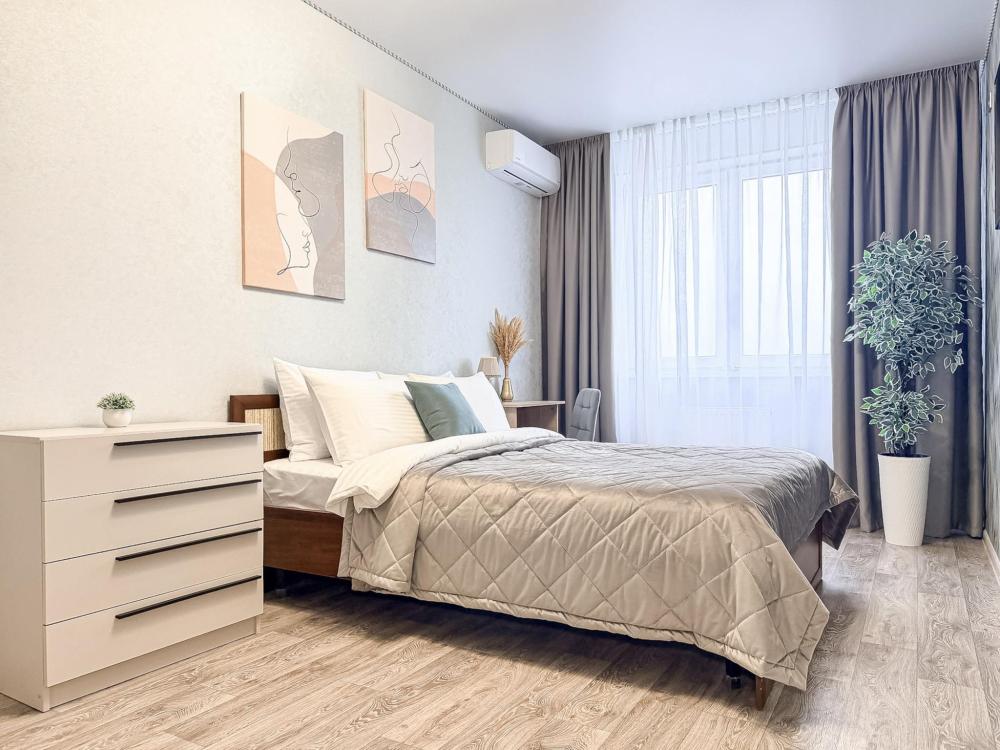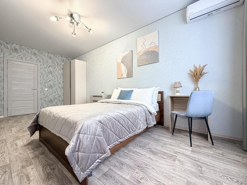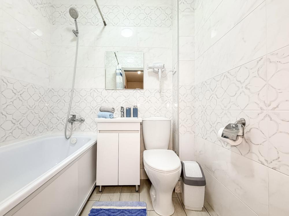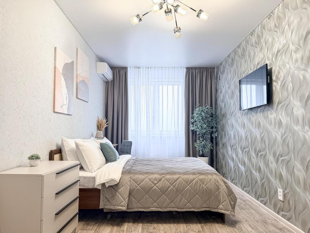 Апартаменты "Монако 24" - с красивым видом на город. Здесь есть все для комфортной жизни. Полноценная кухня со всей необходимой посудой, холодильник, чайник, электроплита, столовые приборы, микроволновая печь, стиральная машина, в ванной комнате фен, ванная, у нас всегда чистое, свежее постельное белье и полотенца, все это поможет Вам почувствовать здесь себя свежо и комфортно. Есть, сушилка для белья, гладильная доска, утюг, пылесос. Для просмотра любимых передач и кино - современный телевизор с функцией Smаrt ТV, бесплатный высокоскоростной Wi-Fi. Количество спальных мест - 3. Двуспальная кровать с ортопедическим матрасом, раскладной односпальный диван.