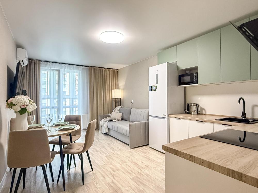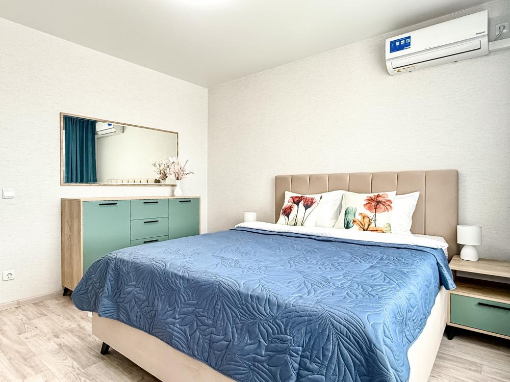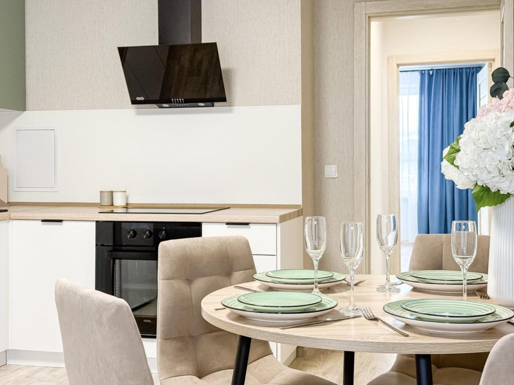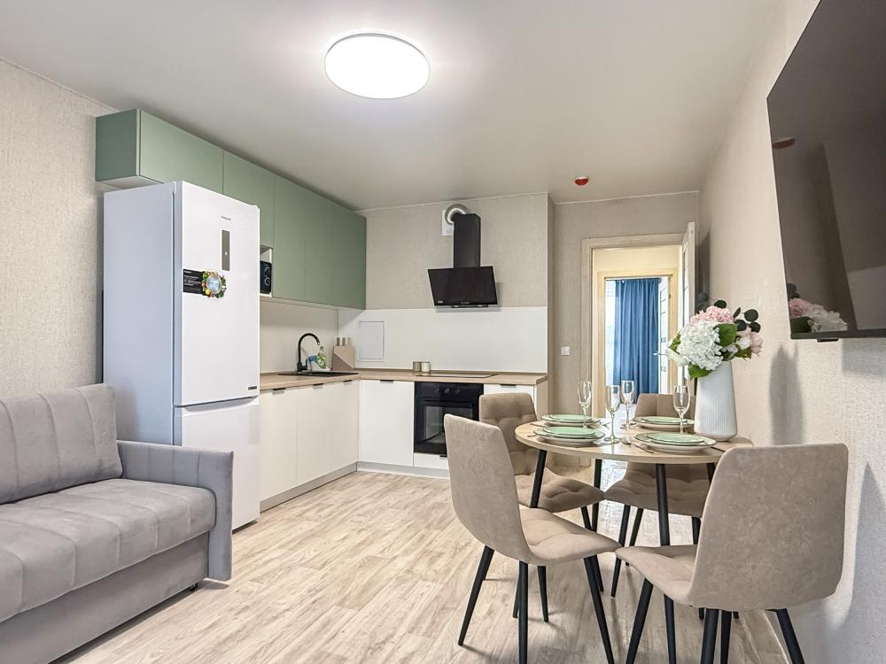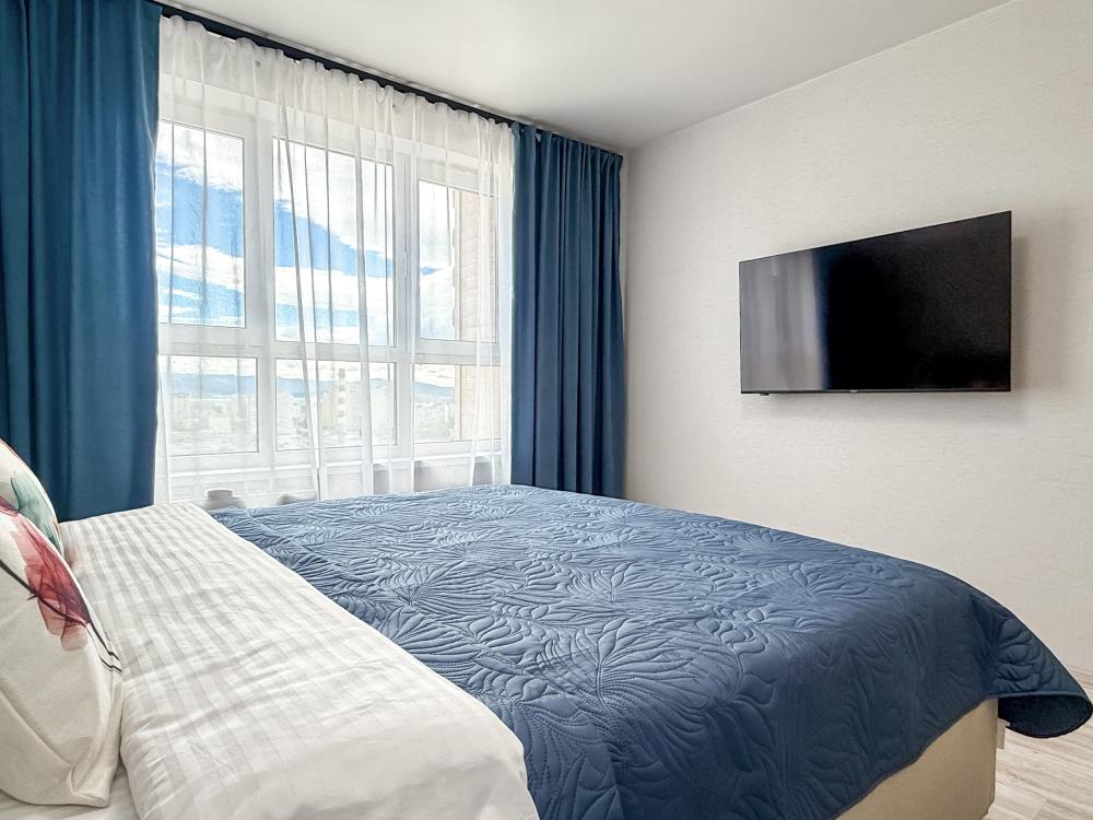 Квартира с красивым видом на море и горы в ЖК «Город у моря». Для наших гостей в квартире есть все необходимое для комфортной жизни. Полноценная кухня со всей необходимой посудой, холодильник, чайник, кухонная утварь, посудомоечная машина, электроплита, столовые приборы, микроволновая печь, в ванной комнате стиральная машина, водонагреватель, ванная, фен, гигиенические принадлежности, всегдa чистое и свежее постельное белье и полотенца, все это поможет Вам почувствовать себя свежо и комфортно. Для просмотра любимых передач и кино - есть два больших современных телевизора с функцией Smаrt ТV, бесплатный высокоскоростной Wi-Fi. Количество спальных мест - 4. Двуспальная кровать с ортопедическим матрасом, раскладной диван.
