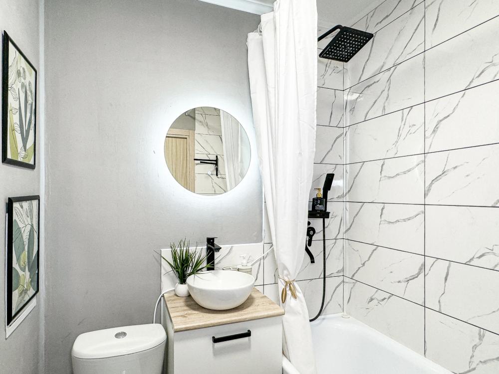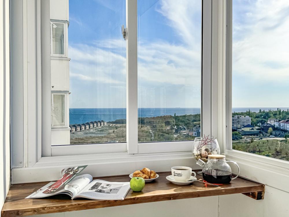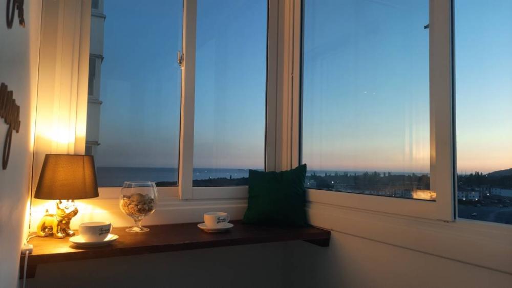 Апартаменты с чудесным видом на море и горы на бульваре имени Дмитрия Шостаковича. Для размещения до 4-х гостей. Для удобства гостей в апартаментах есть все необходимое для комфортного проживания: большая двухспальная кровать , двухспальный диван, дизайнерский ремонт и новая мебель, чай, кофе, полотенца, мыло и т.п.