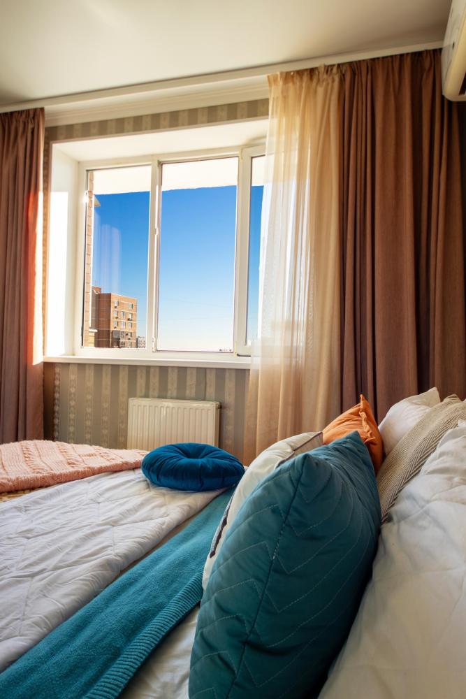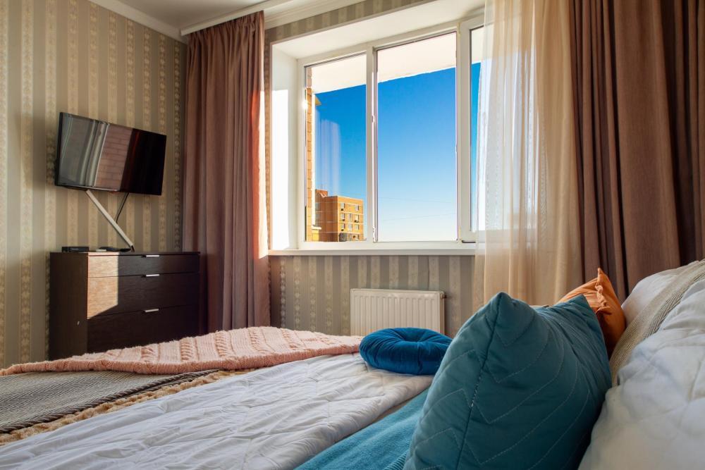 Новая квартира в новом доме с хорошим видом из окон.