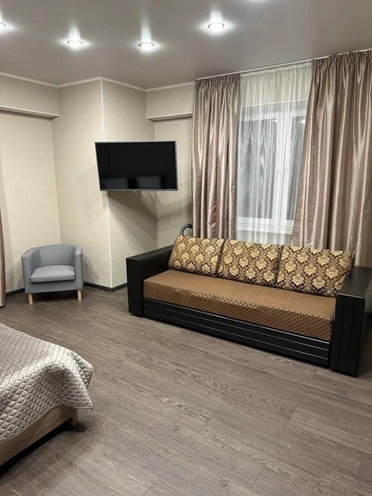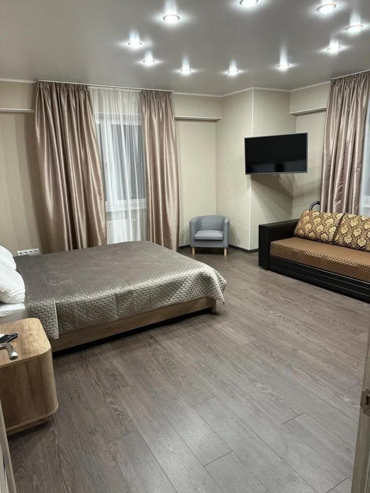 Просторные однокомнатные апартаменты для 6 гостей. Квартира укомплектована всем необходимым для комфортного проживания: телевизор, wi-fi, двуспальная кровать, два дивана, постельные принадлежности, посуда, холодильник, микроволновая печь, стиральная машина, утюг, гладильная доска, фен.