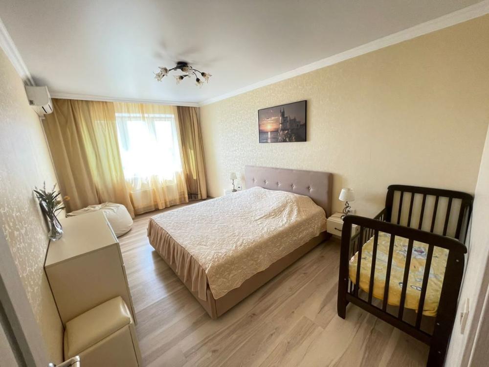 Три изолированные комнаты и большая кухня-гостиная. При необходимости, можно заселить до 9 человек включительно. Сплит-системы в каждой комнате, интернет, WI-FI (100 мб/с), телевизор SМАRТ-ТV, кабельное телевидение (более 100 каналов). Водонагреватель накопительный, стиральная машинка, электрическая плита, посудомоечная машина, вытяжка, электрочайник, микроволновка, холодильник, фен, утюг, гладильная доска, сушилка для вещей. Кровать двуспальная с ортопедическим матрасом, две односпальные кровати с ортопедическими матрасами, два раскладных дивана. Детская кроватка, горшок, стульчик для кормления, детская накладка для унитаза и подставка для ног. Пылесос и тд. Предоставляется чистые постельное белье 100% хлопок (страйп- сатин) и полотенца. Шампунь, гель для душа, жидкое мыло, туалетная бумага. Кухонная посуда для приготовления и приема пищи, кофе, чай, сахар, соль.