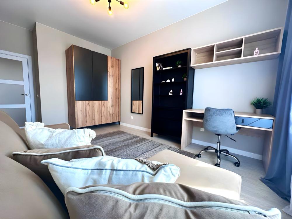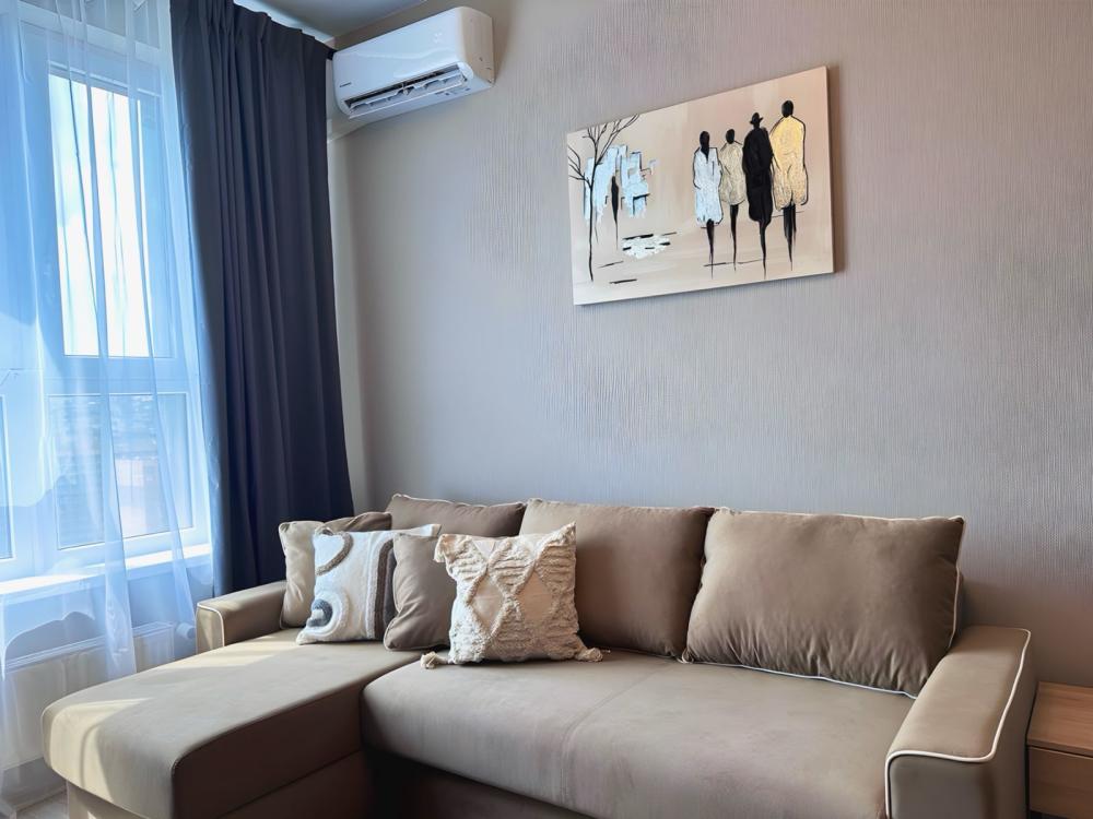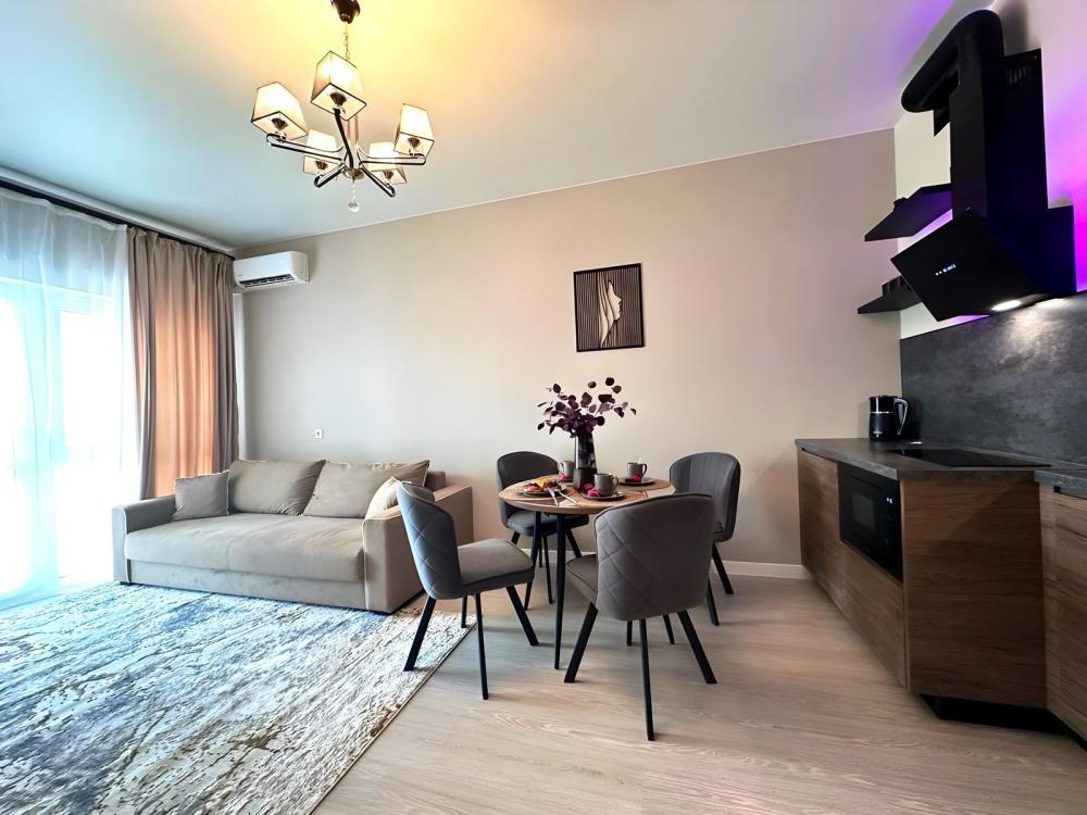 Однокомнатные апартаменты в ЖК комфорт класса «Босфор». Комфортное проживание до 3 человек. Спальные места: двуспальная кровать с новым матрасом и раскладывающийся диван 1,5 спальный. Квартира оборудованная техникой и посудой кухня, где есть варочная панель, холодильник, СВЧ и чайник. Так же сахар, соль, подсолнечное масло. Средство д\мытья посуды, губки, салфетки. В доме стоят накопительные баки на случаи отключения водоснабжения. Высокоскоростной Wi-Fi и смарт-ТВ, кондиционер, стиральная машина, доска для глажки и утюг, фен. Ванная комната с полотенцами и гигиеническим набором