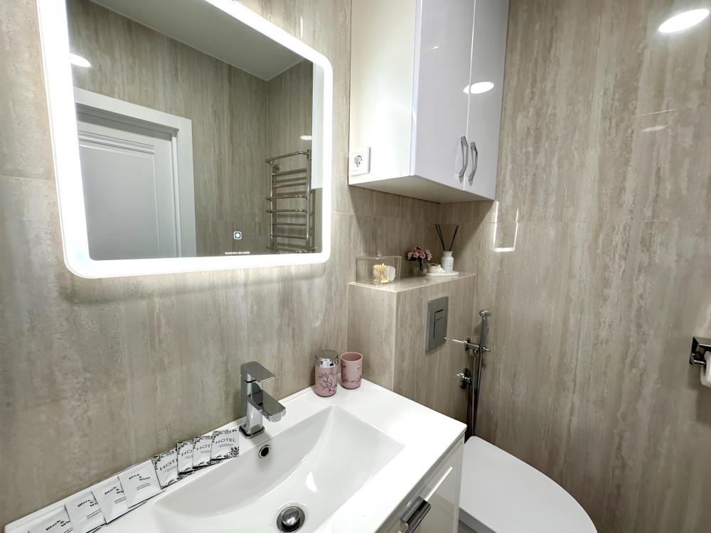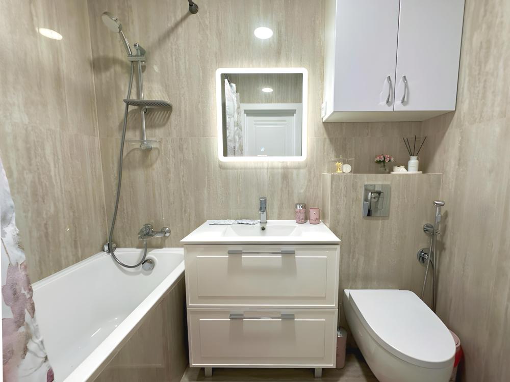 Однокомнатные апартаменты для 4 гостей класса ЛЮКС в ЖК «Черноморский-2». Спальные места: двуспальная кровать с комфортным матрасом и раскладывающийся диван. Оборудованная техникой и посудой кухня, где есть плита, холодильник, посудомоечная машина, СВЧ и чайник. Так же сахар, соль, подсолнечное масло, средство д\мытья посуды, губки, салфетки. В доме стоят накопительные баки на случаи отключения водоснабжения!) на случай отключения горячей воды установлен накопительный водонагреватель. Так же в квартире установлена система очистки воды "Осмос". Высокоскоростной Wi-Fi и смарт-ТВ, кондиционер в комнате и в кухне, стиральная машина, доска для глажки и утюг, фен. Ванная комната встретит вас полным набором полотенец, гелем для душа, и шампунем в саше, зуб.щетками и пастой.