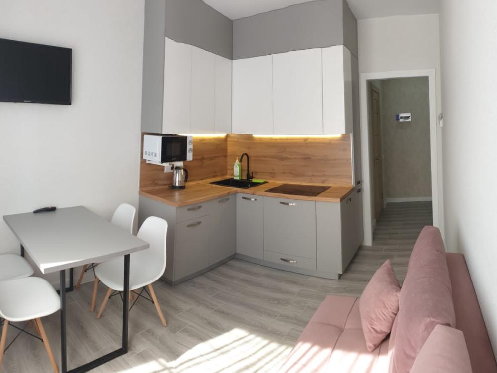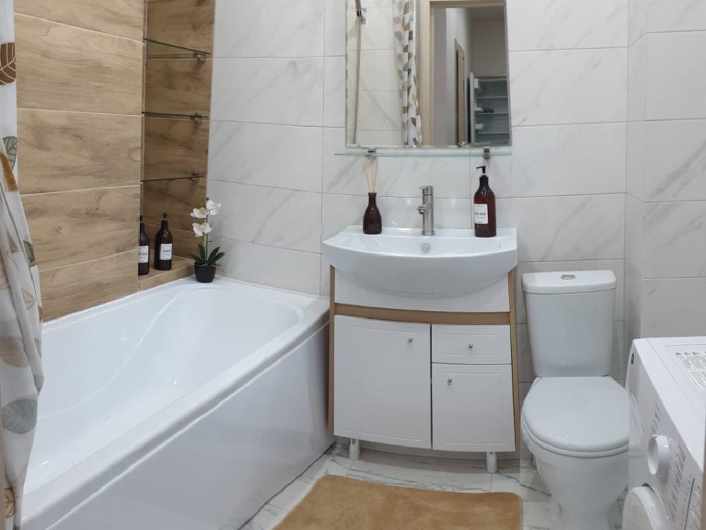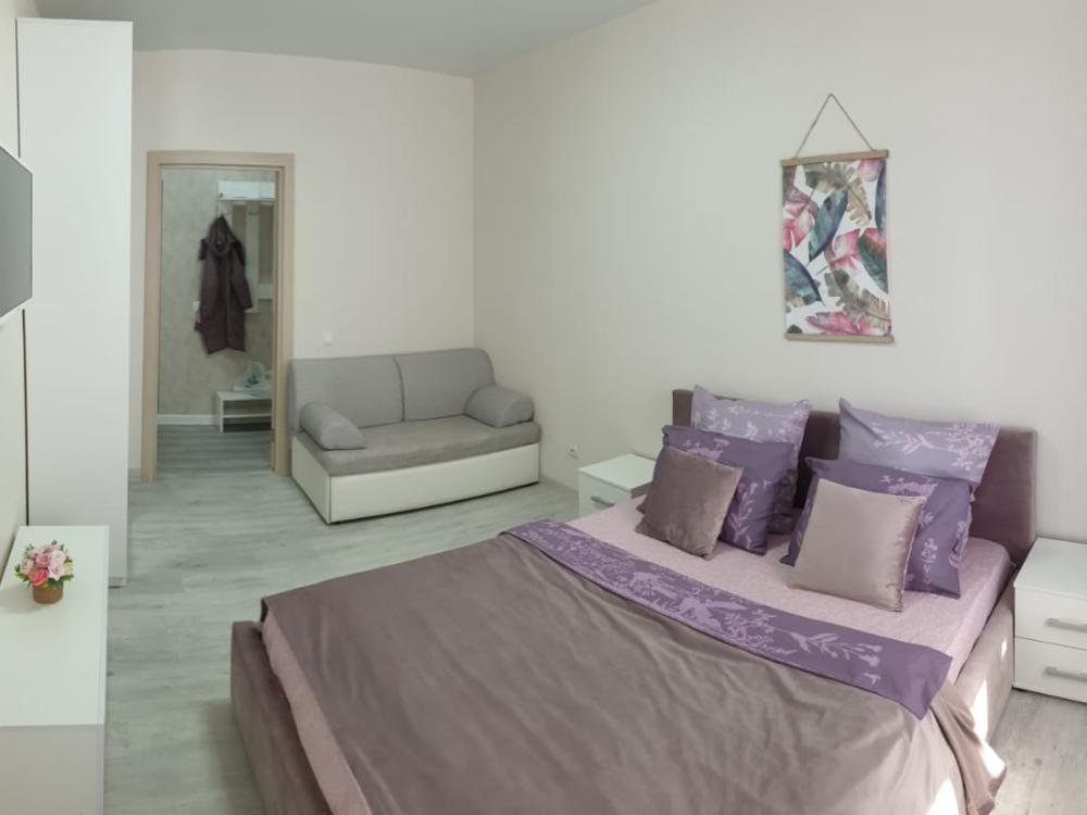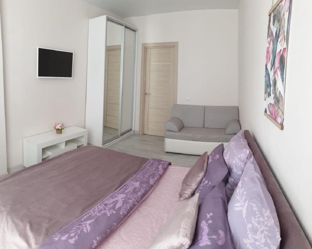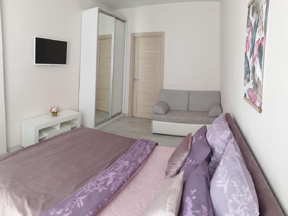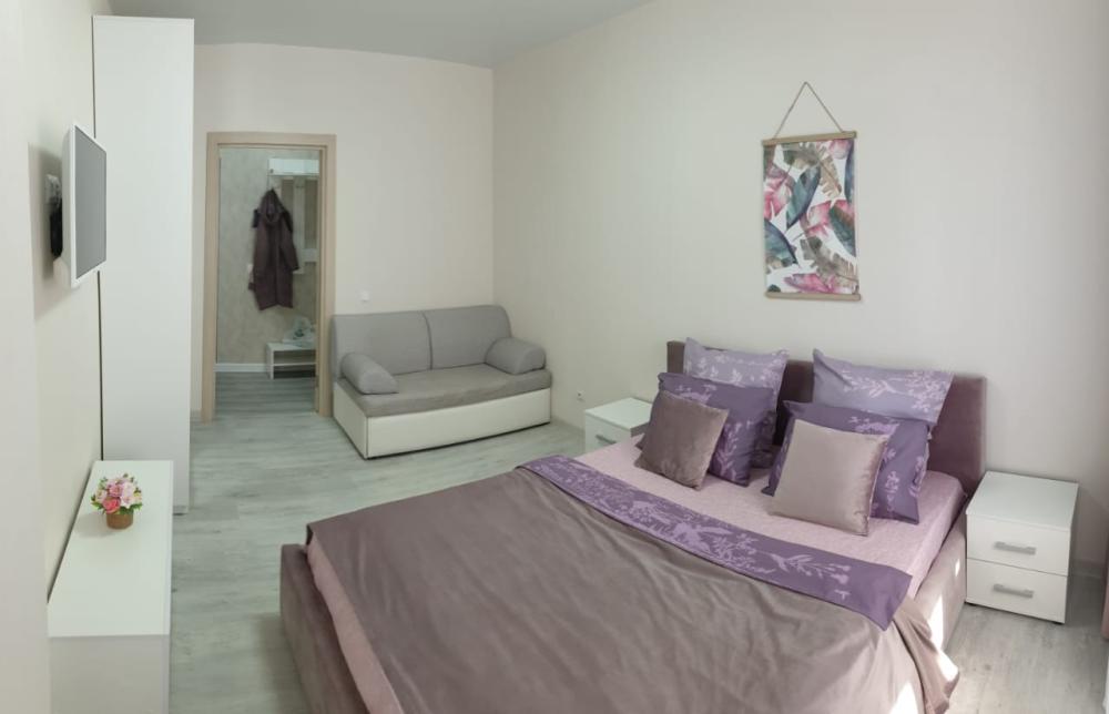 Однокомнатные апартаменты для 6 гостей. Спальные места: 2 дивана и двуспальная кровать. В квартире есть все, необходимое для комфортного проживания: сплит система, два телевизора с функцией Smart TV, wi-fi, микроволновка, плита, чайник, стиральная машина, фен, утюг, гладильная доска. Постельное бельё, полотенца, тапочки.