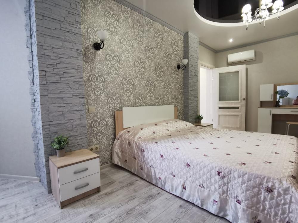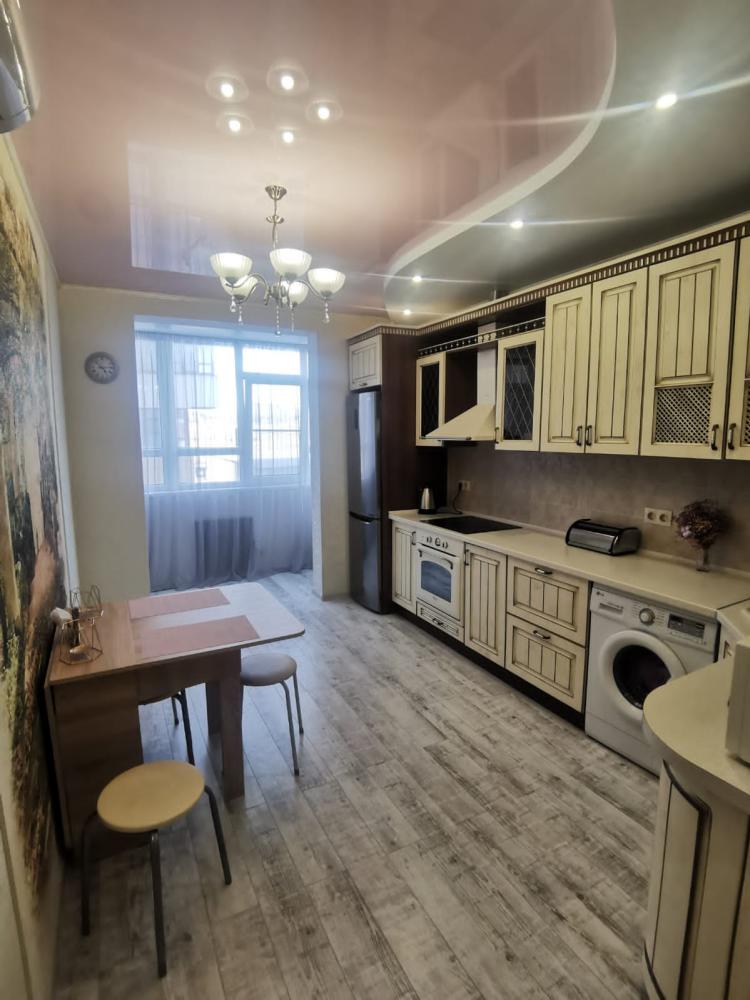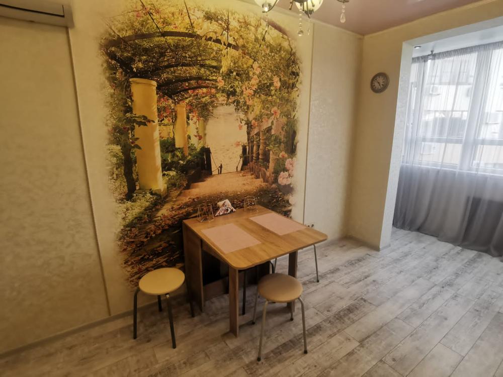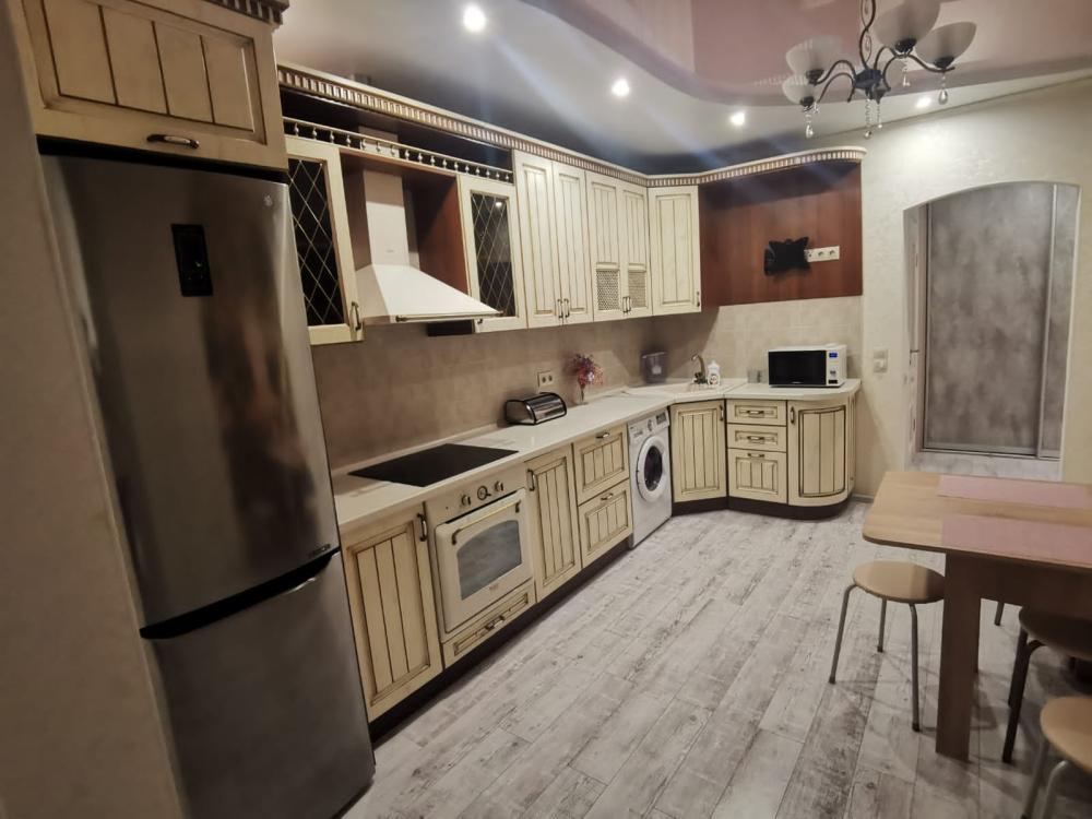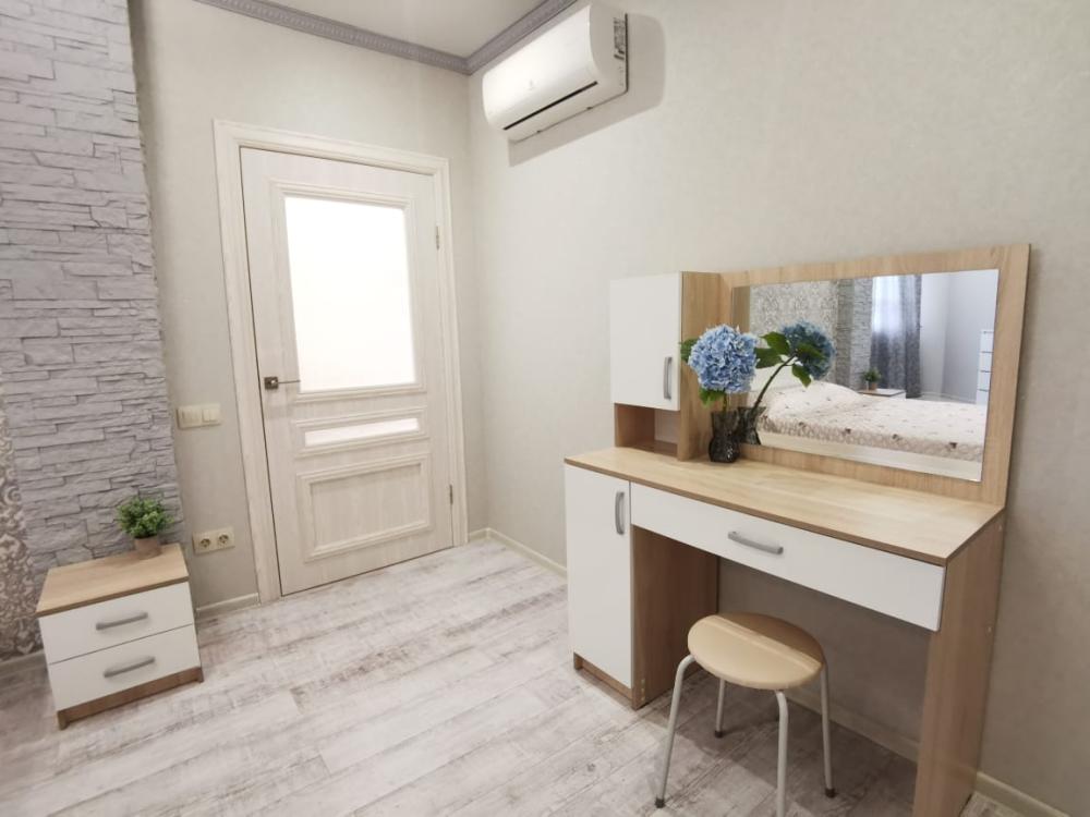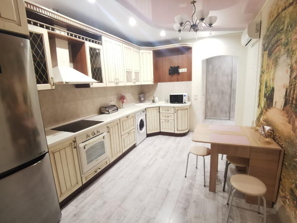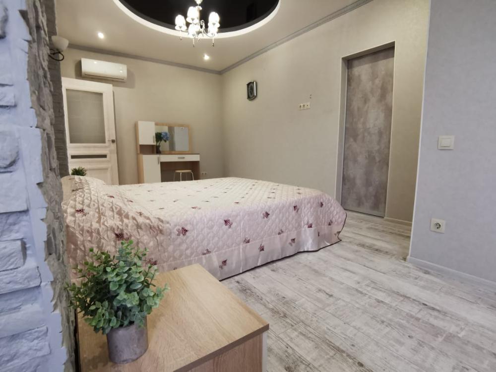 Двухкомнатная квартира в Южном районе г. Новороссийске. Квартира просторная, имеет 2 комнаты, одна из них проходная, в ней диван раскладной 140*200, комод, телевизор со смарт тв и есть приложение в котором около 3000 каналов (спортивные, детские итд), столик журнальный, кресло. Вторая комната очень просторная с большой гардеробной (там можно отлично развесить вещи, поставить чемоданы, сумки и использовать её как гладильную), в гардеробной есть гладильная доска, утюг, сушилка для белья. В комнате двухспальная кровать 160*200, комод, макияжный столик с табуретом, 2 тумбочки , сплит. В кухне: кухонный гарнитур, холодильник с морозильной камерой, стиральная машина, микроволновая печь, варочная панель духовой шкаф, электрический чайник, сплит, стол - книжка, табуреты, набор посуды, также для гостей с маленькими детьми имеется детский стульчик для кормления. В прихожей большой шкаф-купе. Санузел совмещённый, холодная и горячая вода круглосуточно, стоит водонагреватель, фен. Wi-Fi.