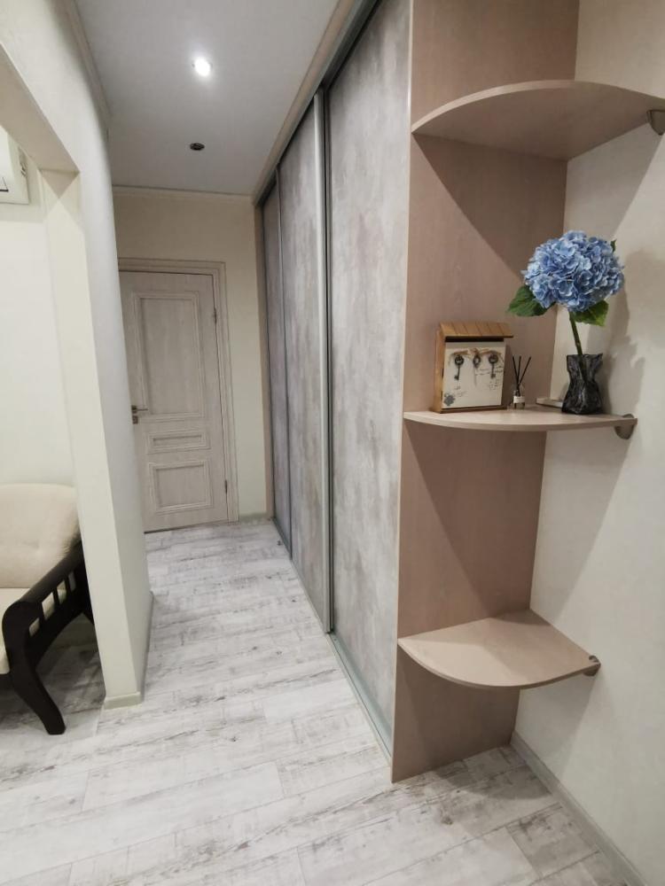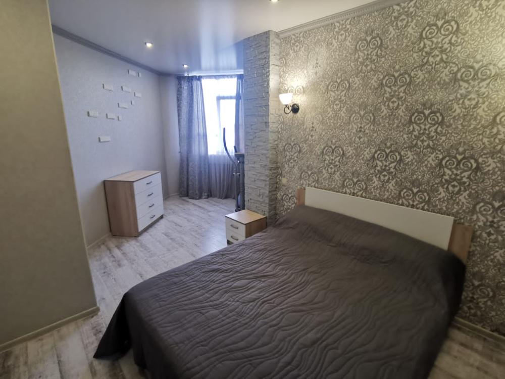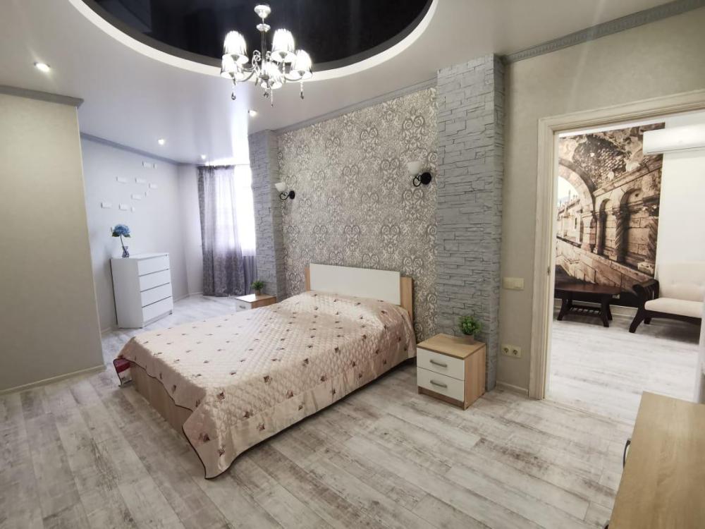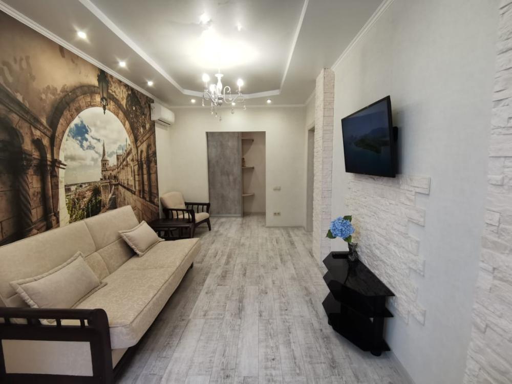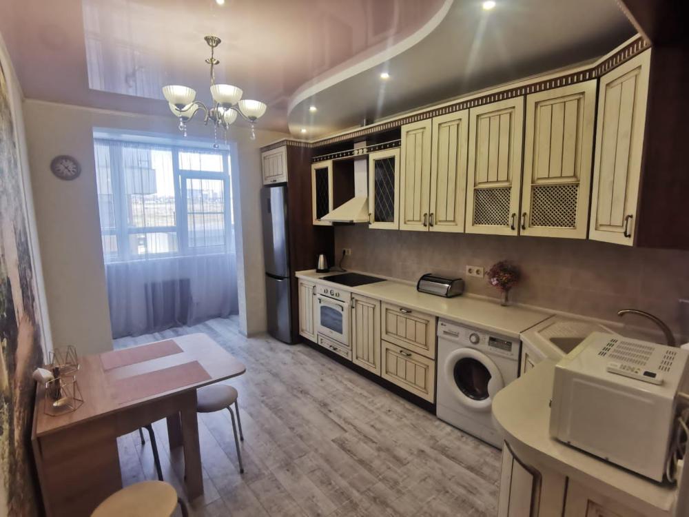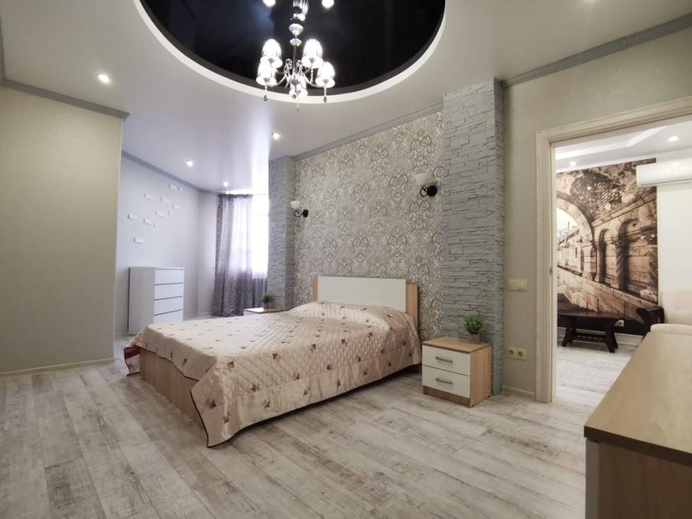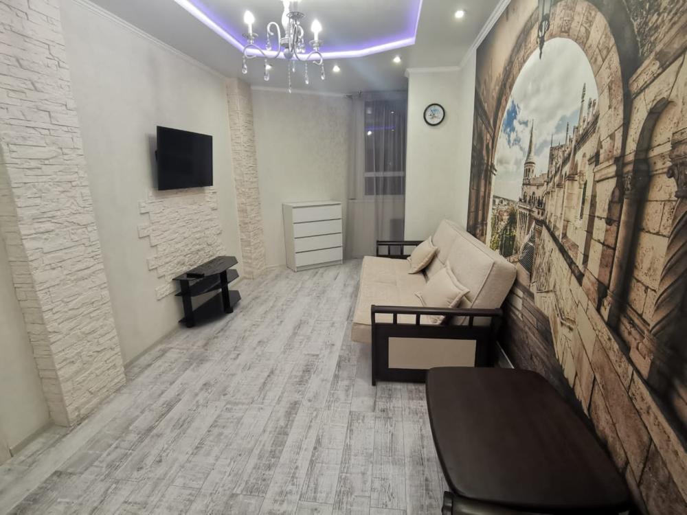 Двухкомнатная квартира в Южном районе г. Новороссийске. Квартира просторная, имеет 2 комнаты, одна из них проходная, в ней диван раскладной 140*200, комод, телевизор со смарт тв и есть приложение в котором около 3000 каналов (спортивные, детские итд), столик журнальный, кресло. Вторая комната очень просторная с большой гардеробной (там можно отлично развесить вещи, поставить чемоданы, сумки и использовать её как гладильную), в гардеробной есть гладильная доска, утюг, сушилка для белья. В комнате двухспальная кровать 160*200, комод, макияжный столик с табуретом, 2 тумбочки , сплит. В кухне: кухонный гарнитур, холодильник с морозильной камерой, стиральная машина, микроволновая печь, варочная панель духовой шкаф, электрический чайник, сплит, стол - книжка, табуреты, набор посуды, также для гостей с маленькими детьми имеется детский стульчик для кормления. В прихожей большой шкаф-купе. Санузел совмещённый, холодная и горячая вода круглосуточно, стоит водонагреватель, фен. Wi-Fi.