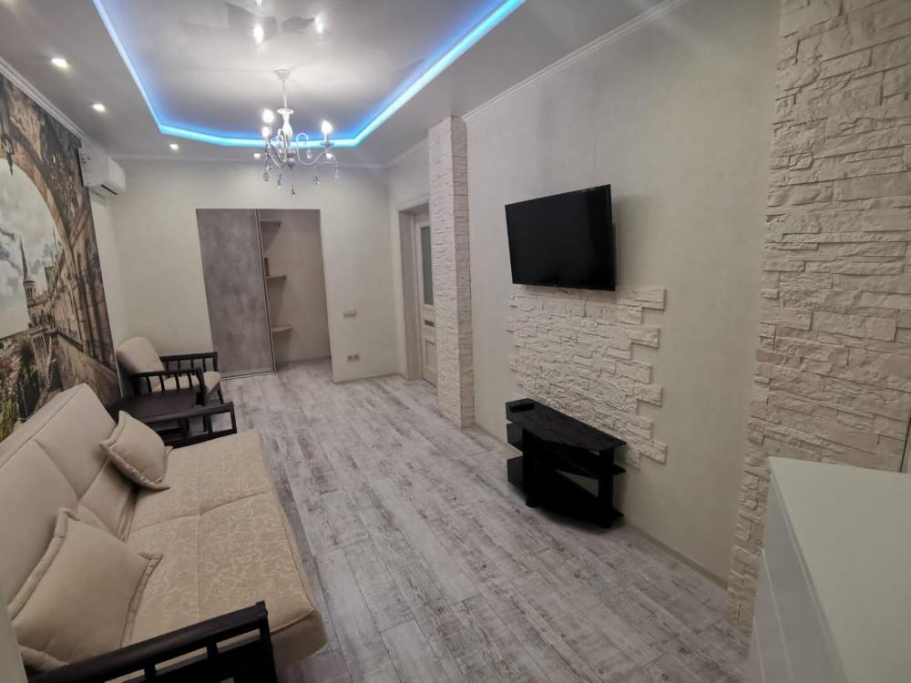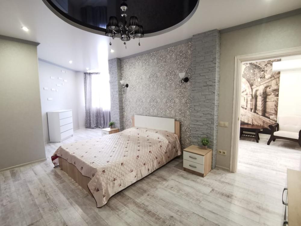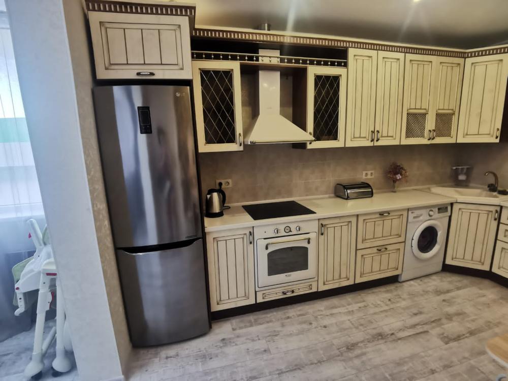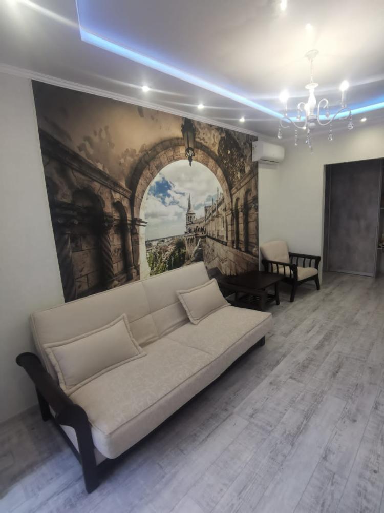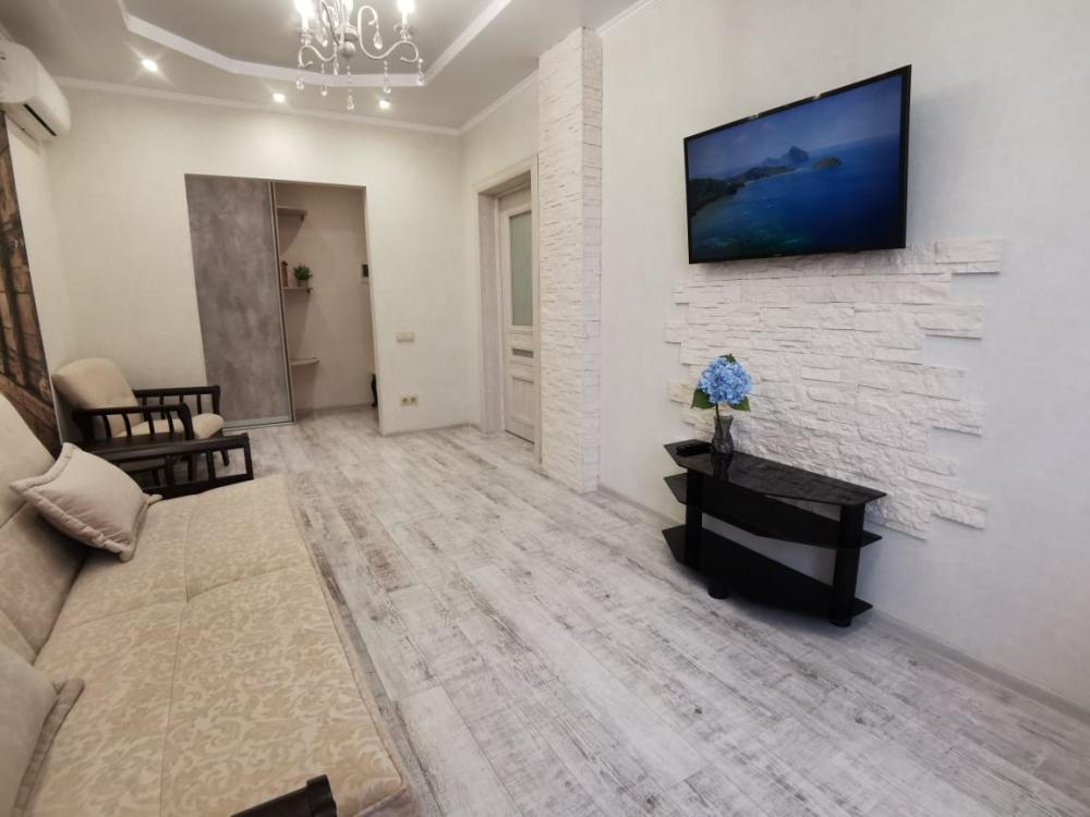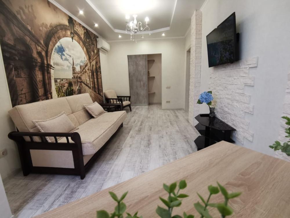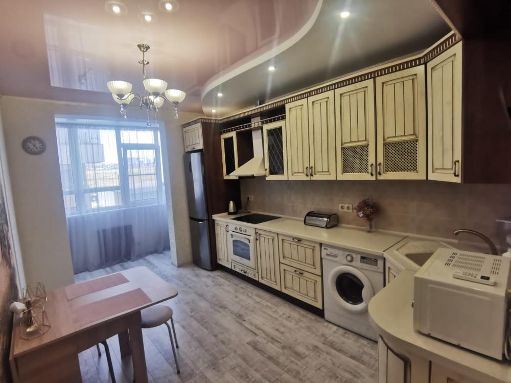 Двухкомнатная квартира в Южном районе г. Новороссийске. Квартира просторная, имеет 2 комнаты, одна из них проходная, в ней диван раскладной 140*200, комод, телевизор со смарт тв и есть приложение в котором около 3000 каналов (спортивные, детские итд), столик журнальный, кресло. Вторая комната очень просторная с большой гардеробной (там можно отлично развесить вещи, поставить чемоданы, сумки и использовать её как гладильную), в гардеробной есть гладильная доска, утюг, сушилка для белья. В комнате двухспальная кровать 160*200, комод, макияжный столик с табуретом, 2 тумбочки , сплит. В кухне: кухонный гарнитур, холодильник с морозильной камерой, стиральная машина, микроволновая печь, варочная панель духовой шкаф, электрический чайник, сплит, стол - книжка, табуреты, набор посуды, также для гостей с маленькими детьми имеется детский стульчик для кормления. В прихожей большой шкаф-купе. Санузел совмещённый, холодная и горячая вода круглосуточно, стоит водонагреватель, фен. Wi-Fi.