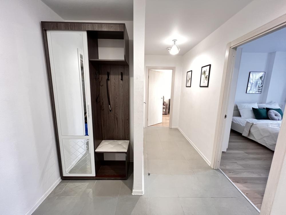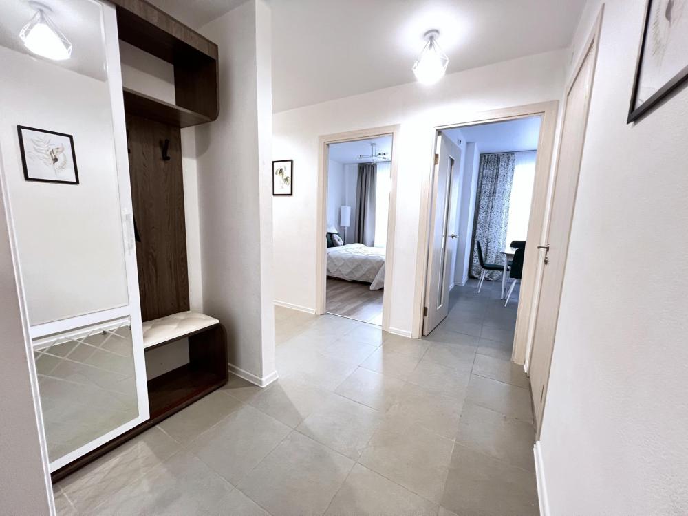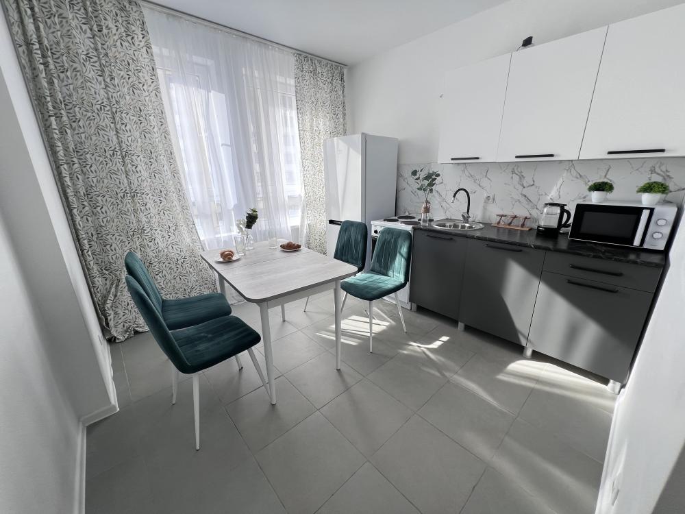 Двухкомнатная квартира находится в спальном районе г. Новороссийска. Для удобства гостей в апартаментах: 2 двухместных дивана и кровать с матрасом 160 см., постельное белье, банные полотенца, высокоскоростной интернет Wi-Fi, кондиционер, утюг, гладильная доска, набор посуды и столовых приборов, микроволновка, электрочайник, стиральная машинка, туалетно-косметические принадлежности, фен.