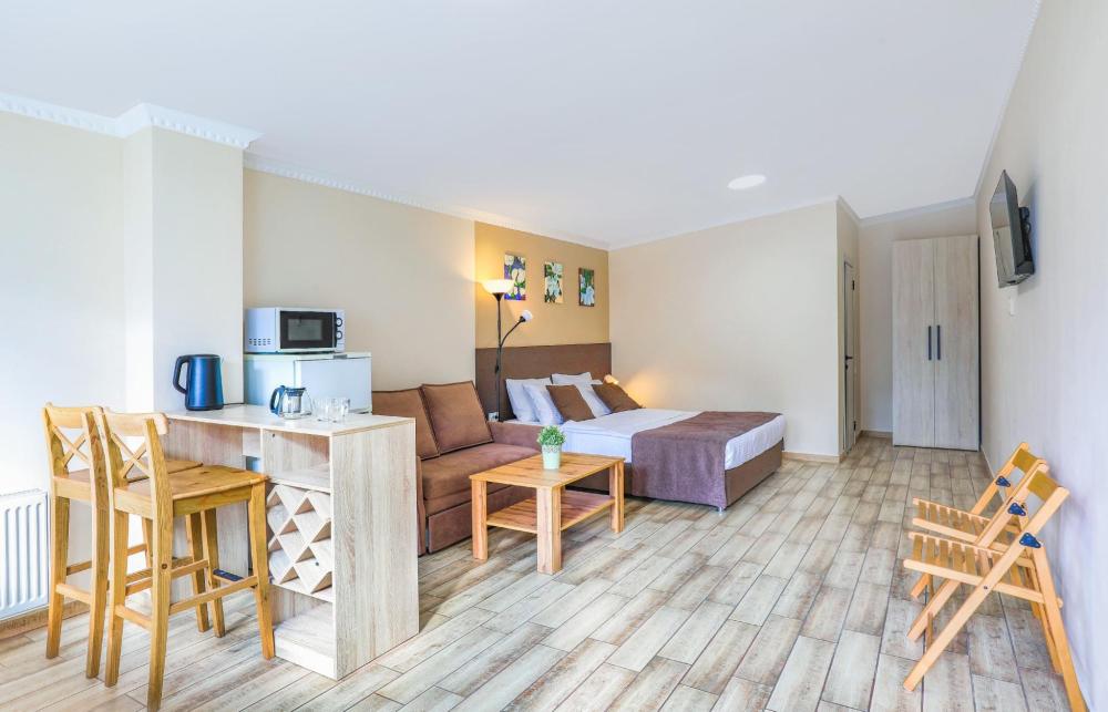 Двухместная комната делюкс с 1 двуспальной кроватью. Услуги: Предоставление гладильных принадлежностей, Услуги стирки и глаженья, Дополнительное место, Гигиенические принадлежности, Кондиционер, Ванная, Холодильник, Душевая, Телевизор, Wi-Fi в номере.